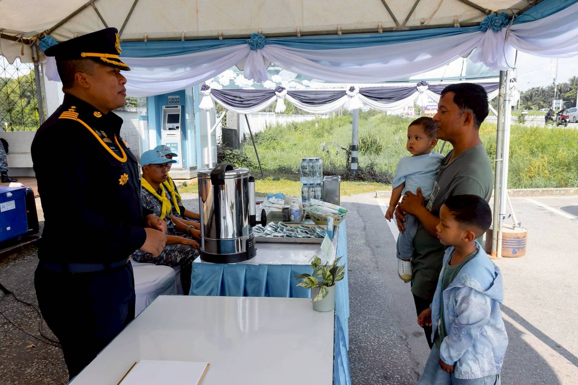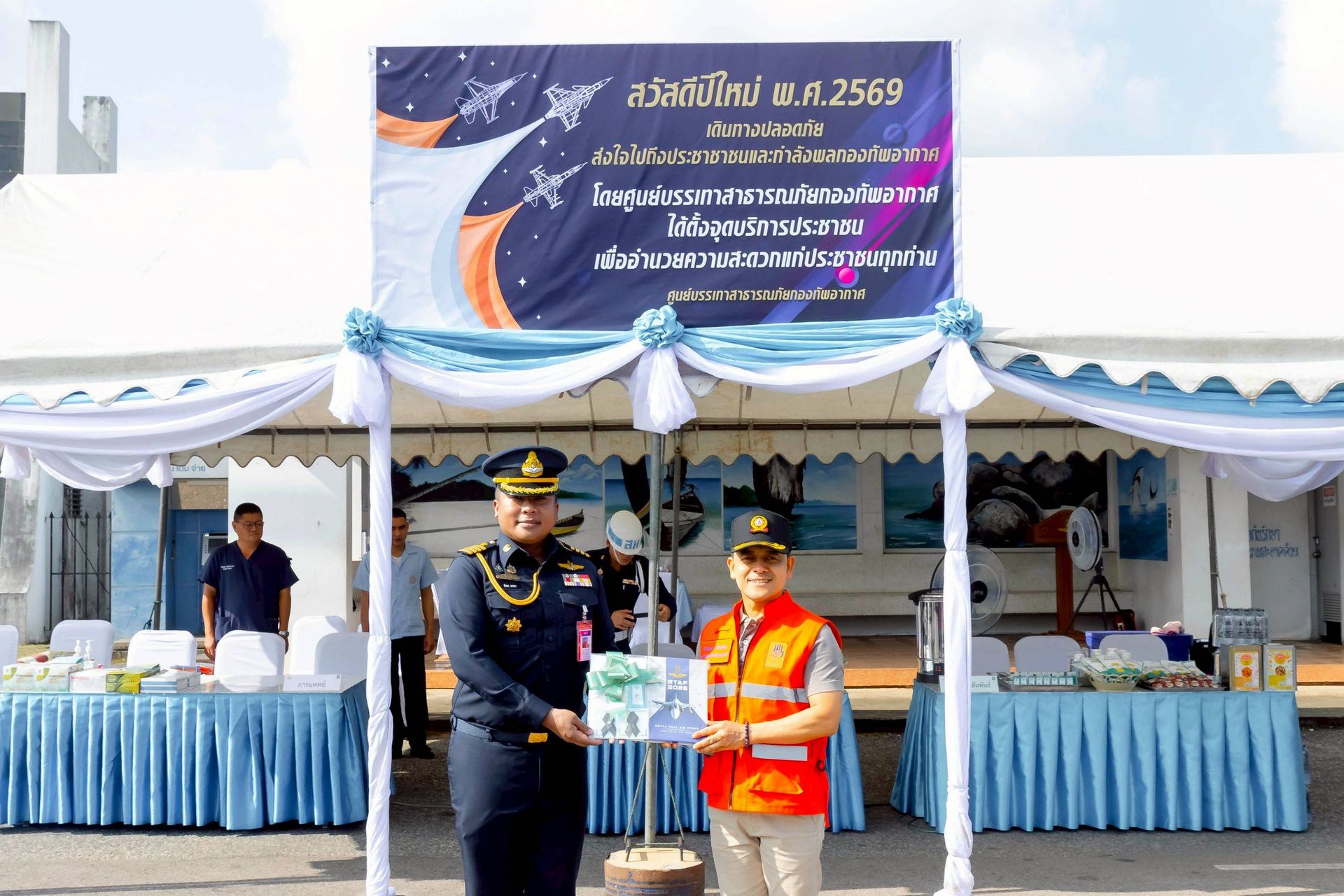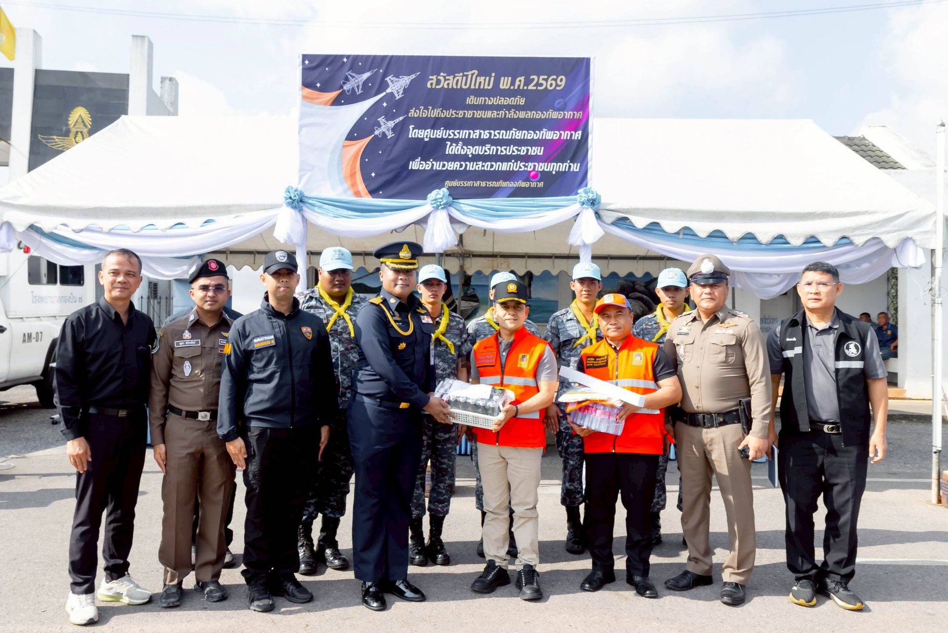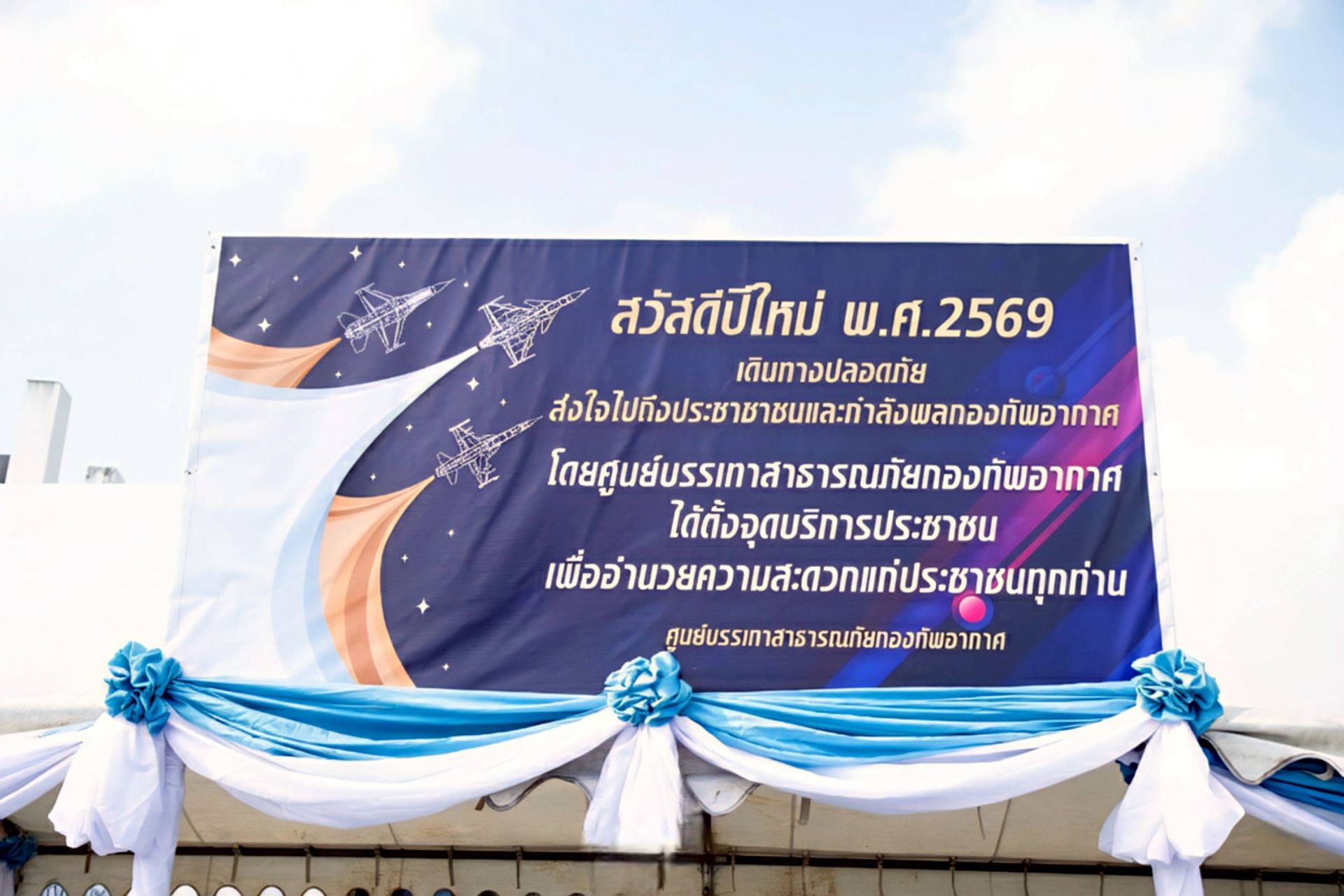 โอกาสนี้ นาวาอากาศเอก ศุภวัจน์ จิตรมนตรี ผู้บังคับการกองบิน ๗ มอบหมายให้ นาวาอากาศเอก ชัยพร จรรยา เสนาธิการกองบิน ๗ พร้อมด้วยเจ้าหน้าที่ประจำจุดให้บริการฯ ร่วมให้การต้อนรับ เมื่อวันที่ ๓๑ ธันวาคม พ.ศ.๒๕๖๘ ณ บริเวณหน้าช่องทางหลัก กองบิน ๗ ตำบลมะลวน อำเภอพุนพิน จังหวัดสุราษฎร์ธานี