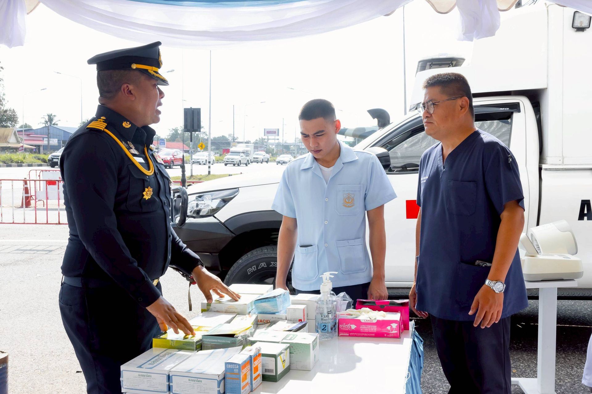 นายจักรกฤษณ์ ฝั่งชลจิตร์ รองผู้ว่าราชการจังหวัดสุราษฎร์ธานี และคณะฯ ออกตรวจเยี่ยมและให้กำลังใจ เจ้าหน้าที่ซึ่งปฏิบัติงานประจำจุดให้บริการพี่น้องประชาชน ตามแนวทาง “ขับขี่ปลอดภัย ลดความเร็ว ลดอุบัติเหตุ” ช่วงเทศกาลปีใหม่ ๒๕๖๙ พร้อมทั้งมอบเครื่องดื่มสำหรับแจกจ่ายให้พี่น้องประชาชน ตลอดจนเน้นย้ำในเรื่องการป้องกันและลดอุบัติเหตุทางถนนช่วงเทศกาลปีใหม่