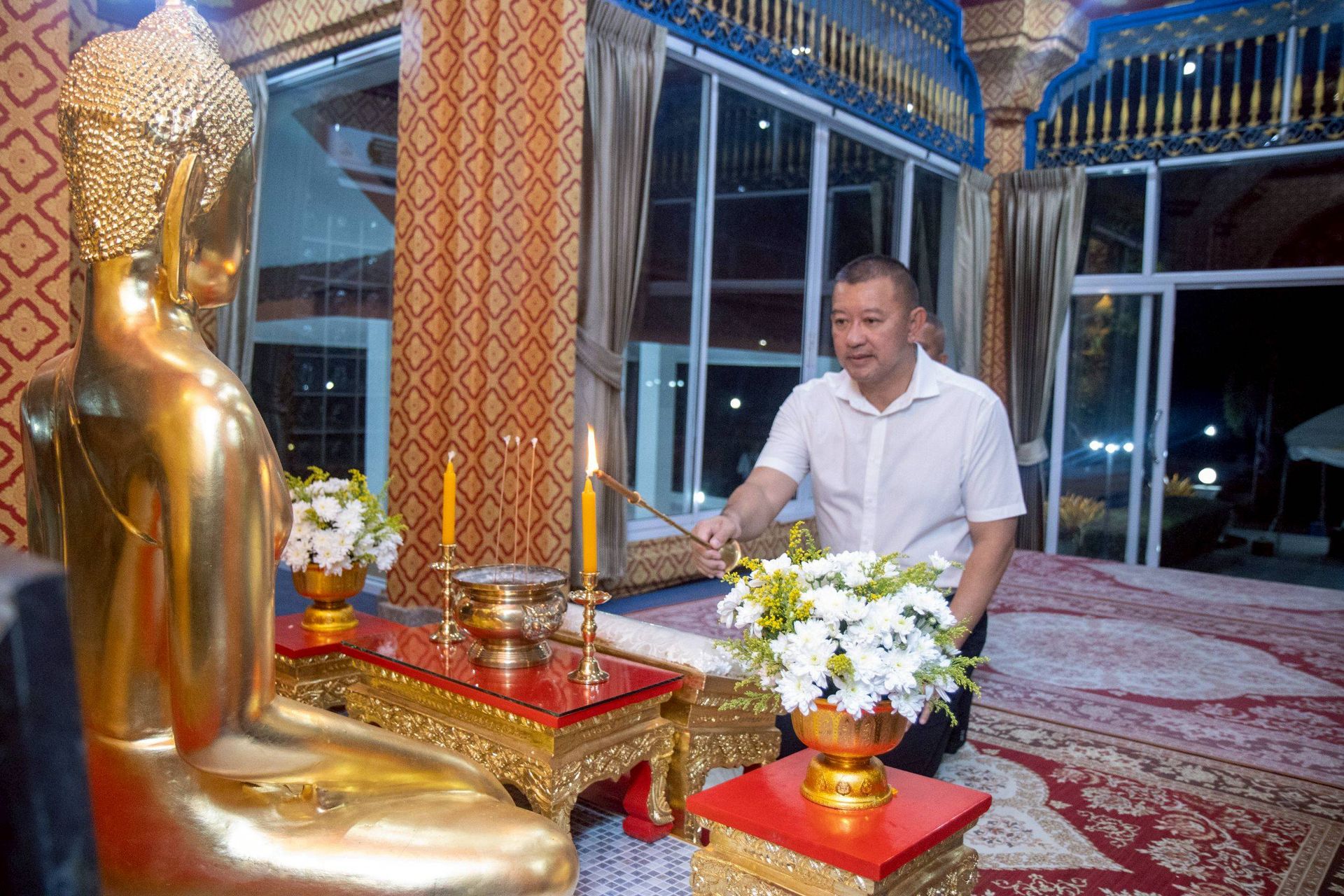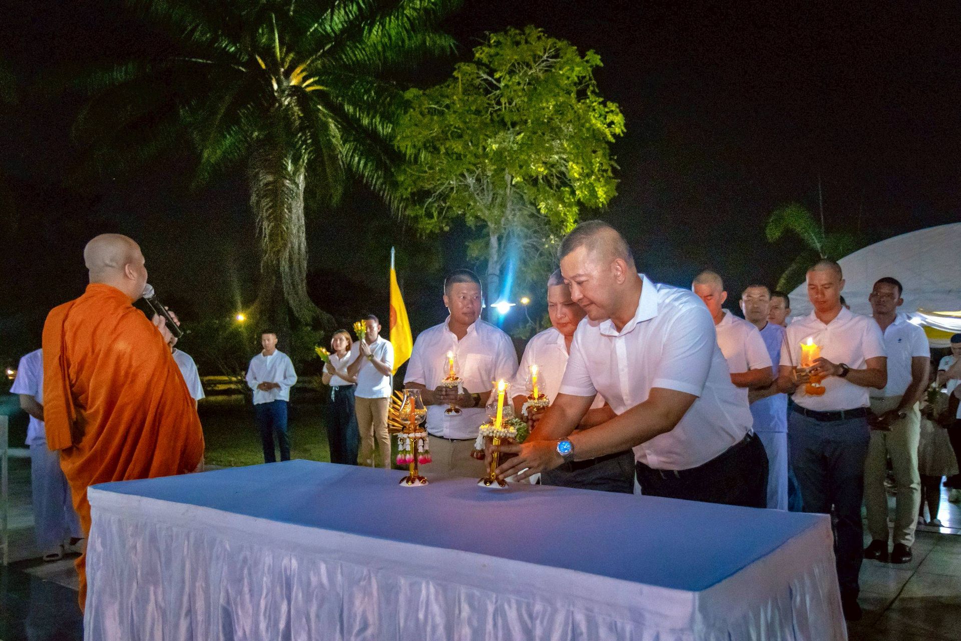 นาวาอากาศเอก ศุภวัจน์ จิตรมนตรี ผู้บังคับการกองบิน ๗ ประธานจัดพิธีเวียนเทียน เนื่องในวันมาฆบูชา ประจำปี ๒๕๖๙ โดยมี รองผู้บังคับการกองบิน ๗ เสนาธิการกองบิน ๗ และ หัวหน้าหน่วยขึ้นตรง กองบิน ๗ นำ ข้าราชการ ลูกจ้าง พนักงานราชการ และครอบครัว กองบิน ๗ ร่วมฟังพระธรรมเทศนาและประกอบพิธีเวียนเทียน เพื่อสืบสานประเพณีอันดีงามด้านพระพุทธศาสนา เมื่อวันที่ ๒ มีนาคม พ.ศ.๒๕๖๙ ณ พุทธสถาน วิหารพระพุทธมหาเมตตา กองบิน ๗ ตำบลมะลวน อำเภอพุนพิน จังหวัดสุราษฎร์ธานี