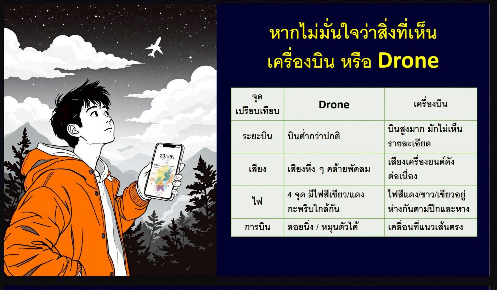 กองบิน ๗ ลงพื้นที่ประชาสัมพันธ์ให้ความรู้เกี่ยวกับการสังเกตอากาศยานไร้คนขับ (Drone) ในพื้นที่รอบฐานบิน เพื่อสร้างการมีส่วนร่วมในการเฝ้าระวังและเสริมสร้างความมั่นคงในพื้นที่