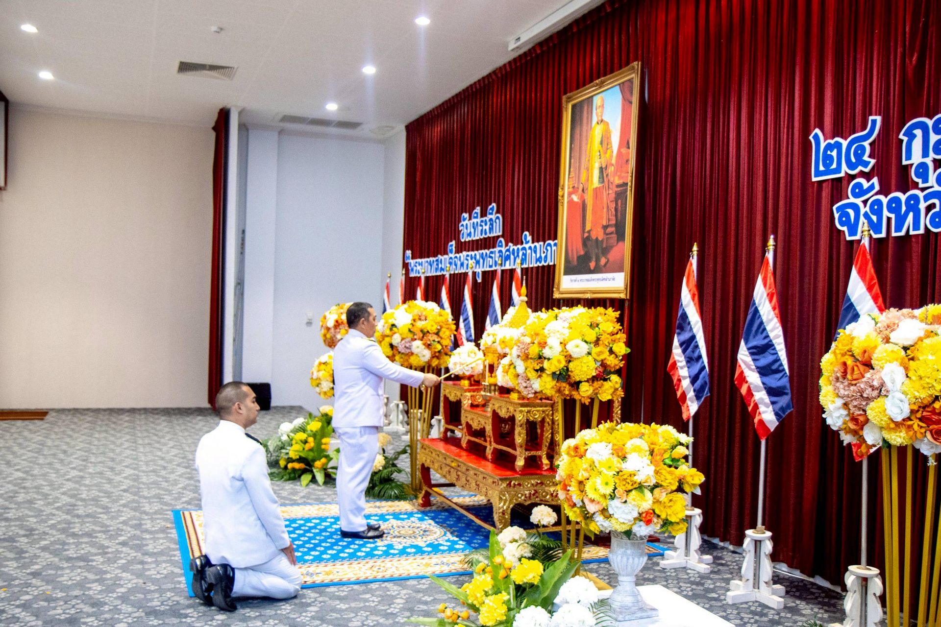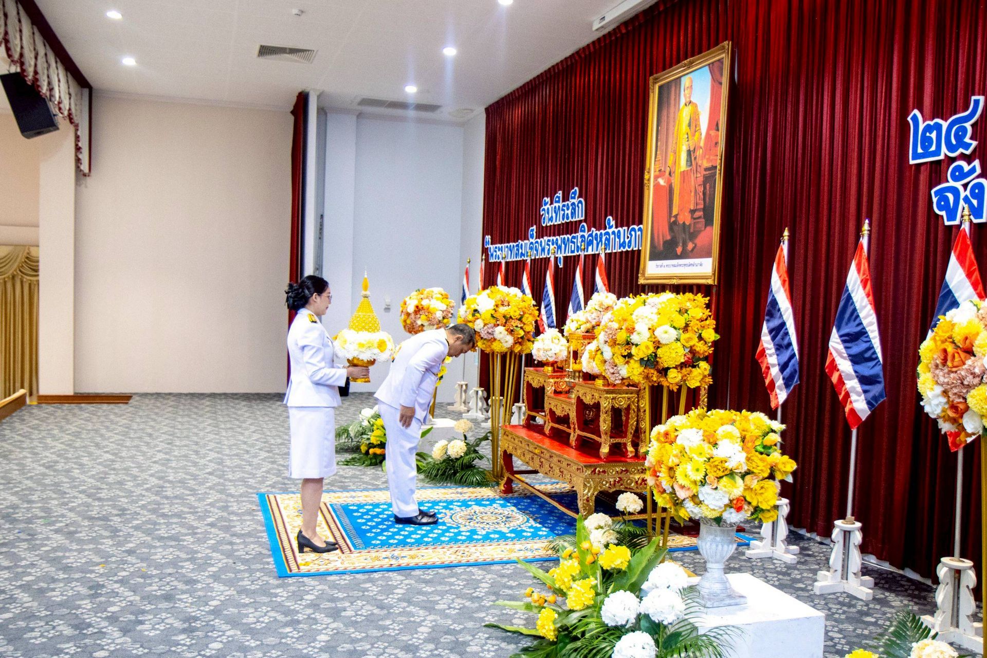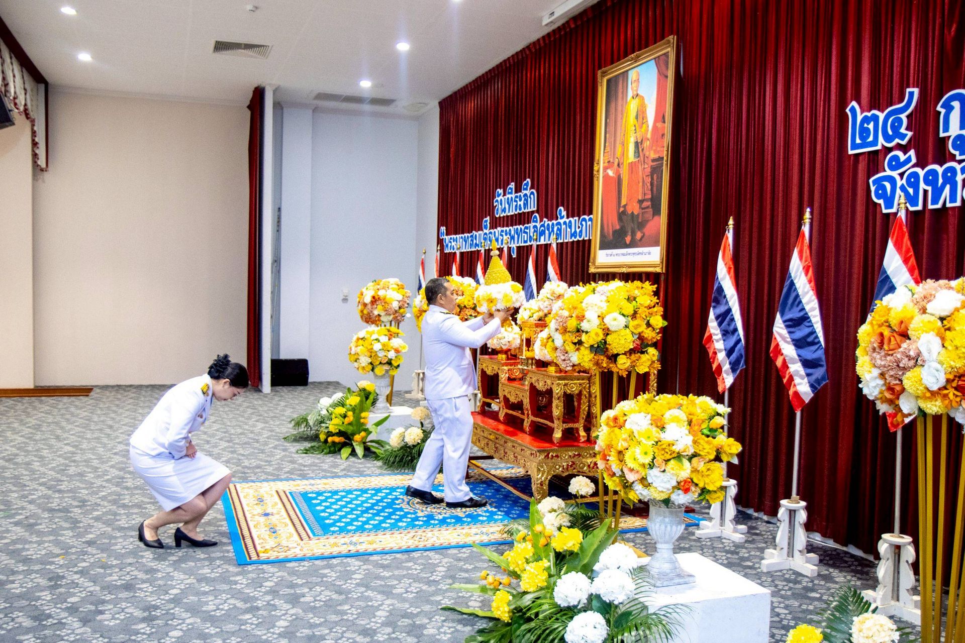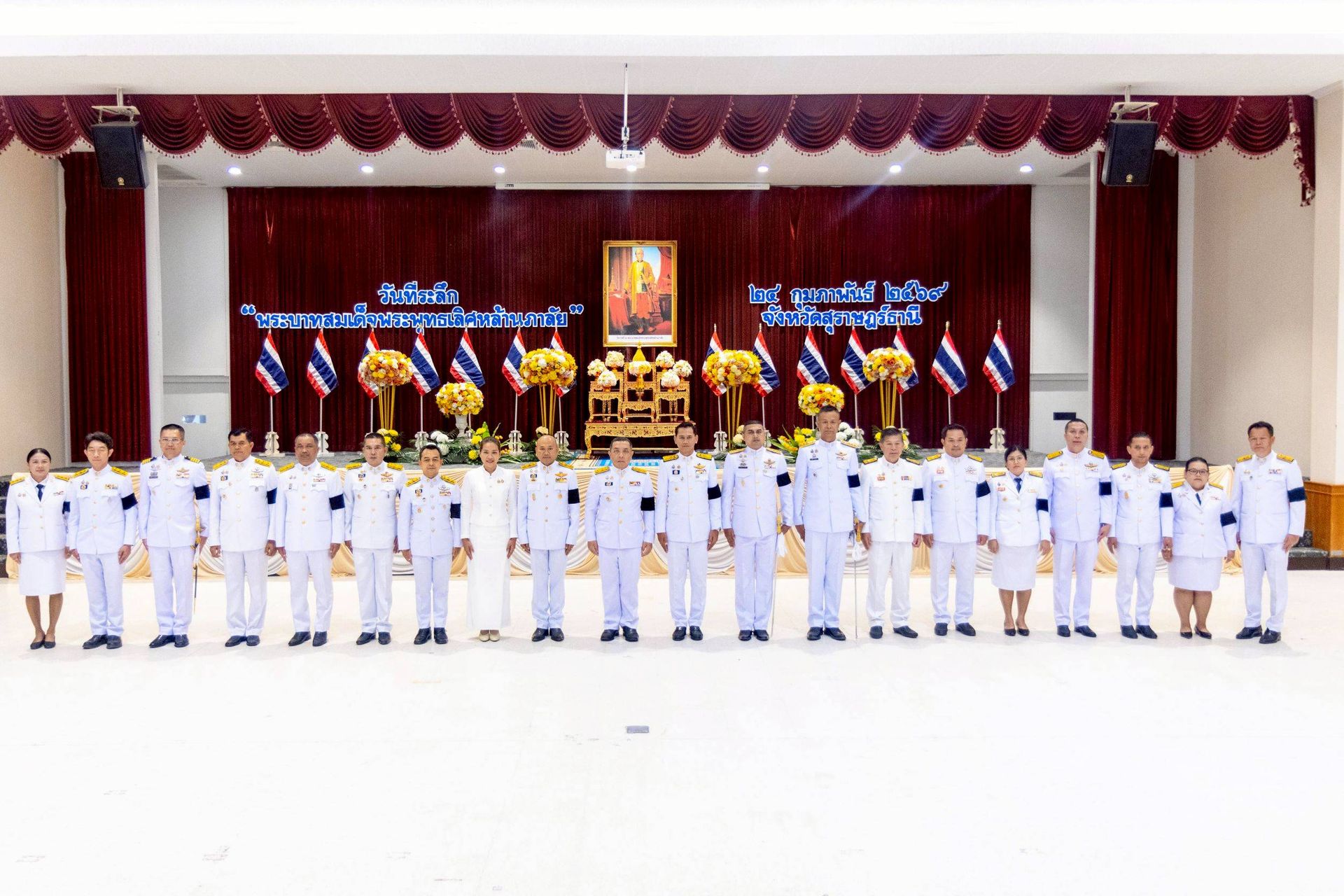 นายจุมพฏ วรรณฉัตรสิริ ผู้ว่าราชการจังหวัดสุราษฎร์ธานี พร้อมด้วยหัวหน้าส่วนราชการ และหน่วยงานต่าง ๆ ภายในจังหวัดสุราษฎร์ธานี ร่วมจัดงานรัฐพิธี “พระบาทสมเด็จพระพุทธเลิศหล้านภาลัย” ประจำปีพุทธศักราช ๒๕๖๙ โดยมีพิธีวางพานพุ่มดอกไม้ถวายราชสักการะ