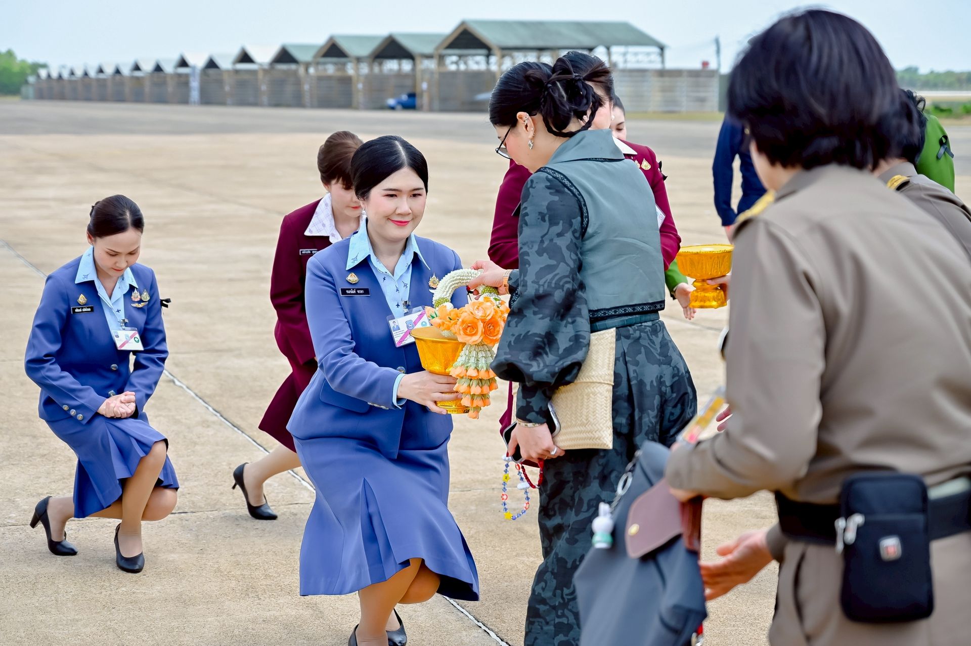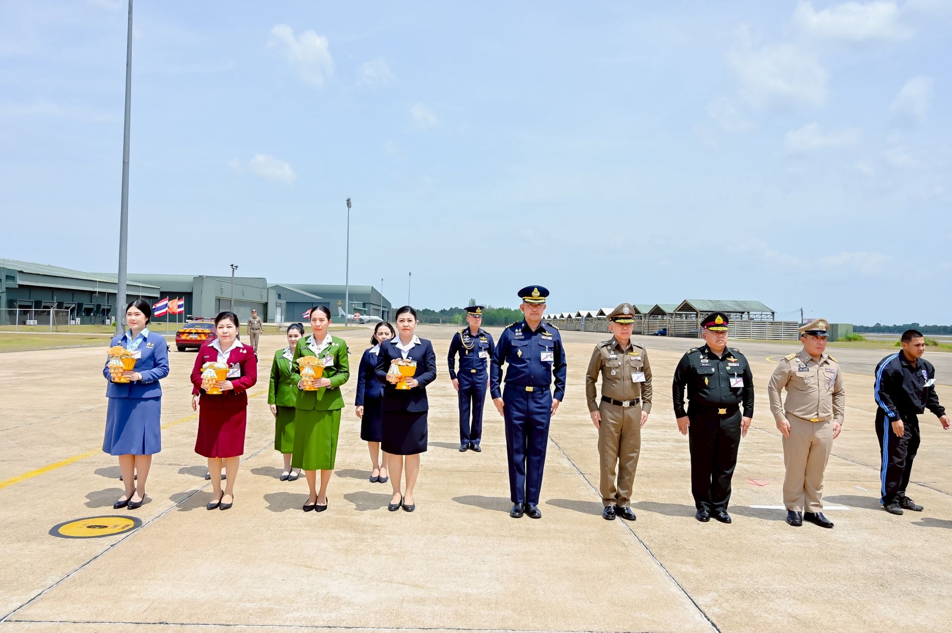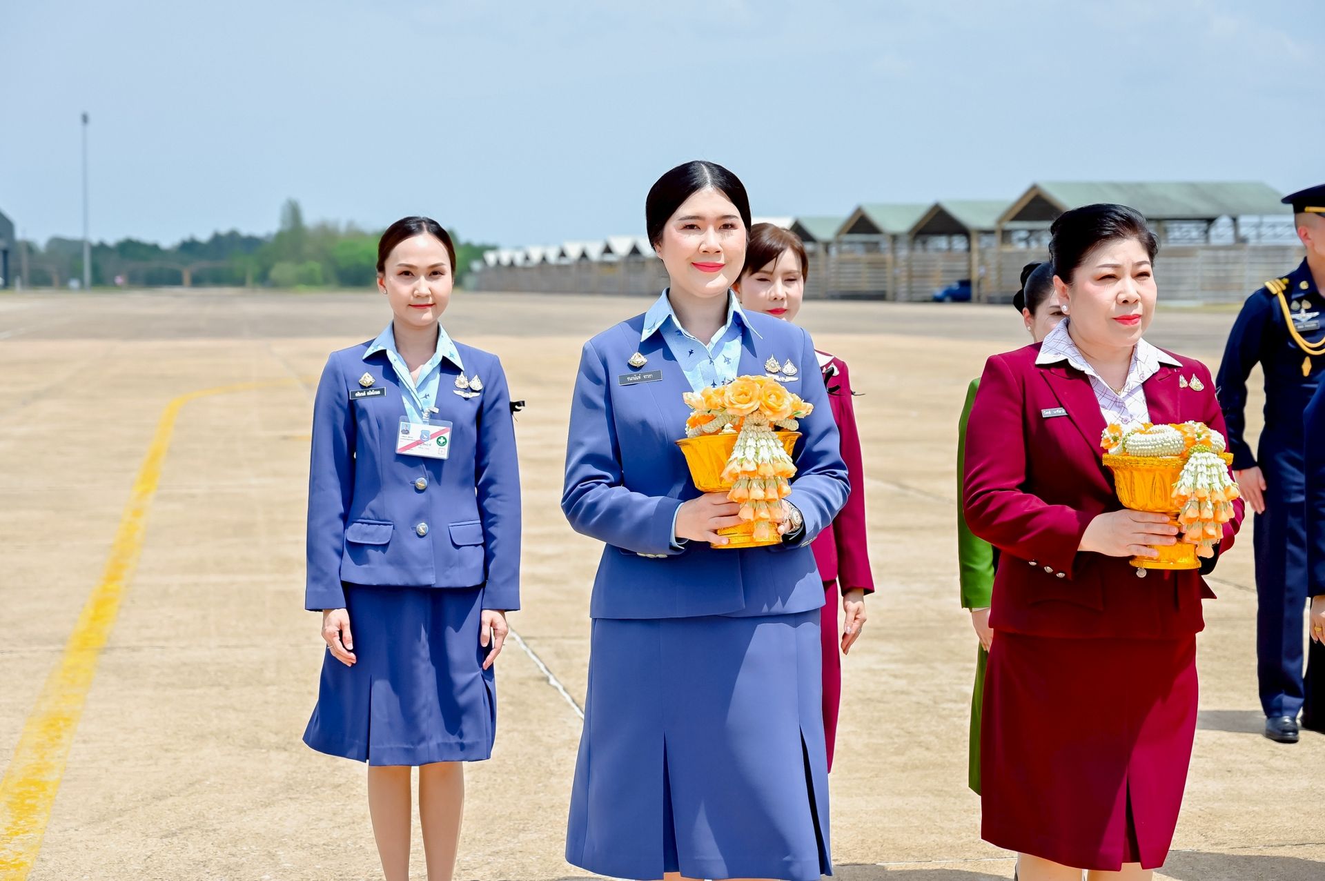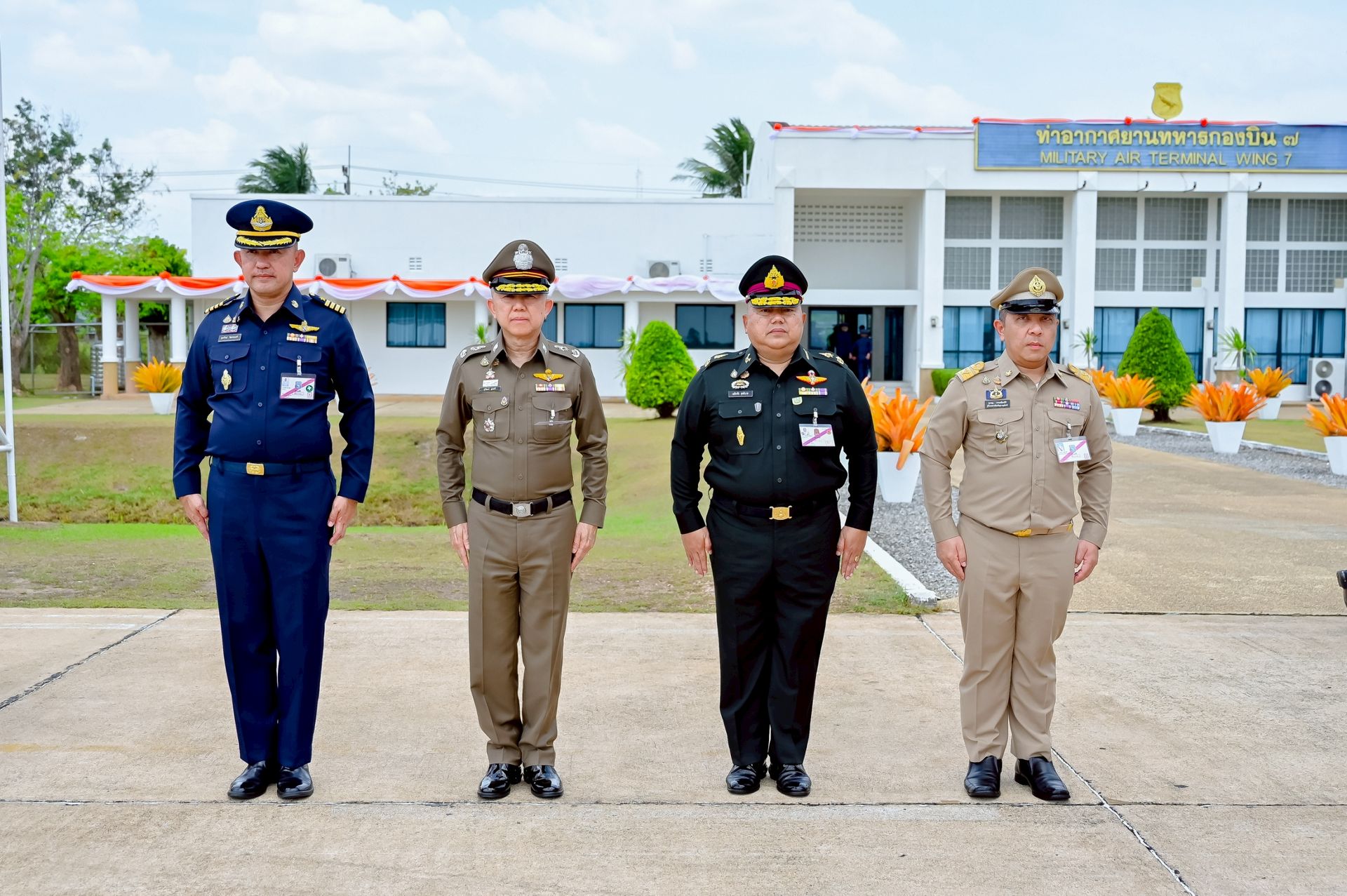 โอกาสนี้ นาวาอากาศเอก ศุภวัจน์ จิตรมนตรี ผู้บังคับการกองบิน ๗ พร้อมด้วย รองผู้บังคับการกองบิน ๗ และ นาวาอากาศตรีหญิง ชนกนันท์ จรรยา รองประธานชมรมคู่สมรสทหารอากาศ กองบิน ๗(๓) ร่วมรับ-ส่งเสด็จ เมื่อวันที่ ๒๐ กุมภาพันธ์ พ.ศ.๒๕๖๙ ณ ท่าอากาศยานทหารกองบิน ๗ ตำบลมะลวน อำเภอพุนพิน จังหวัดสุราษฎร์ธานี