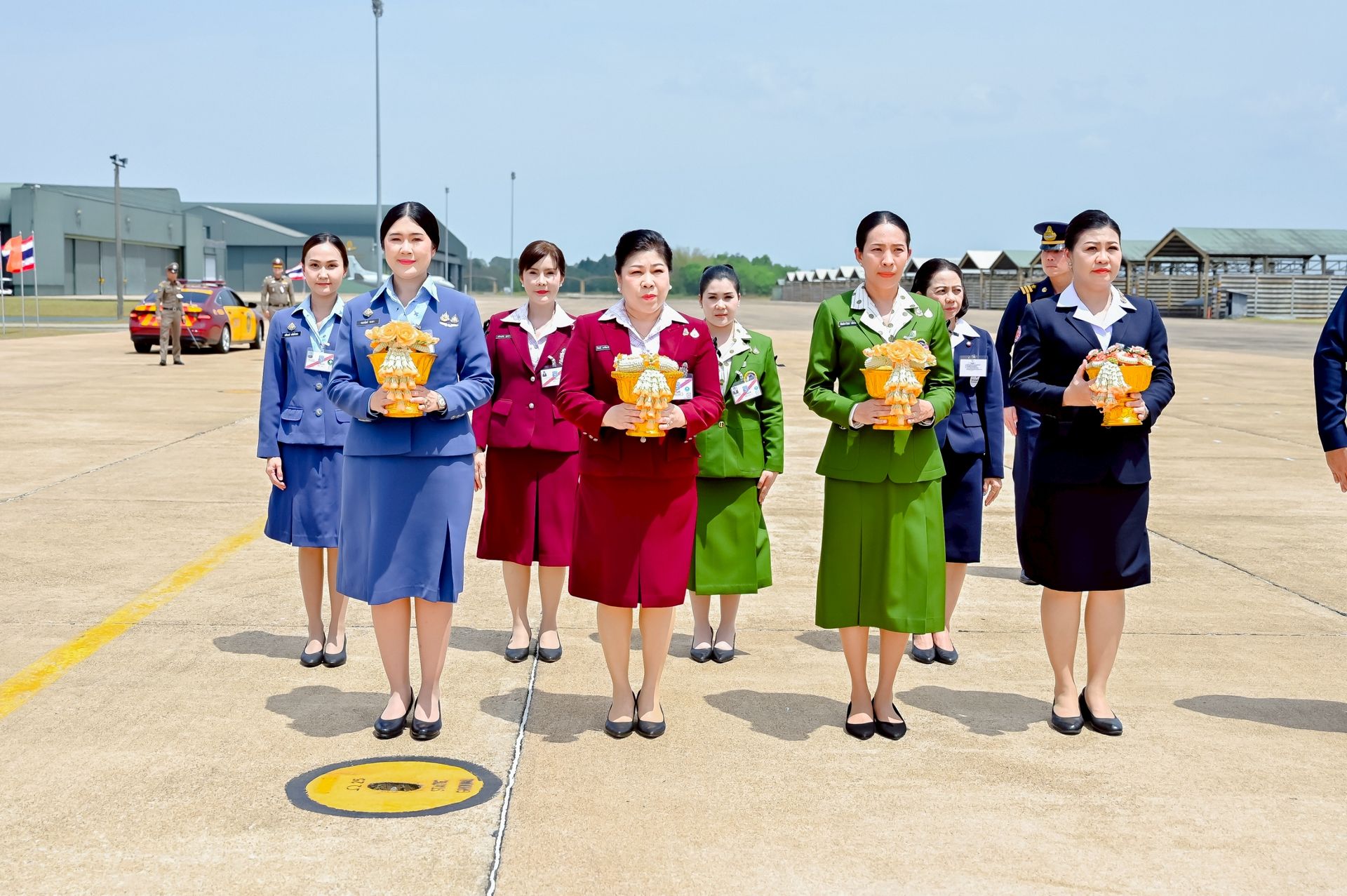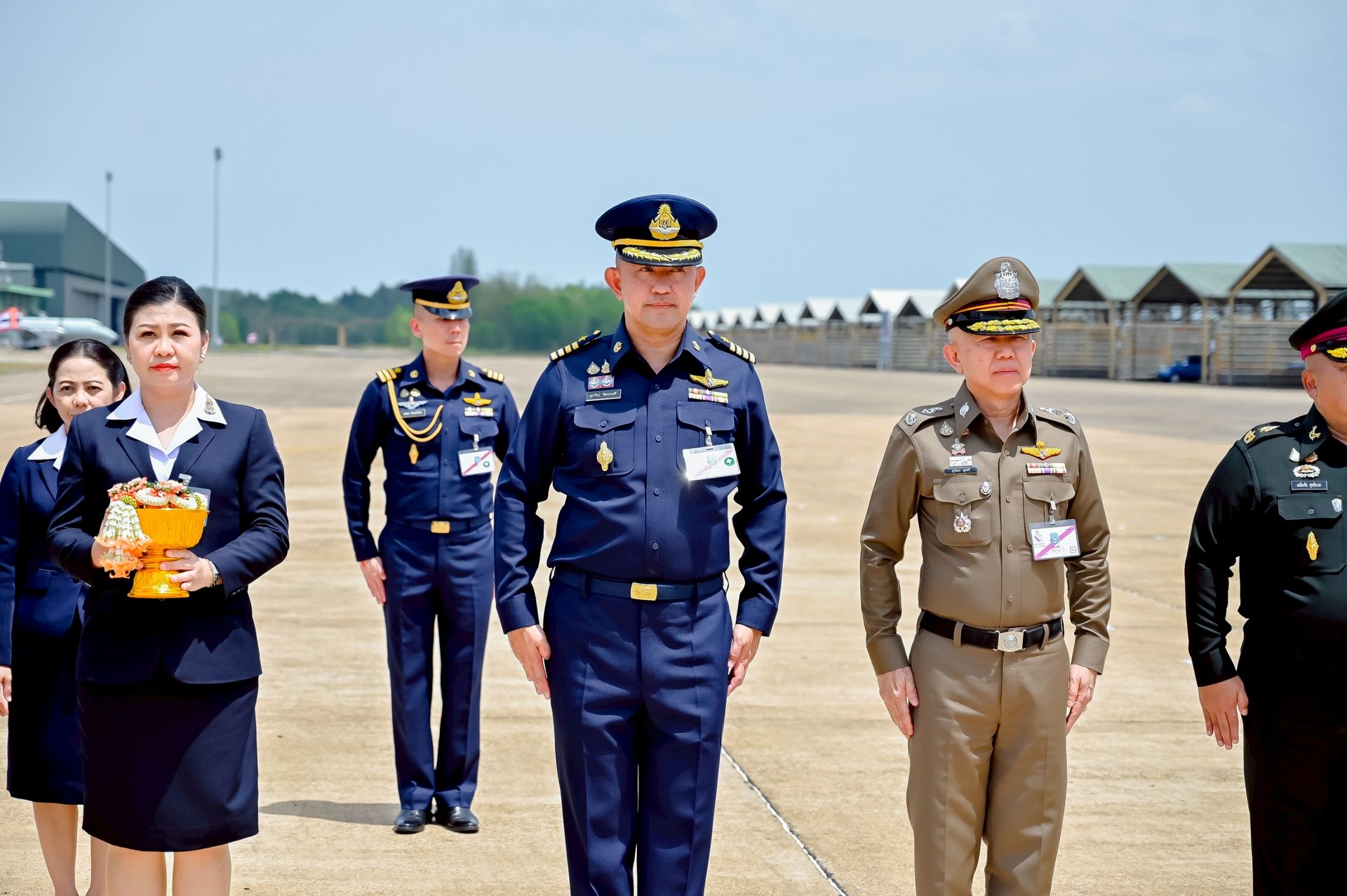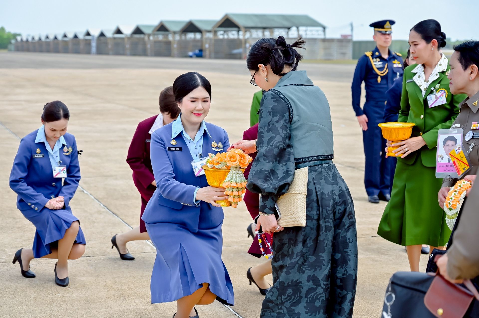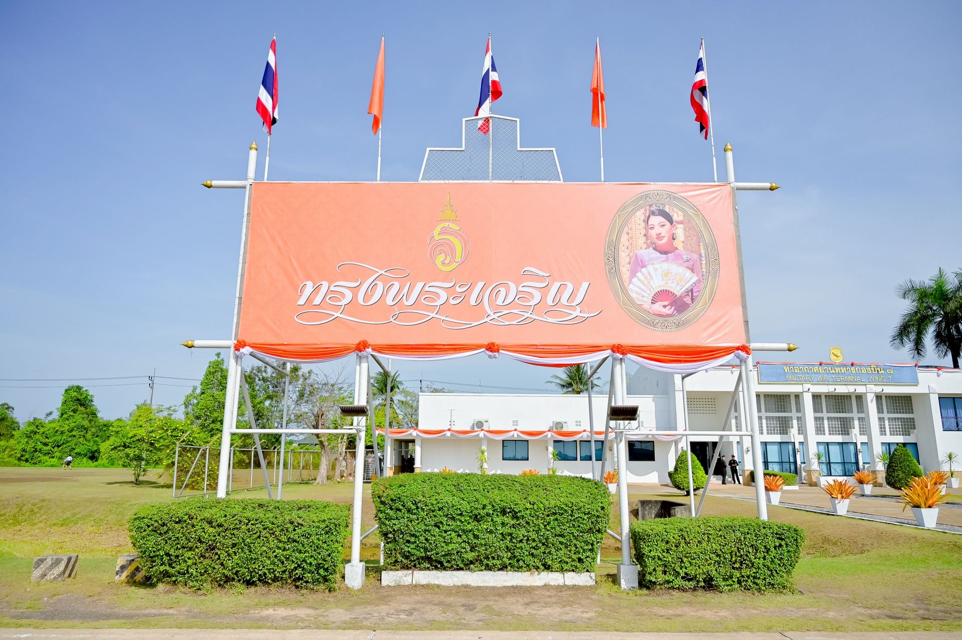 โอกาสนี้ นาวาอากาศเอก ศุภวัจน์ จิตรมนตรี ผู้บังคับการกองบิน ๗ พร้อมด้วย รองผู้บังคับการกองบิน ๗ และ นาวาอากาศตรีหญิง ชนกนันท์ จรรยา รองประธานชมรมคู่สมรสทหารอากาศ กองบิน ๗(๓) ร่วมรับ-ส่งเสด็จ เมื่อวันที่ ๒๐ กุมภาพันธ์ พ.ศ.๒๕๖๙ ณ ท่าอากาศยานทหารกองบิน ๗ ตำบลมะลวน อำเภอพุนพิน จังหวัดสุราษฎร์ธานี