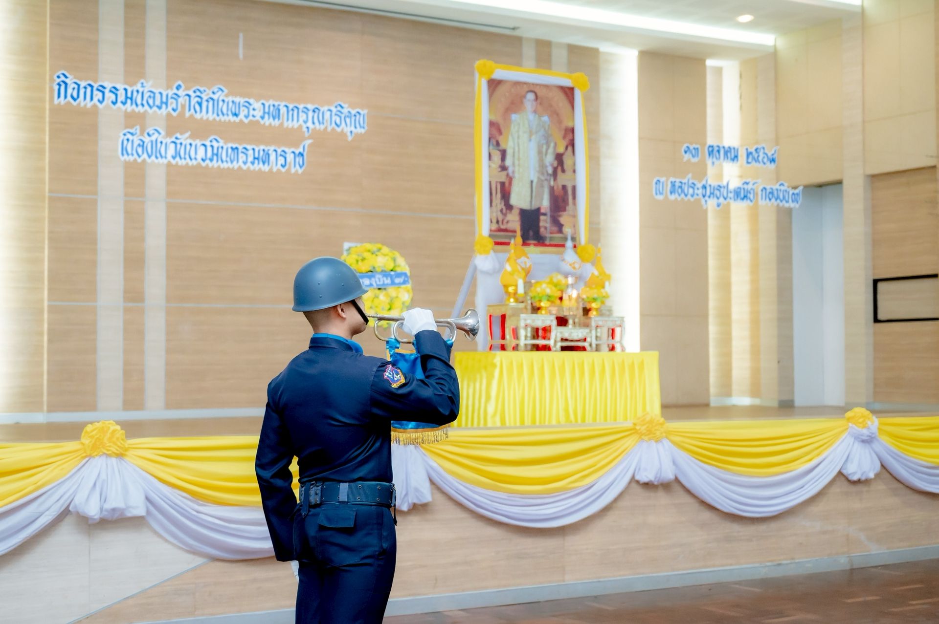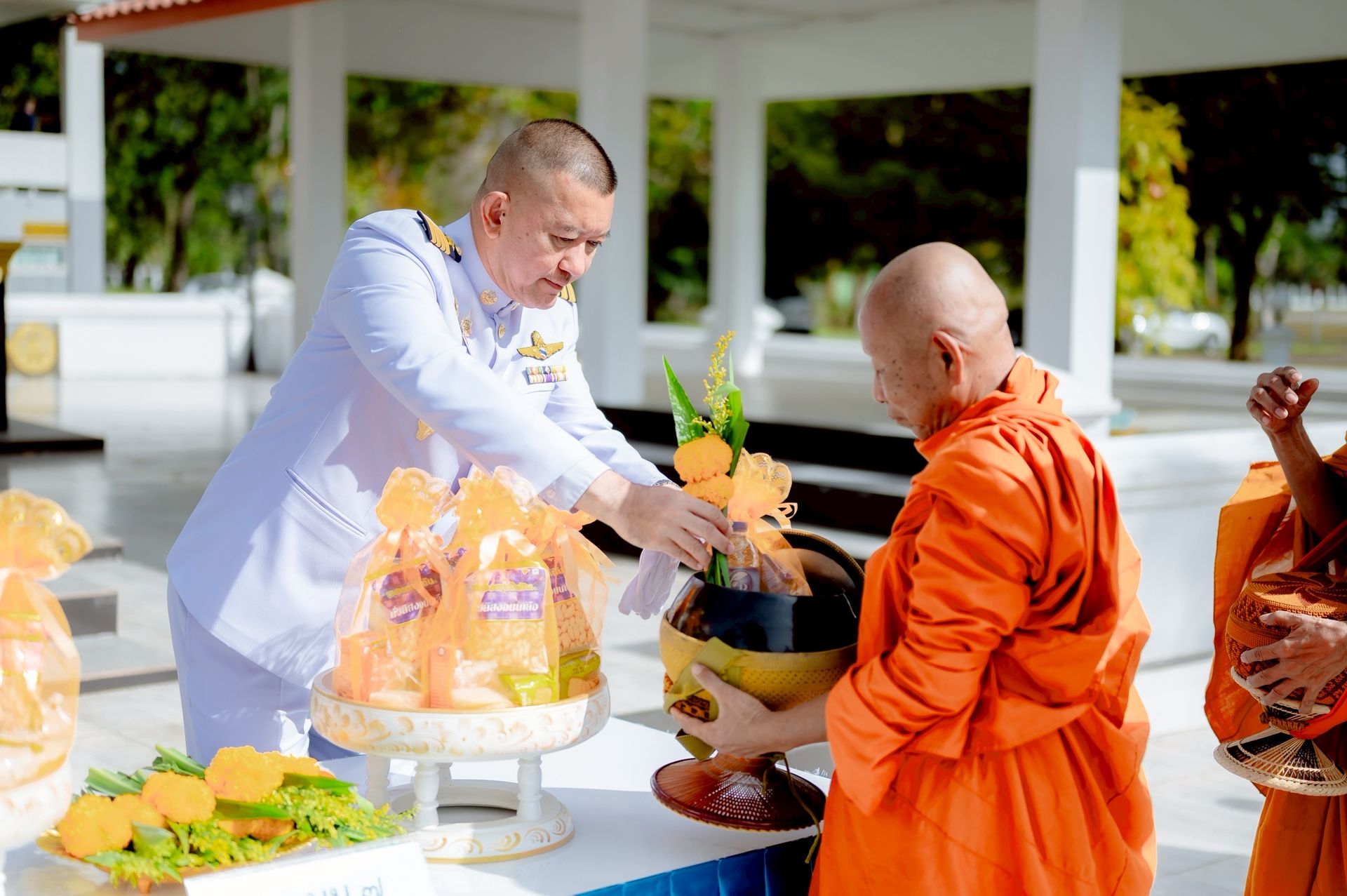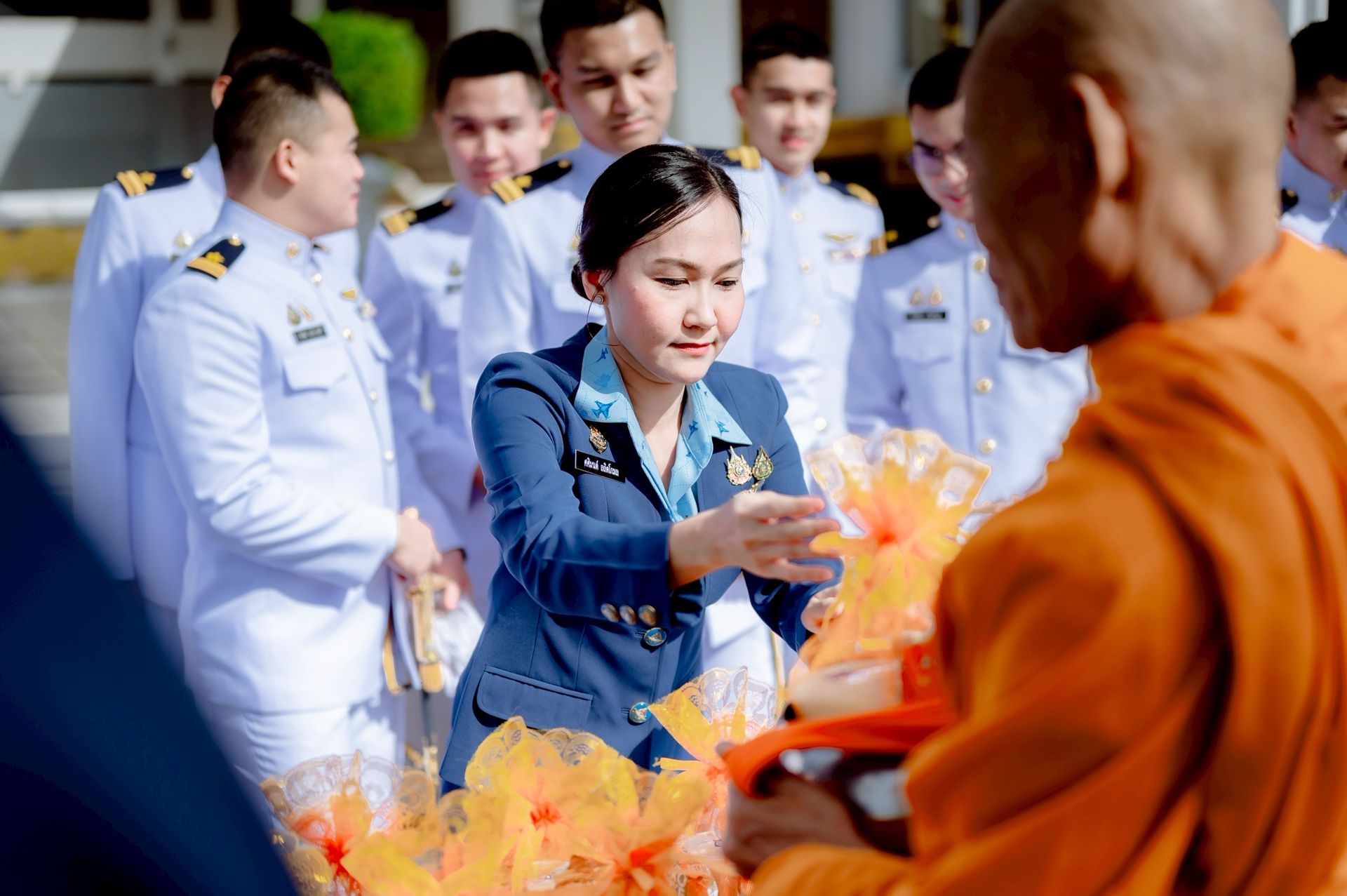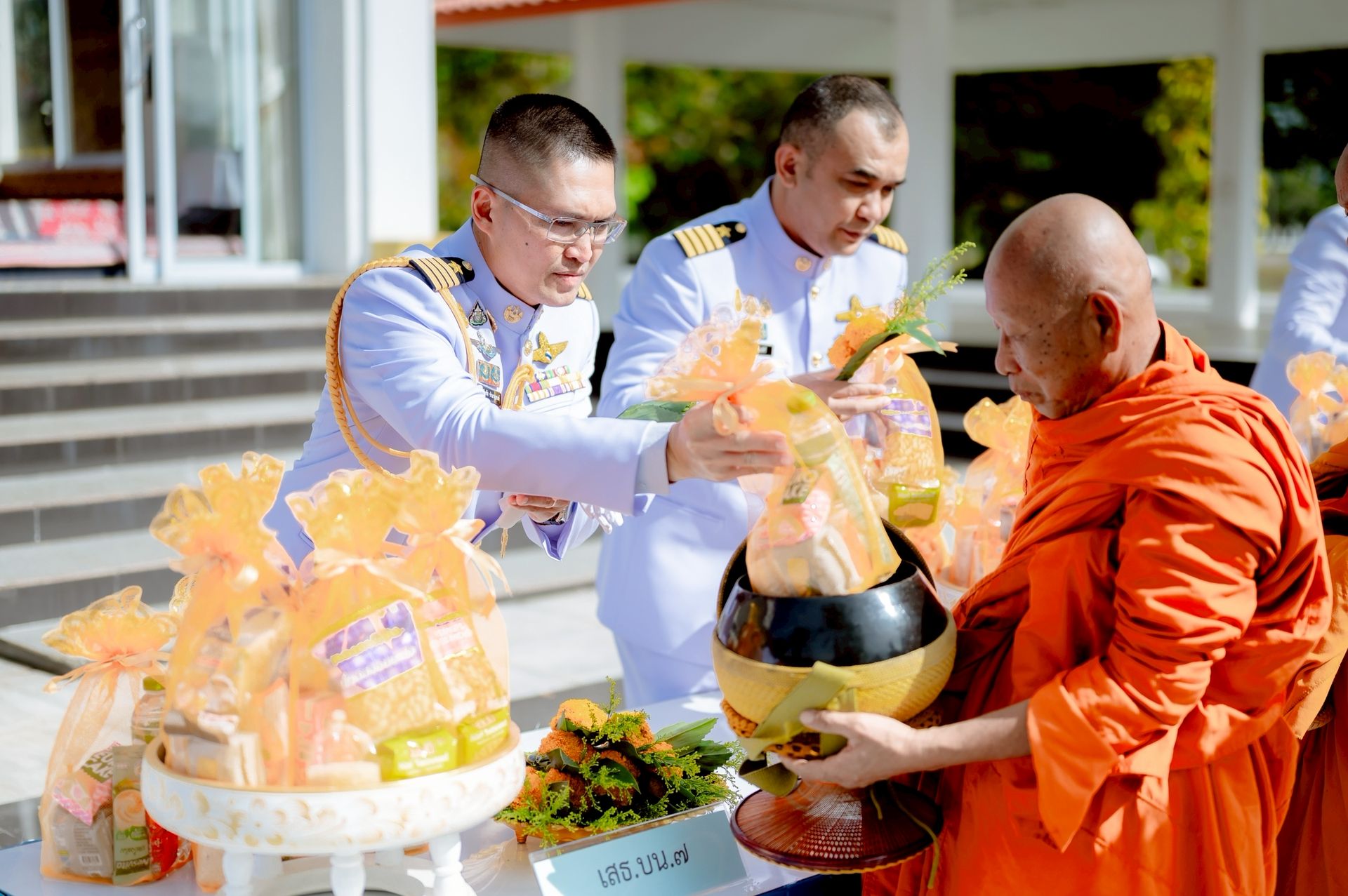 นาวาอากาศเอก ศุภวัจน์ จิตรมนตรี ผู้บังคับการกองบิน ๗ นำข้าราชการ ลูกจ้าง พนักงานราชการ ทหารกองประจำการ และสมาชิกชมรมคู่สมรสทหารอากาศ กองบิน ๗ ร่วมกิจกรรมน้อมรำลึกในพระมหากรุณาธิคุณของ พระบาทสมเด็จพระบรมชนกาธิเบศร มหาภูมิพลอดุลยเดชมหาราช บรมนาถบพิตร เนื่องในวันนวมินทรมหาราช ๑๓ ตุลาคม พ.ศ.๒๕๖๘ โดยมี พิธีตักบาตรข้าวสารอาหารแห้งพระสงฆ์ จำนวน ๑๐ รูป และพิธีวางพวงมาลาและกล่าวน้อมรำลึกในพระมหากรุณาธิคุณ เมื่อวันที่ ๑๐ ตุลาคม พ.ศ.๒๕๖๘ ณ หอประชุมธูปะเตมีย์ กองบิน ๗ ตำบลมะลวน อำเภอพุนพิน จังหวัดสุราษฎร์ธานี