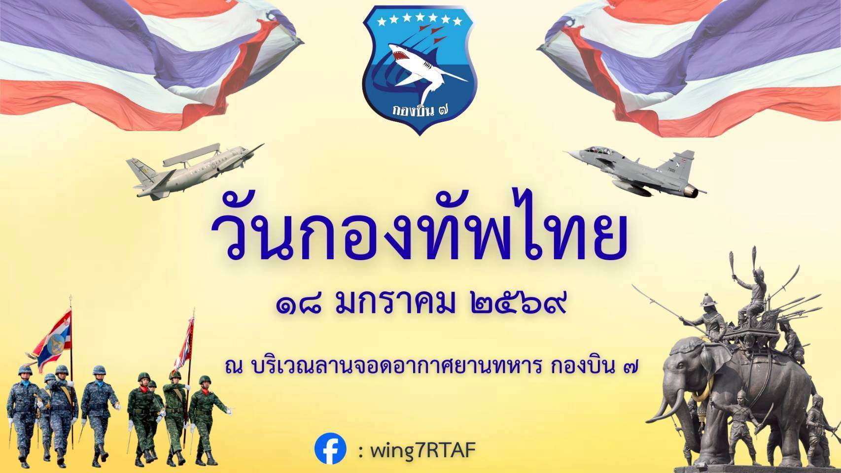 เนื่องในวันสำคัญนี้ กองบิน ๗ ขอร่วมแสดงความภาคภูมิใจในเกียรติประวัติของกองทัพไทย และยืนยันอุดมการณ์ของกำลังพลในการปฏิบัติหน้าที่ด้วยความจงรักภักดี เพื่อความมั่นคงของชาติสืบไป