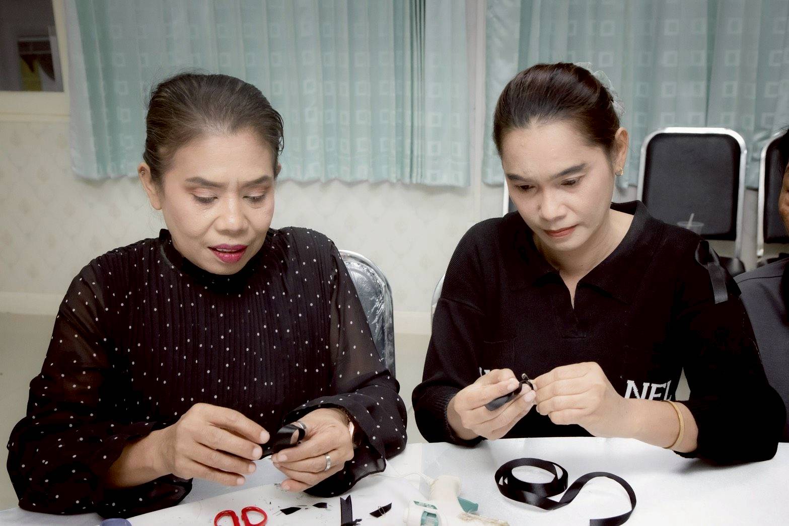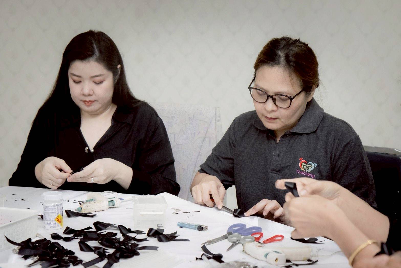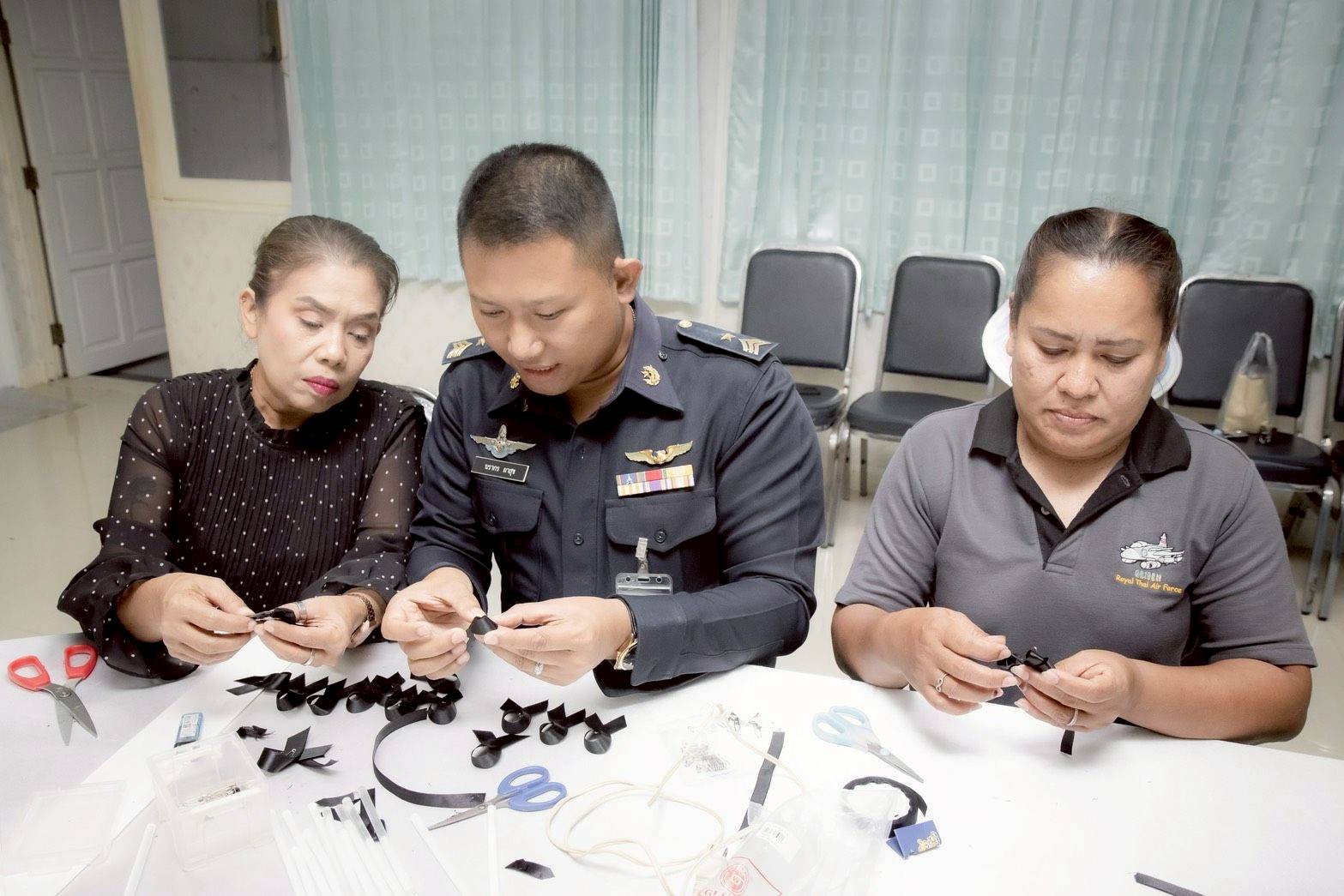 ชมรมคู่สมรสทหารอากาศ กองบิน ๗ จัดทำริบบิ้นสีดำ ถวายความอาลัย เพื่อแจกจ่ายพี่น้องประชาชน