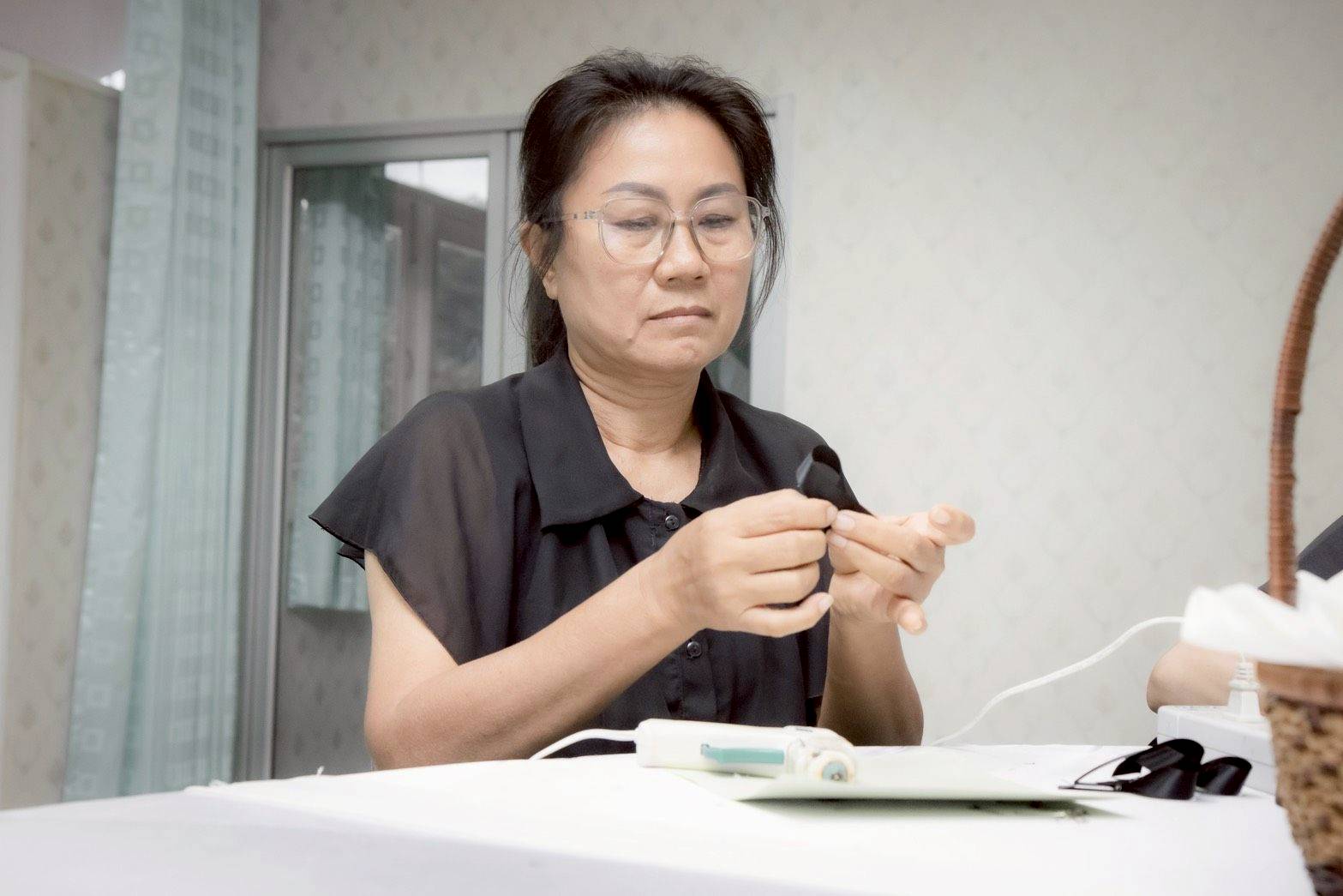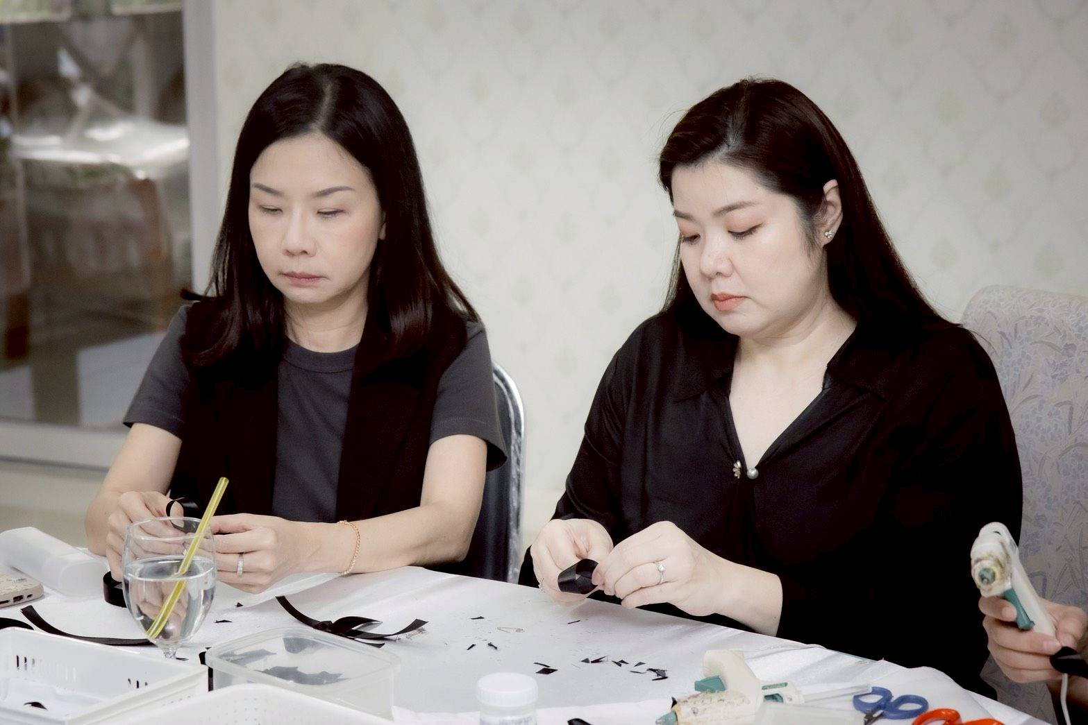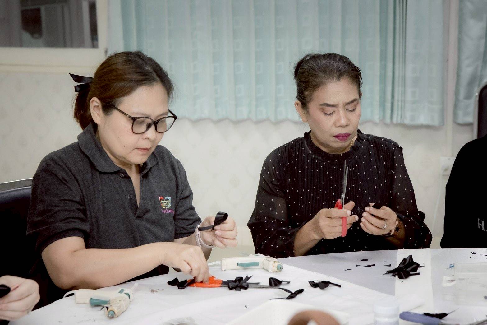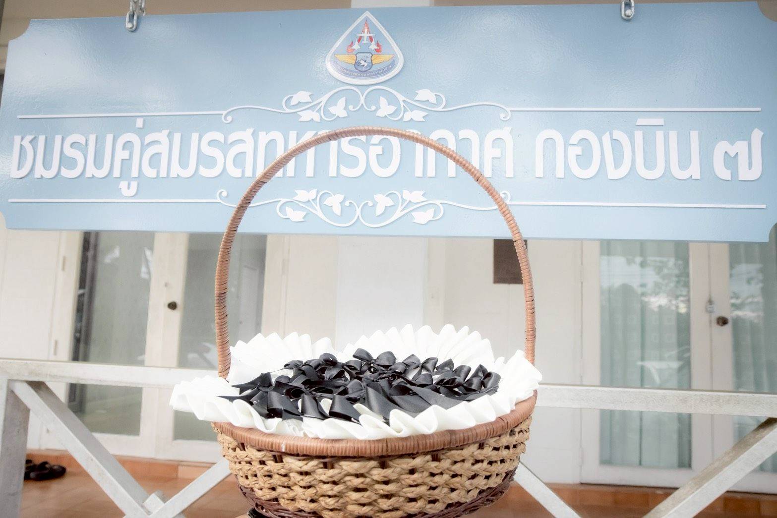 ชมรมคู่สมรสทหารอากาศ กองบิน ๗ จัดทำริบบิ้นสีดำ ถวายความอาลัย เพื่อแจกจ่ายพี่น้องประชาชน