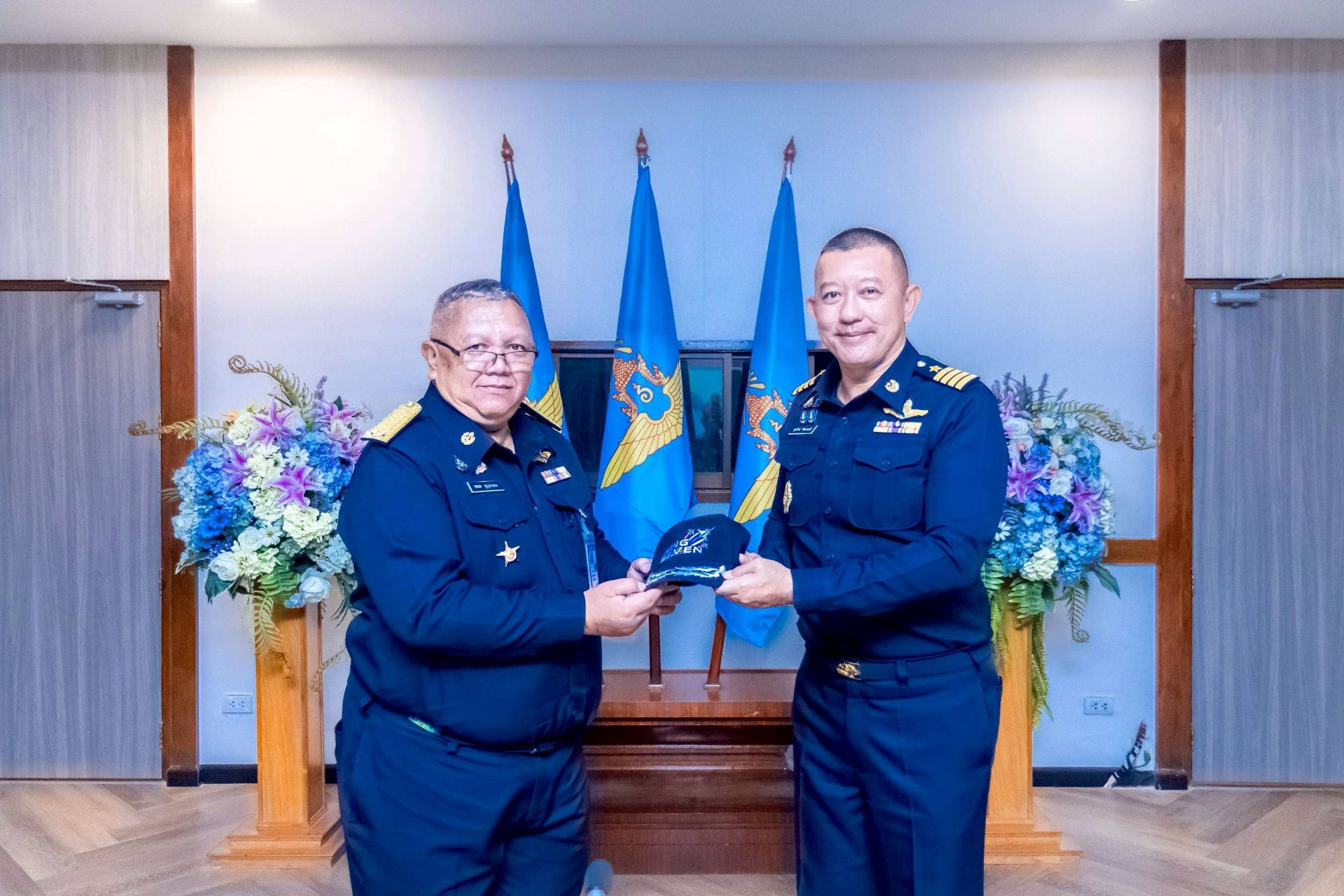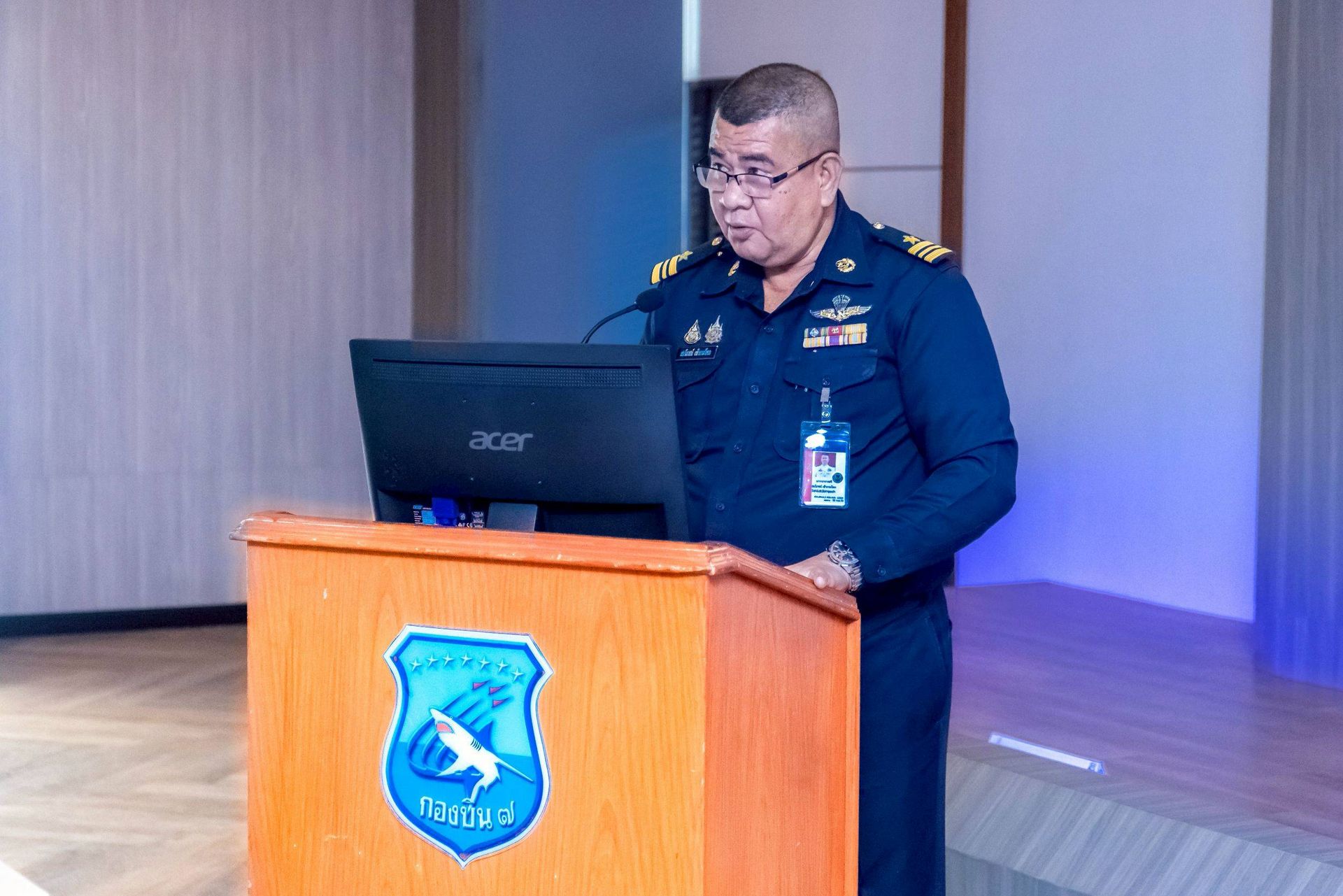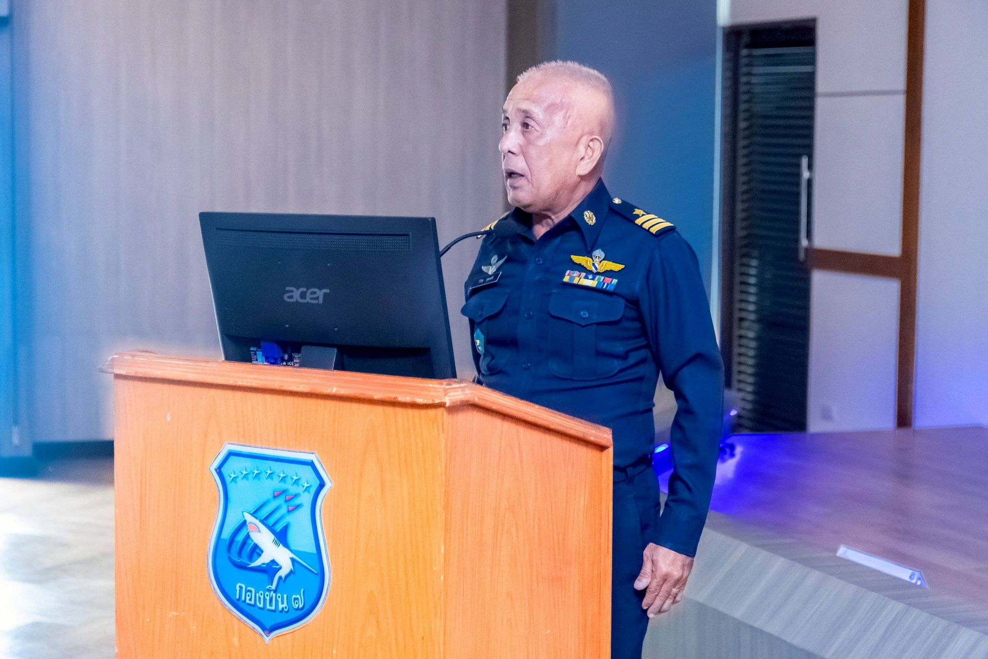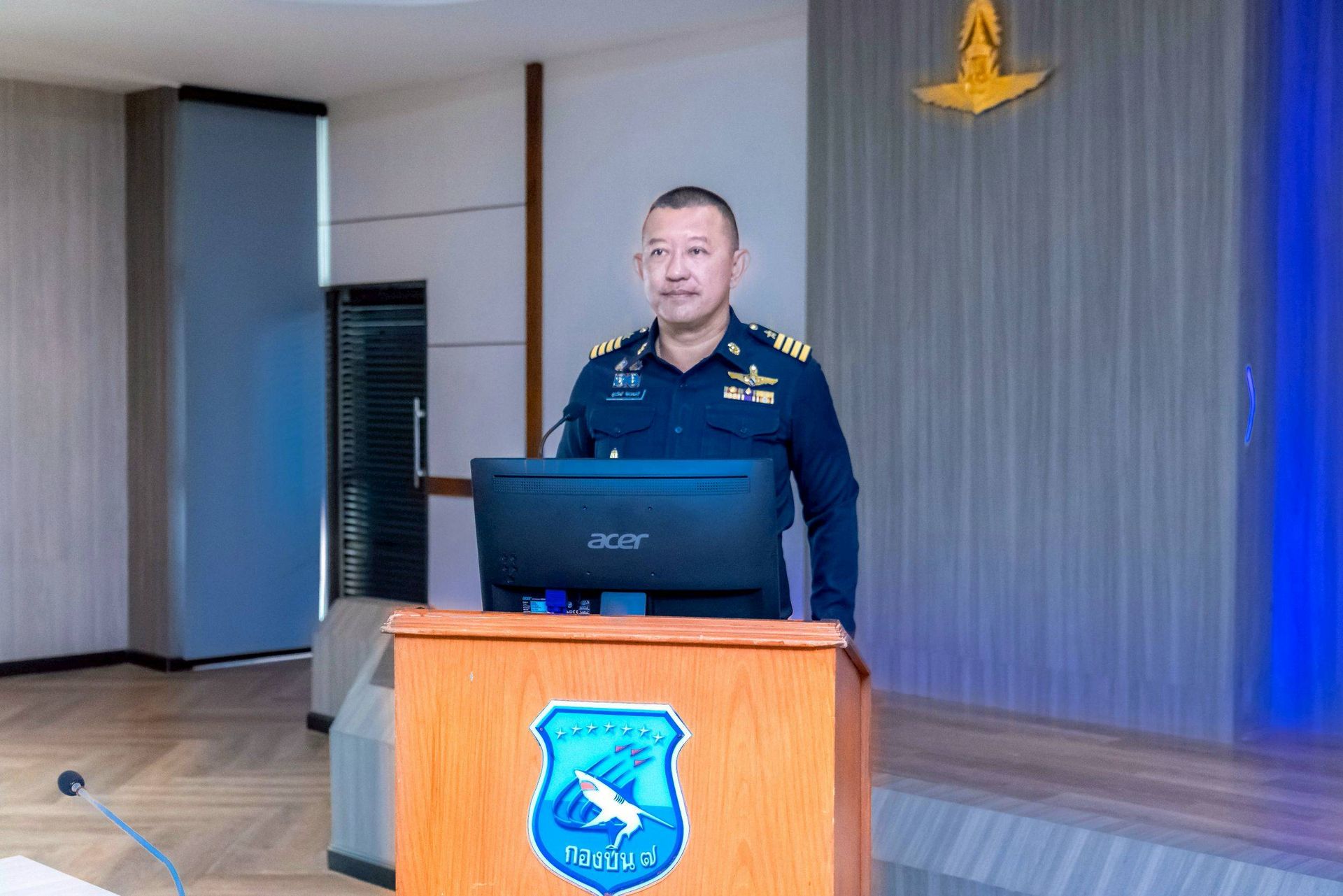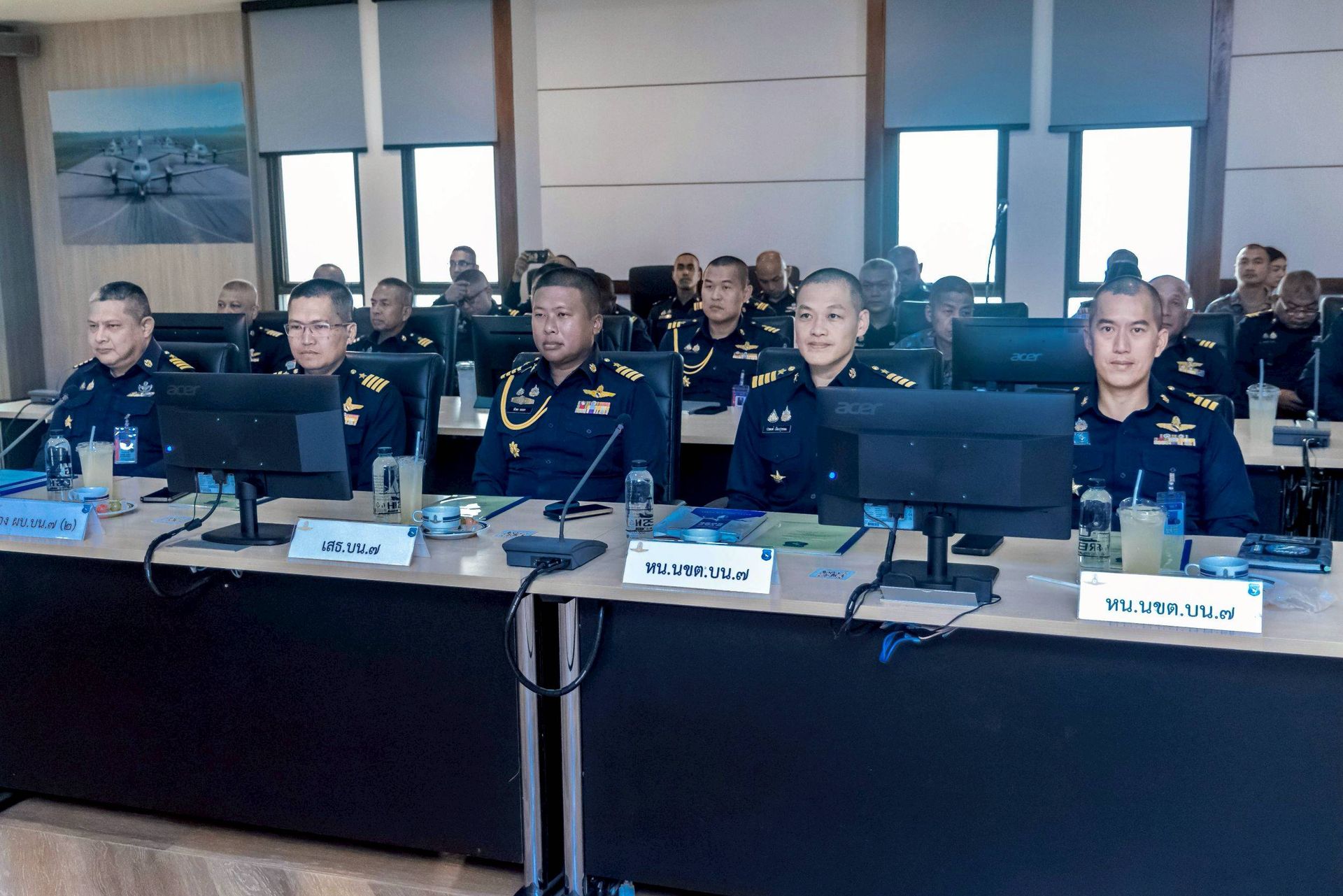 โอกาสนี้ นาวาอากาศเอก ศุภวัจน์ จิตรมนตรี ผู้บังคับการกองบิน ๗ พร้อมด้วย รองผู้บังคับการกองบิน ๗ เสนาธิการกองบิน ๗ และหัวหน้าหน่วยขึ้นตรงกองบิน ๗ ร่วมให้การต้อนรับฯ และรับฟังบรรยายสรุป เมื่อวันที่ ๒๖ กุมภาพันธ์ พ.ศ.๒๕๖๙ ณ ห้องประชุมกองบิน ๗ ตำบลมะลวน อำเภอพุนพิน จังหวัดสุราษฎร์ธานี