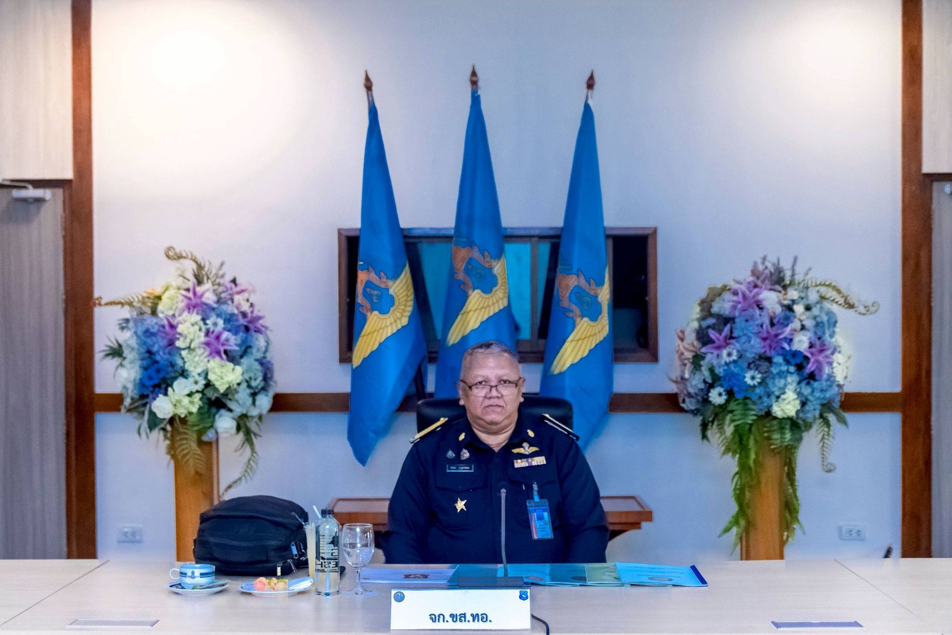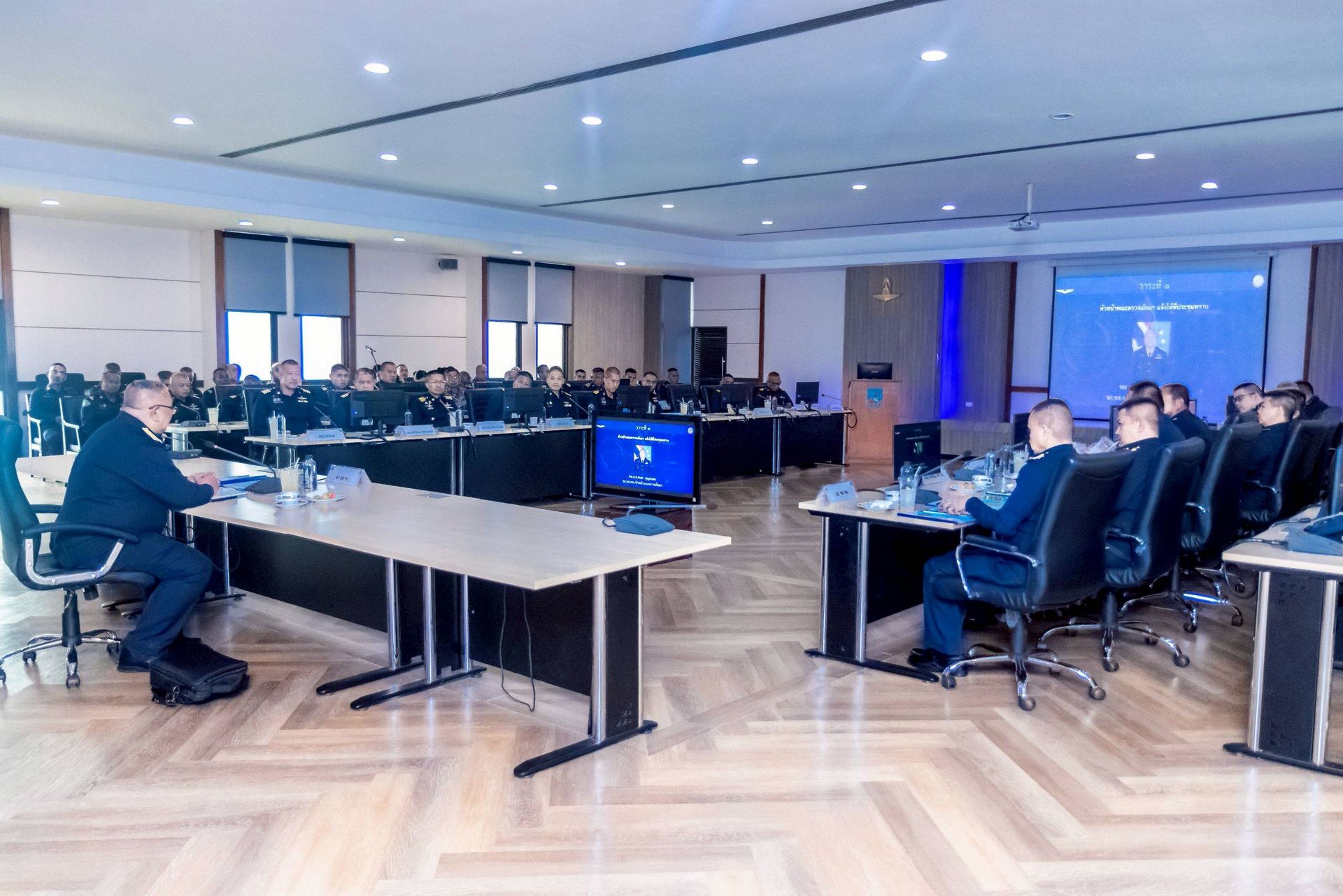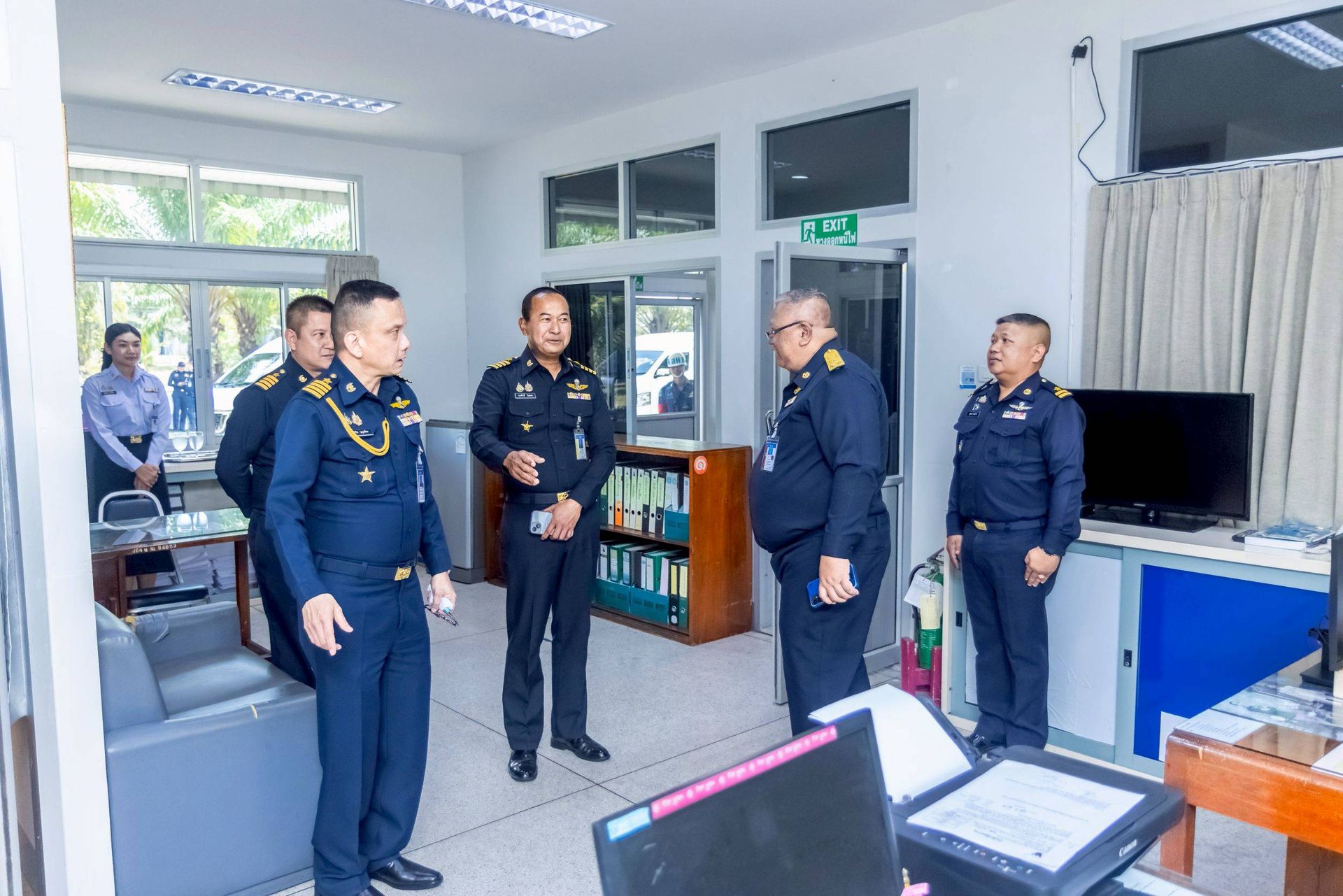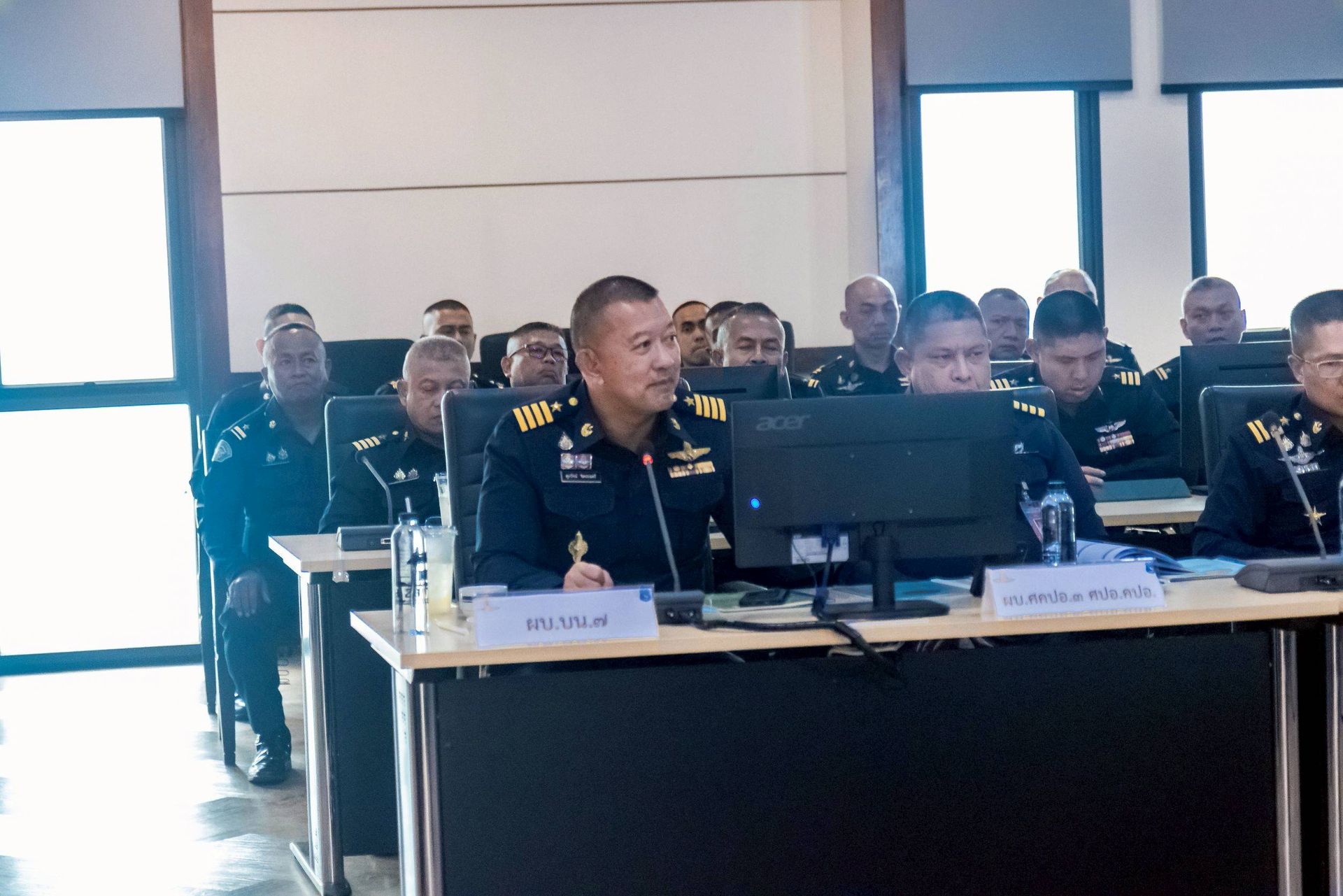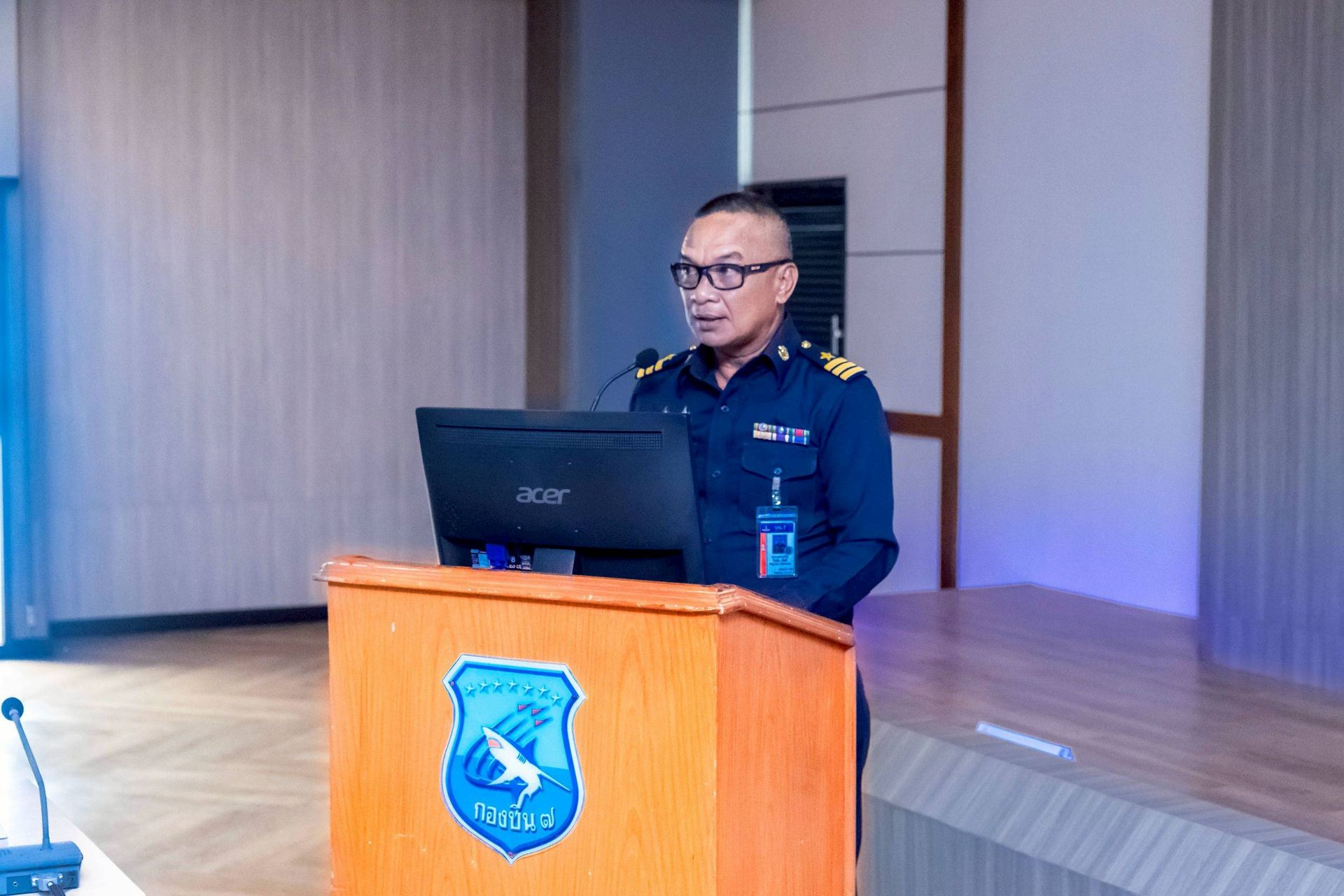 โอกาสนี้ นาวาอากาศเอก ศุภวัจน์ จิตรมนตรี ผู้บังคับการกองบิน ๗ พร้อมด้วย รองผู้บังคับการกองบิน ๗ เสนาธิการกองบิน ๗ และหัวหน้าหน่วยขึ้นตรงกองบิน ๗ ร่วมให้การต้อนรับฯ และรับฟังบรรยายสรุป เมื่อวันที่ ๒๖ กุมภาพันธ์ พ.ศ.๒๕๖๙ ณ ห้องประชุมกองบิน ๗ ตำบลมะลวน อำเภอพุนพิน จังหวัดสุราษฎร์ธานี