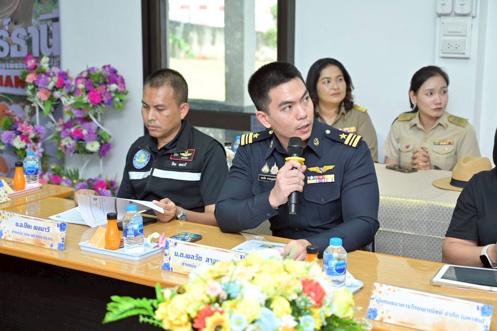 นาวาอากาศเอก ปิยะ พลนาวี รองผู้อํานวยการกองบรรเทาสาธารณภัยกองทัพอากาศ สํานักนโยบายและแผน กรมกิจการพลเรือนทหารอากาศผู้แทนกองทัพอากาศ พร้อมด้วย