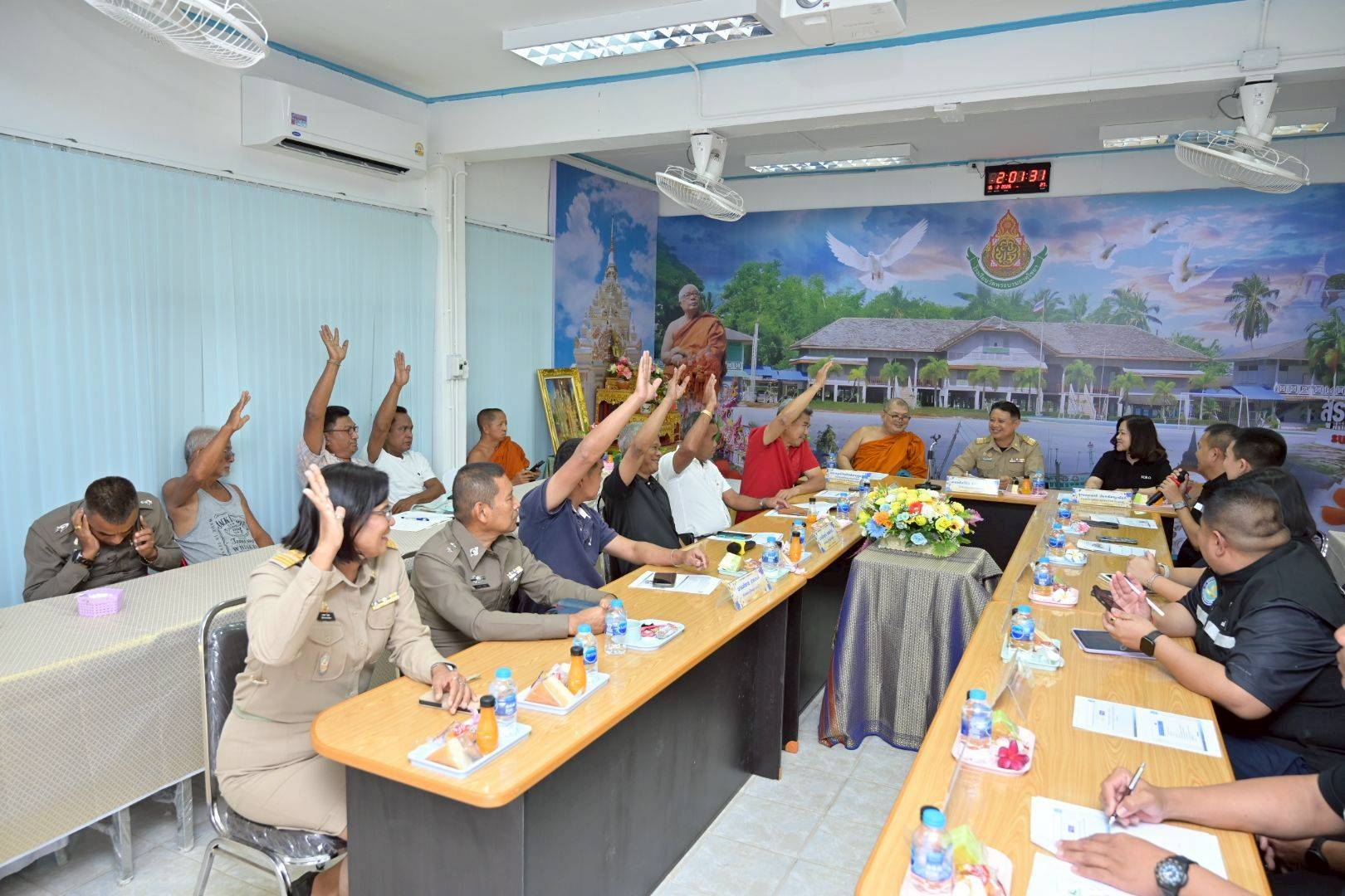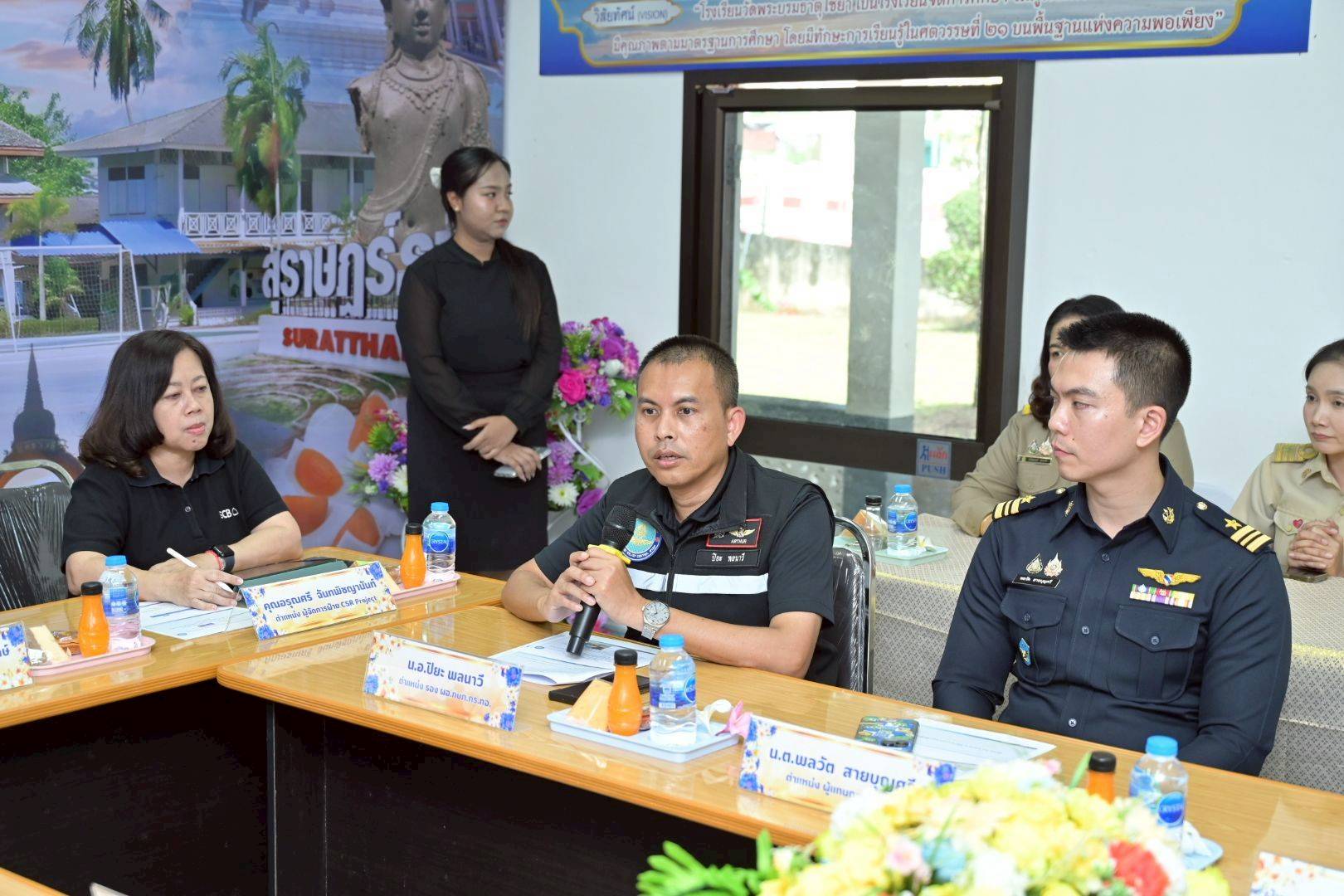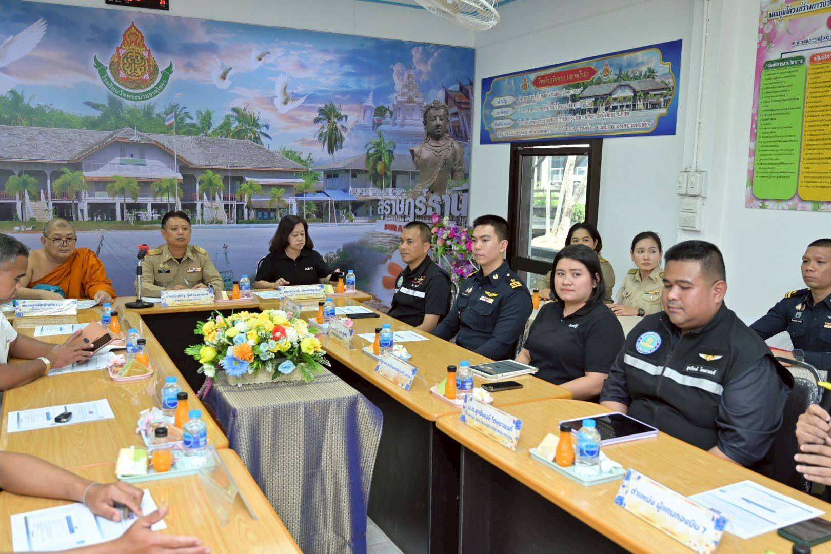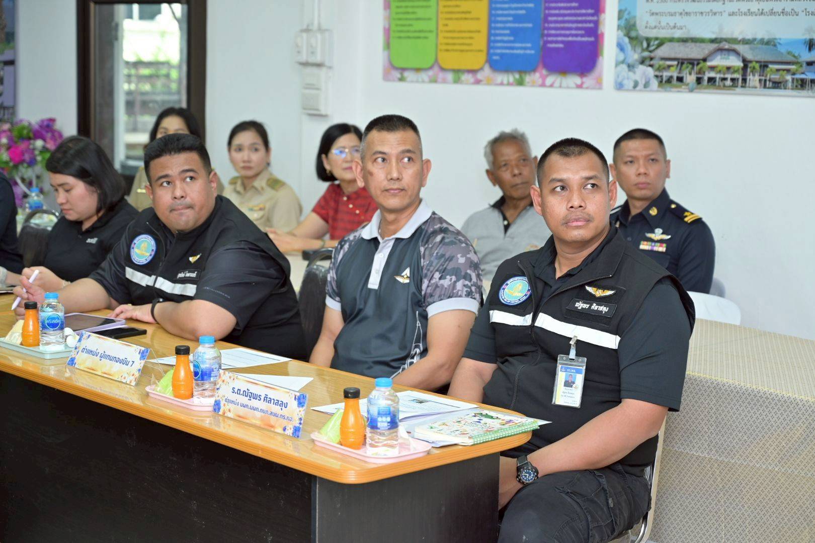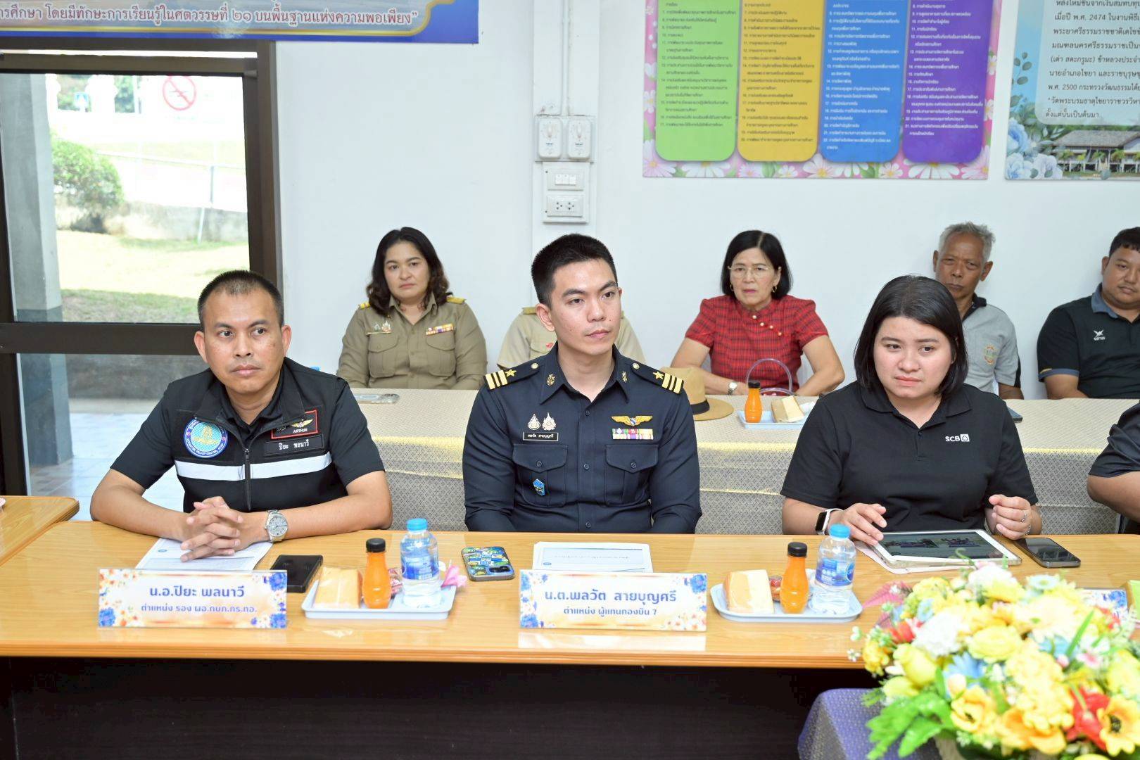 โอกาสนี้ นาวาอากาศเอก ศุภวัจน์ จิตรมนตรี ผู้บังคับการกองบิน ๗ มอบหมายให้ นาวาอากาศตรี พลวัต สายบุญศรี รองหัวหน้าแผนกกิจการพลเรือน กองบังคับการ กองบิน ๗ ให้การต้อนรับ และสำรวจพื้นที่เป้าหมายของโครงการฯ พร้อมทั้งพบปะผู้นำชุมชน/ท้องถิ่น ณ โรงเรียนวัดพระบรมธาตุไชยา อำเภอไชยา จังหวัดสุราษฎร์ธานี เมื่อวันที่ ๑๖ กุมภาพันธ์ พ.ศ.๒๕๖