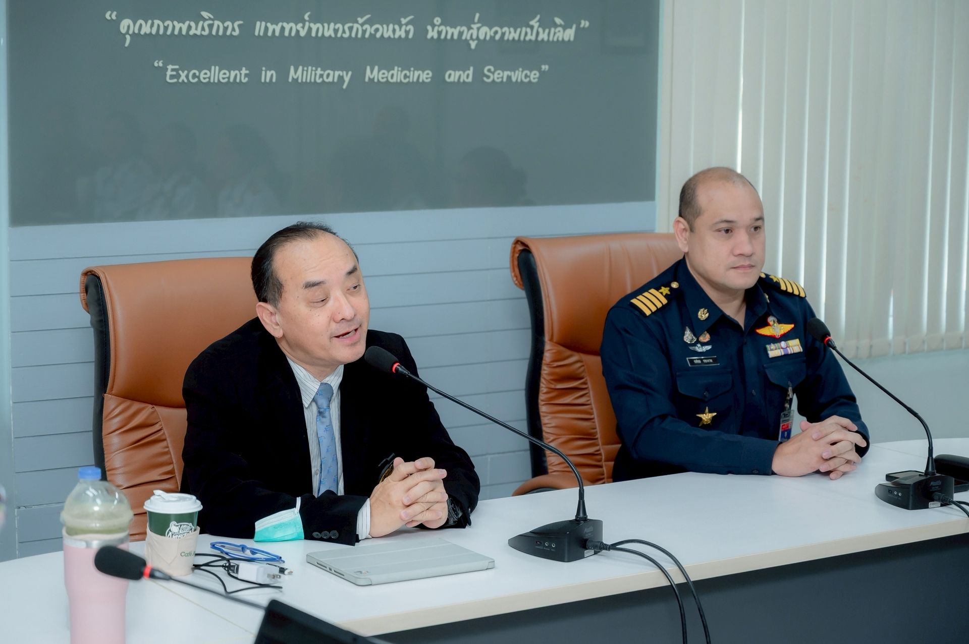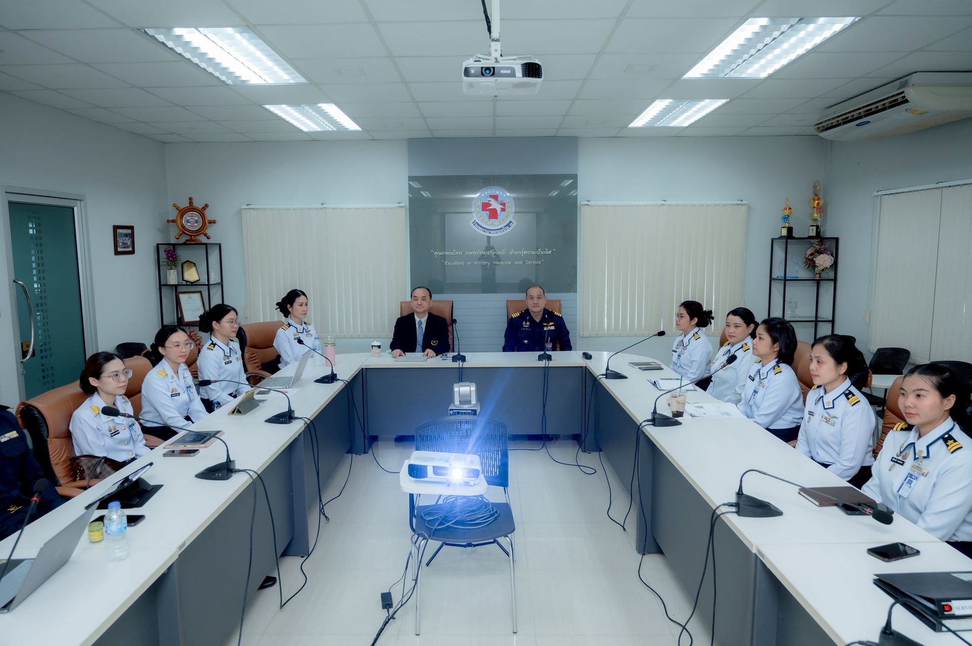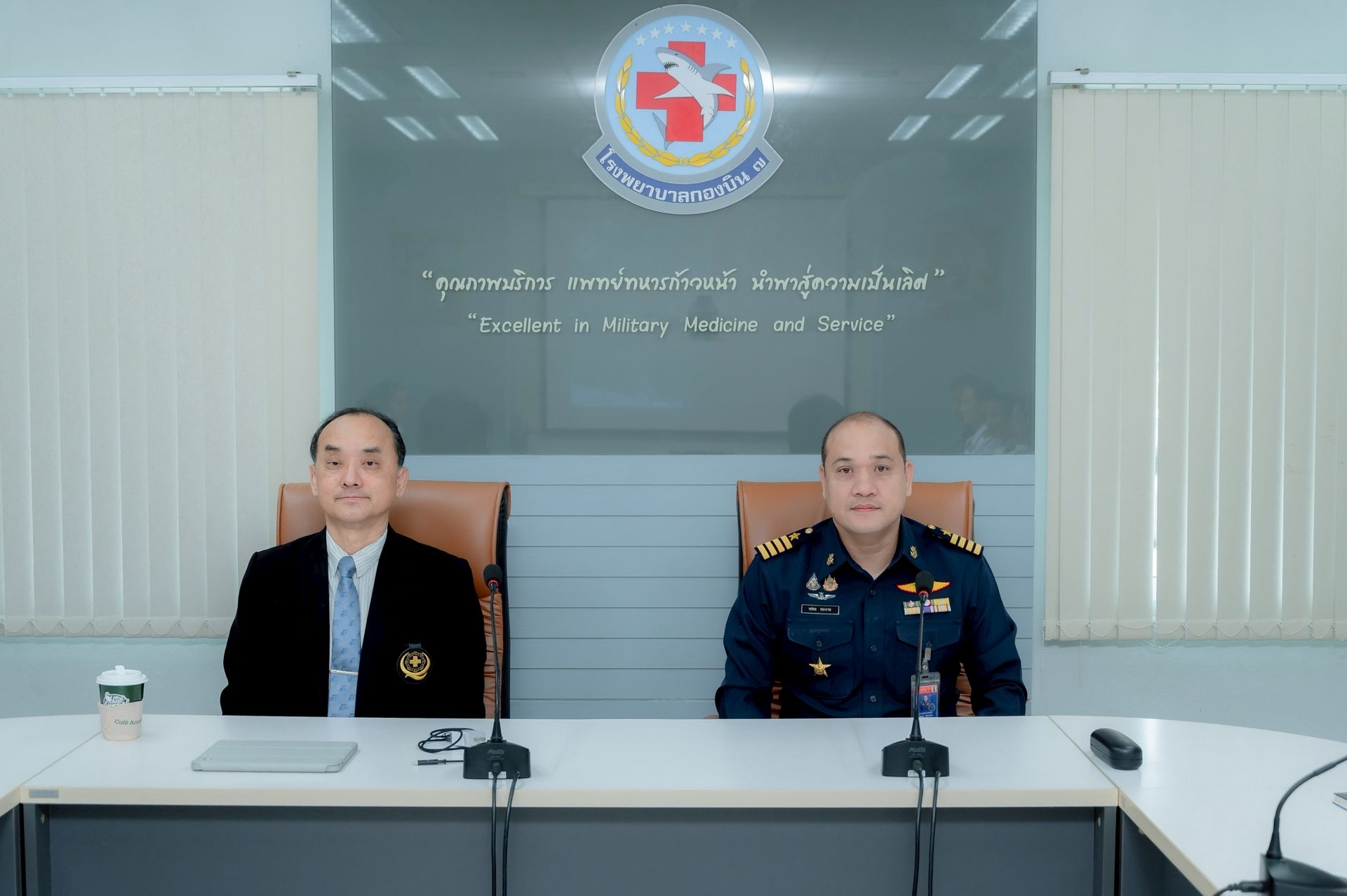 โ โอกาสนี้ นาวาอากาศเอก ศุภวัจน์ จิตรมนตรี ผู้บังคับการกองบิน ๗ มอบหมายให้ นาวาอากาศเอก ทศพล ทองงาม ประจำกองบิน ๗ และรักษาราชการผู้อำนวยการโรงพยาบาลกองบิน กองบิน ๗ ร่วมให้การต้อนรับฯ และรับฟังการบรรยายสรุป เมื่อวันที่ ๘ กันยายน พ.ศ.๒๕๖๘ ณ ห้องประชุม โรงพยาบาลกองบิน กองบิน ๗ ตำบลมะลวน อำเภอพุนพิน จังหวัดสุราษฎร์ธานี
