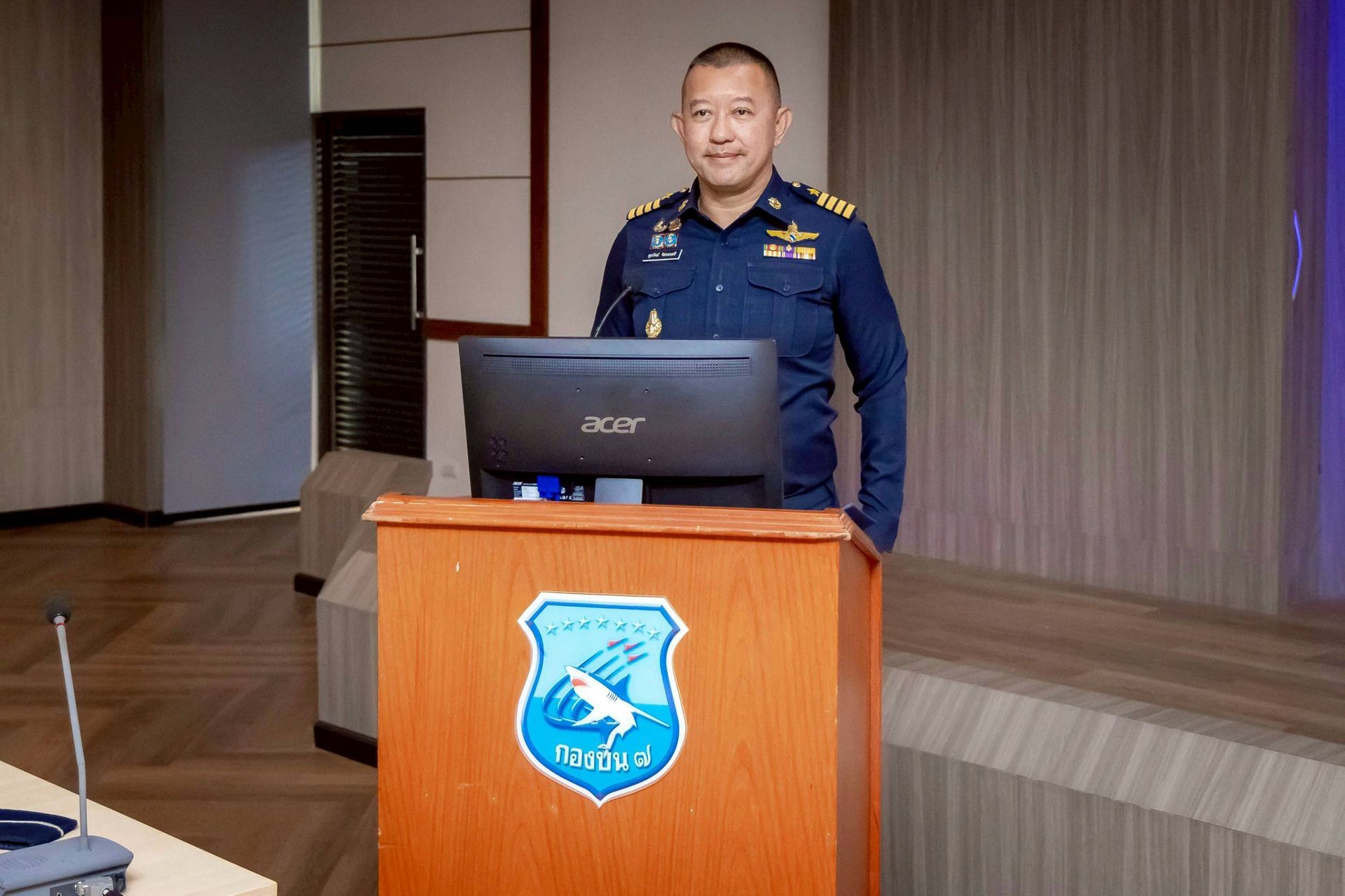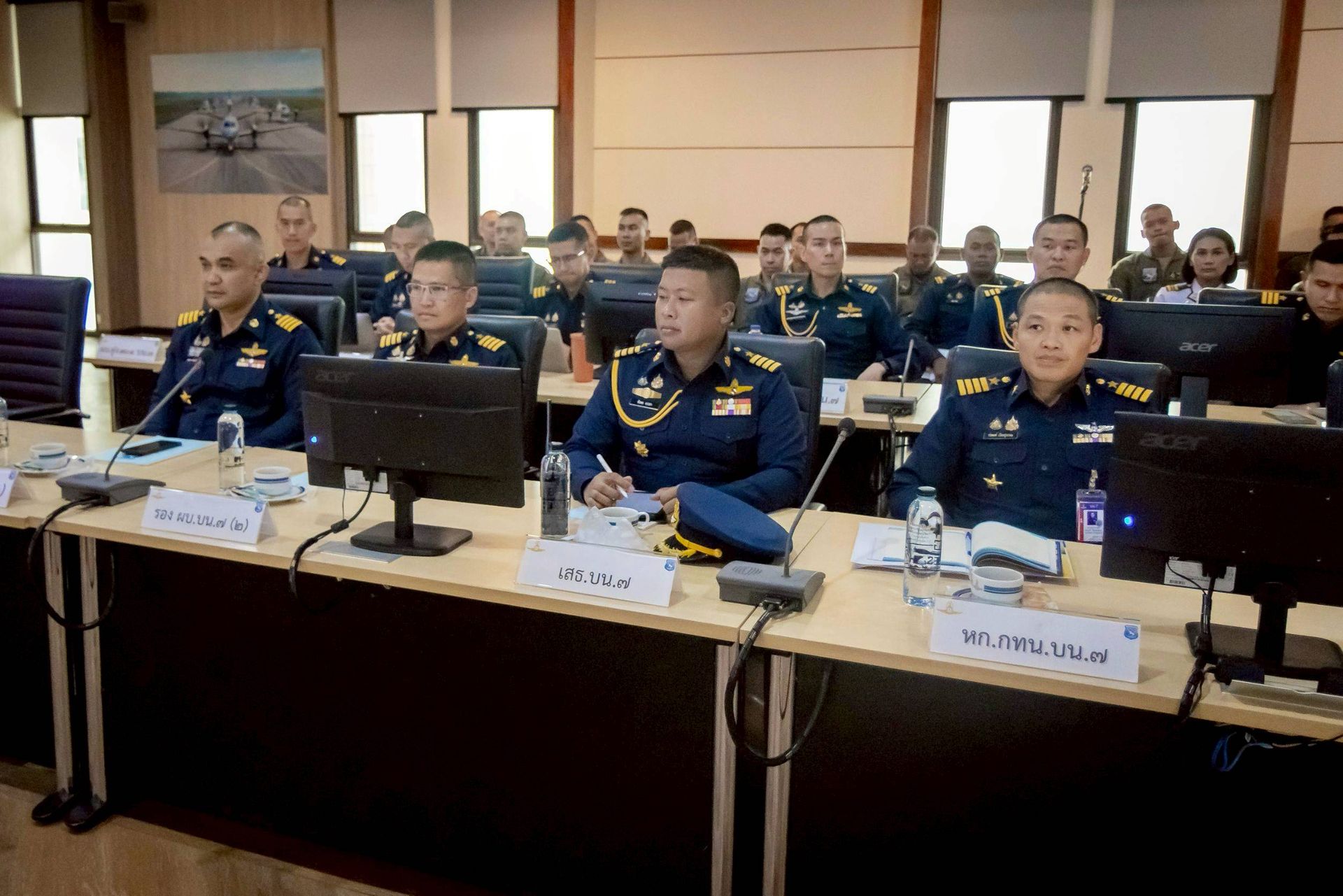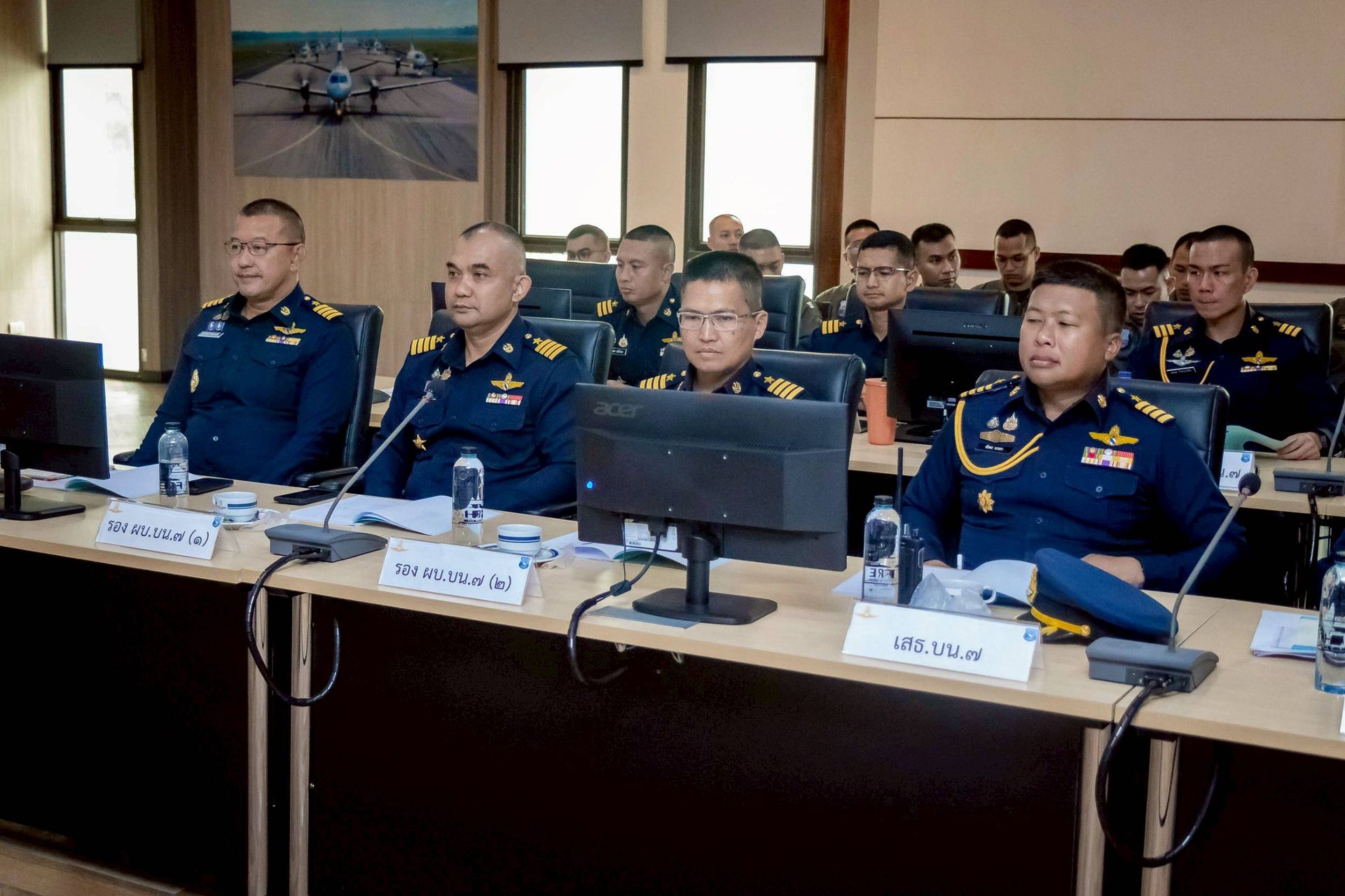โอกาสนี้ นาวาอากาศเอก ศุภวัจน์ จิตรมนตรี ผู้บังคับการกองบิน ๗ พร้อมด้วย รองผู้บังคับการกองบิน ๗ เสนาธิการกองบิน ๗ และหัวหน้าหน่วยขึ้นตรงกองบิน ๗ ร่วมให้การต้อนรับ และรับฟังบรรยายสรุป เมื่อวันที่ ๑๗ กุมภาพันธ์ พ.ศ.๒๕๖๙ ณ ห้องประชุม กองบิน ๗ ตำบลมะลวน อำเภอพุนพิน จังหวัดสุราษฎร์ธานี