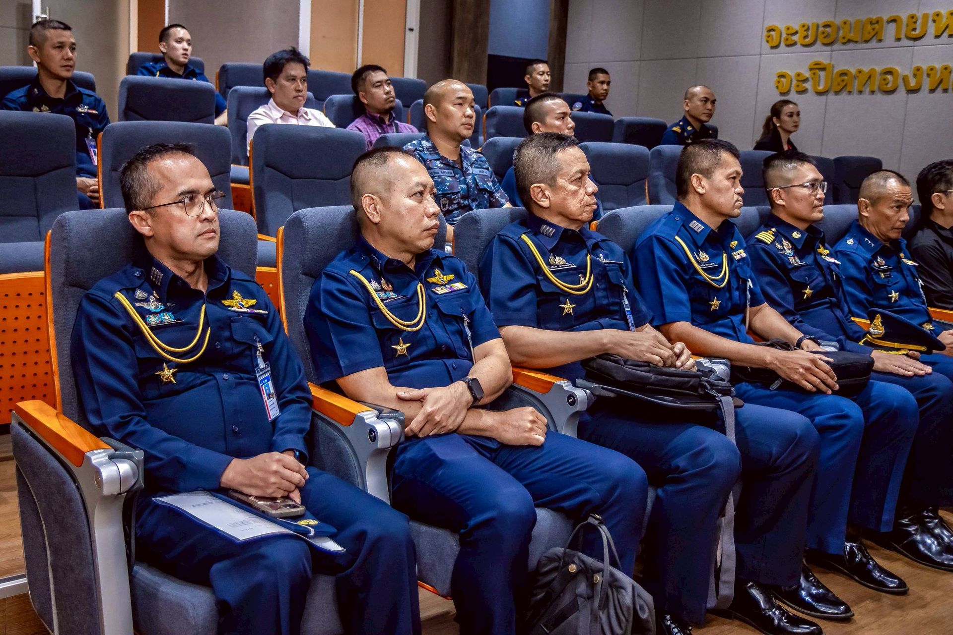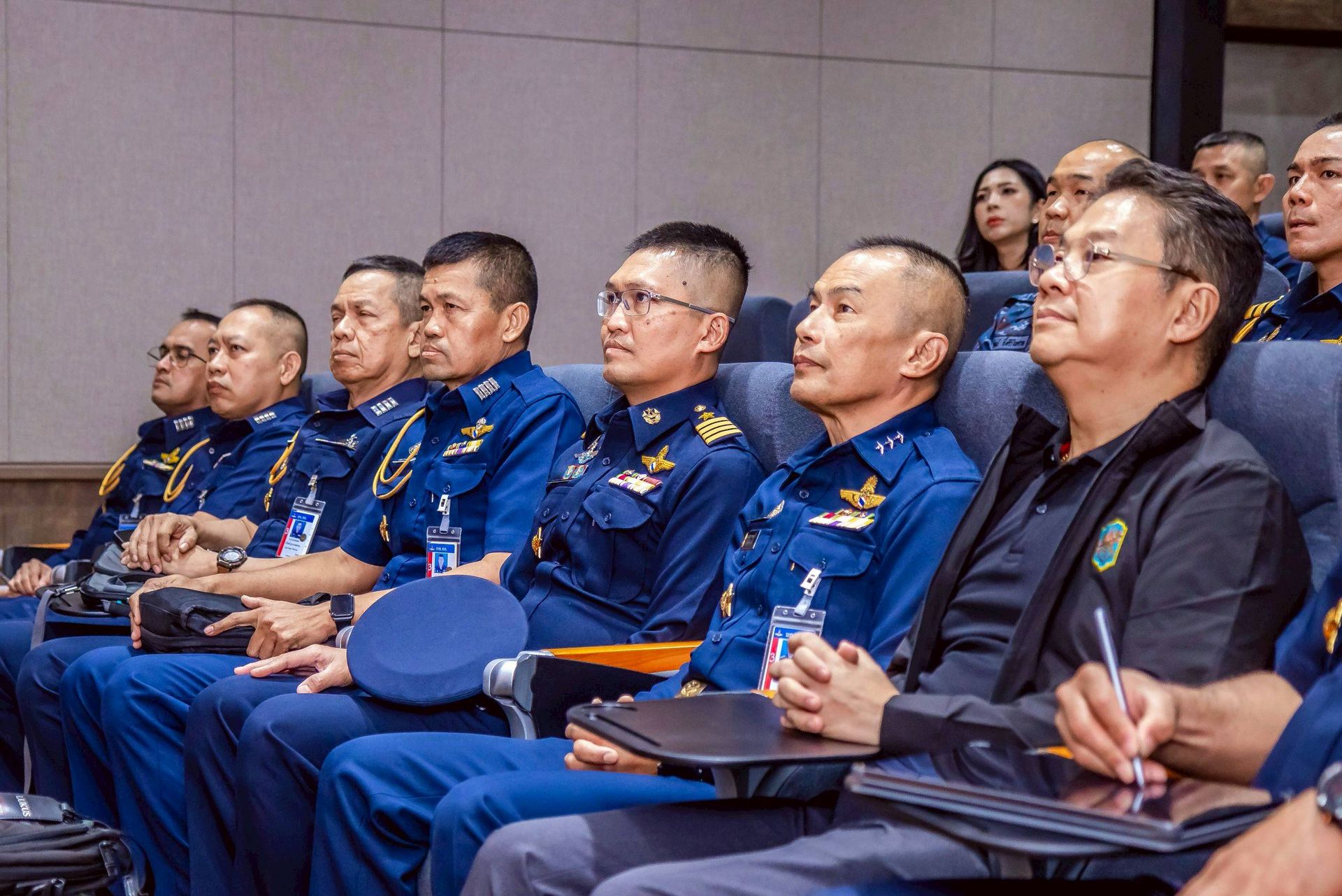 โอกาสนี้ นาวาอากาศเอก ศุภวัจน์ จิตรมนตรี ผู้บังคับการกองบิน ๗ มอบหมายให้ นาวาอากาศเอก สมภพ พันธ์ศรี รองผู้บังคับการกองบิน ๗ (๑) พร้อมด้วย นาวาอากาศเอก เฉลิมชัย ชำนาญยนต์ รองผู้บังคับการกองบิน ๗ (๒) และหัวหน้าหน่วยขึ้นตรงกองบิน ๗ ร่วมให้การต้อนรับฯ และรับฟังบรรยายสรุป เมื่อวันที่ ๒๕ มีนาคม พ.ศ. ๒๕๖๙ ณ ห้องประชุมฝูงบิน ๗๐๑ กองบิน ๗ ตำบลมะลวน อำเภอพุนพิน จังหวัดสุราษฎร์ธานี