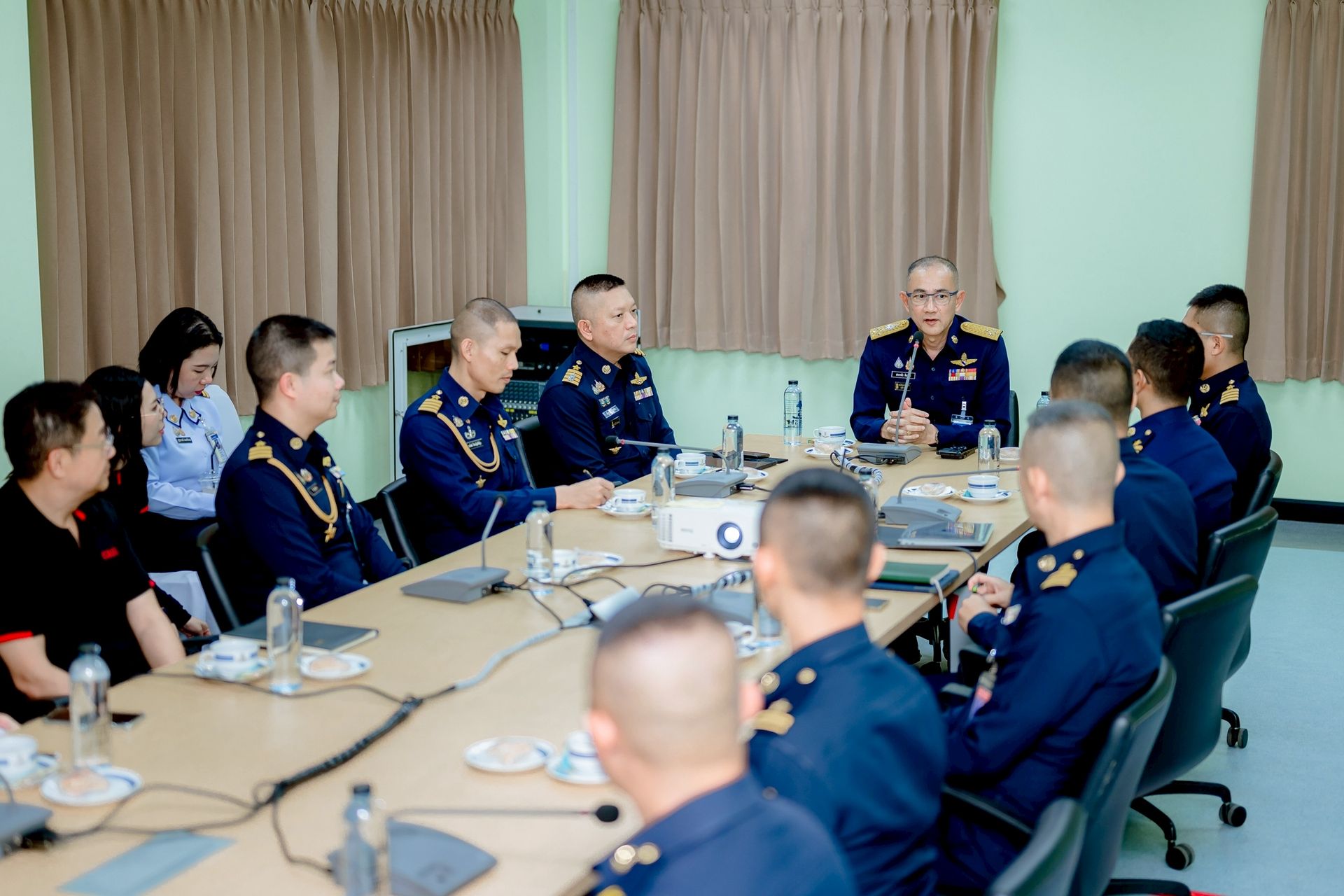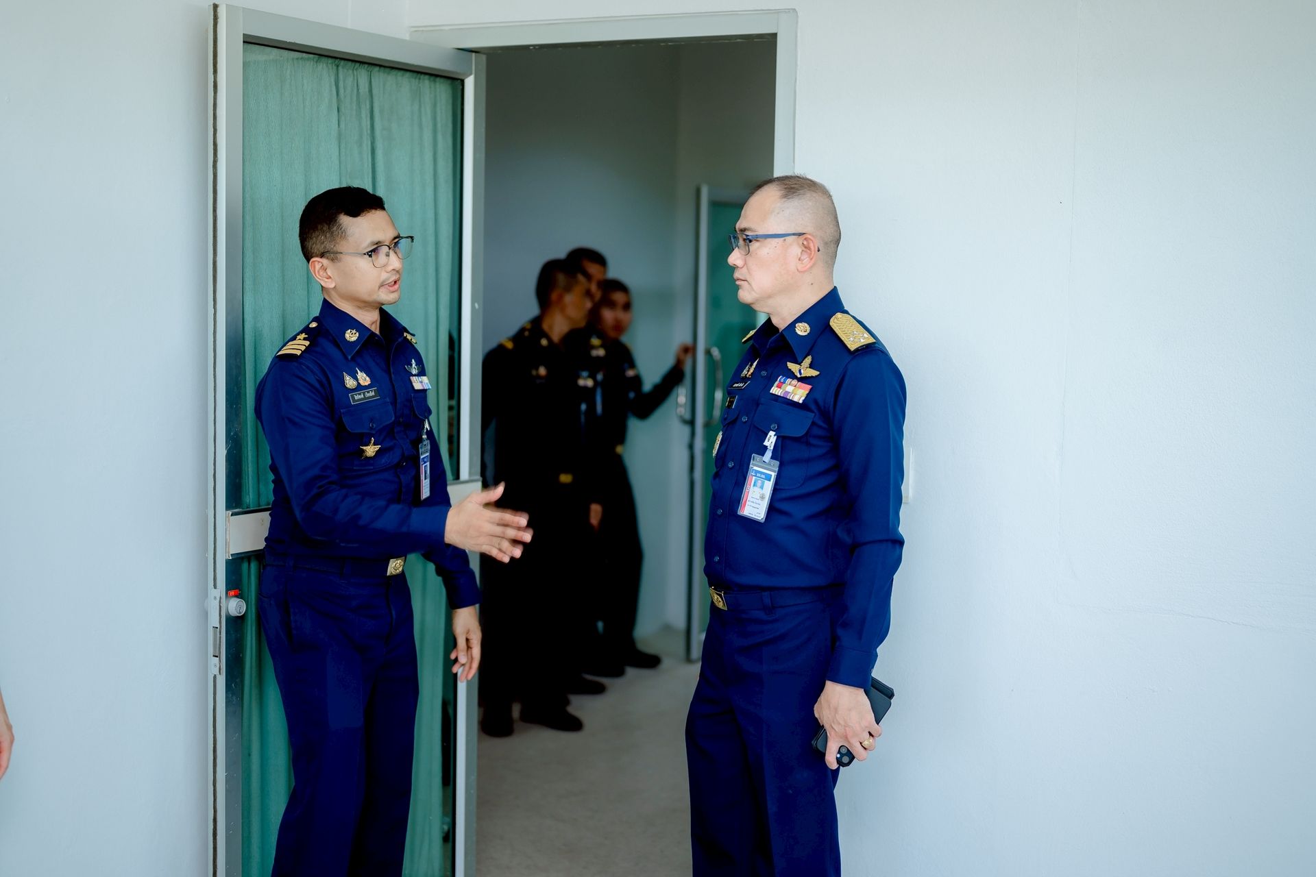 โอกาสนี้ นาวาอากาศเอก ศุภวัจน์ จิตรมนตรี ผู้บังคับการกองบิน ๗ พร้อมด้วย รองผู้บังคับการกองบิน ๗ และหัวหน่วยขึ้นตรง กองบิน ๗ ร่วมให้การต้อนรับ ณ ท่าอากาศยานทหาร กองบิน ๗ และรับฟังบรรยายสรุปความก้าวหน้าของโครงการฯ เมื่อวันที่ ๔ พฤศจิกายน พ.ศ.๒๕๖๘ ณ ห้องประชุมอาคารปฏิบัติการร่วม กองบิน ๗ ตำบลมะลวน อำเภอพุนพิน จังหวัดสุราษฎร์ธานี