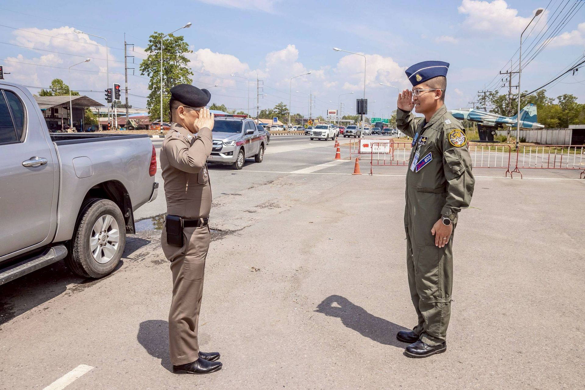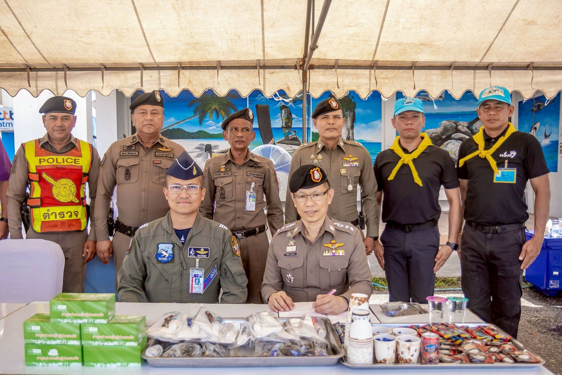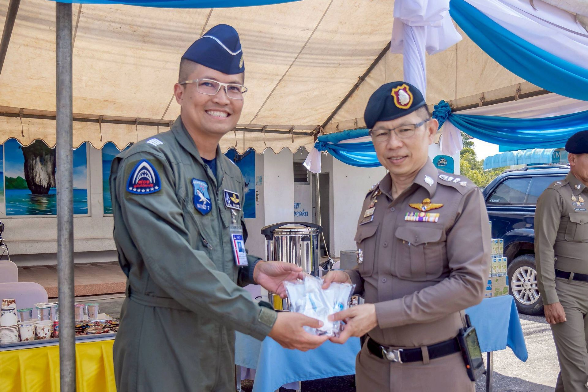โอกาสนี้ นาวาอากาศเอก ศุภวัจน์ จิตรมนตรี ผู้บังคับการกองบิน ๗ มอบหมายให้ นาวาอากาศเอก เฉลิมชัย ชำนาญยนต์ รองผู้บังคับการกองบิน ๗ จิตอาสา 904 จิตอาสาพระราชทานสังกัดกองบิน ๗ และเจ้าหน้าที่ประจำจุดให้บริการฯ ร่วมให้การต้อนรับ ณ บริเวณด้านหน้าช่องทางหลัก กองบิน ๗ ตำบลมะลวน อำเภอพุนพิน จังหวัดสุราษฎร์ธานี เมื่อวันที่ ๑๕ เมษายน พ.ศ. ๒๕๖๙