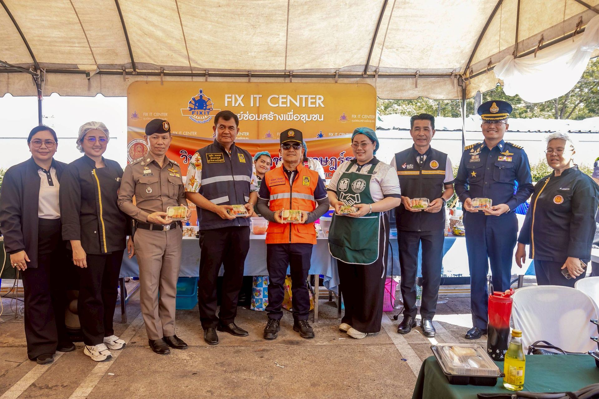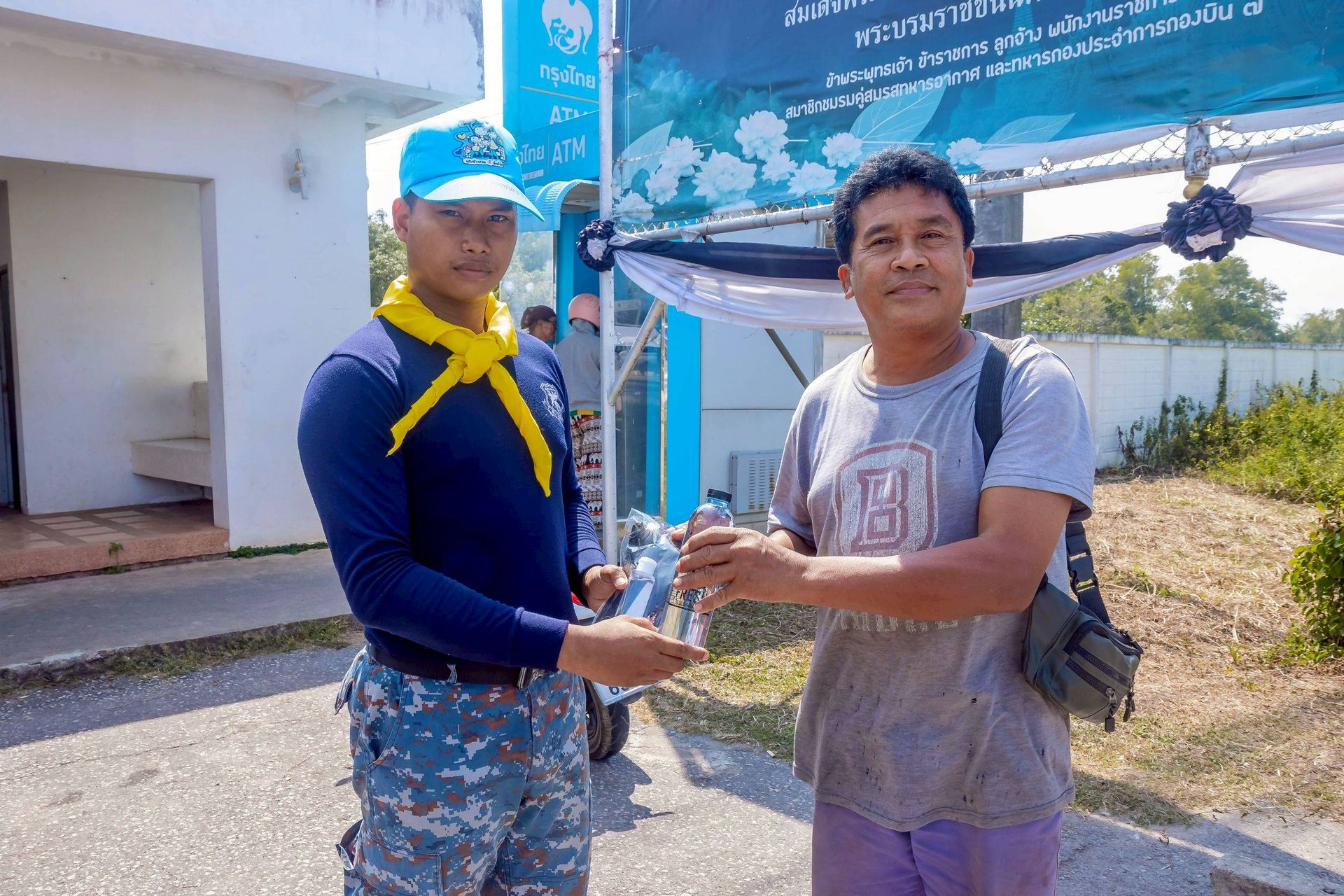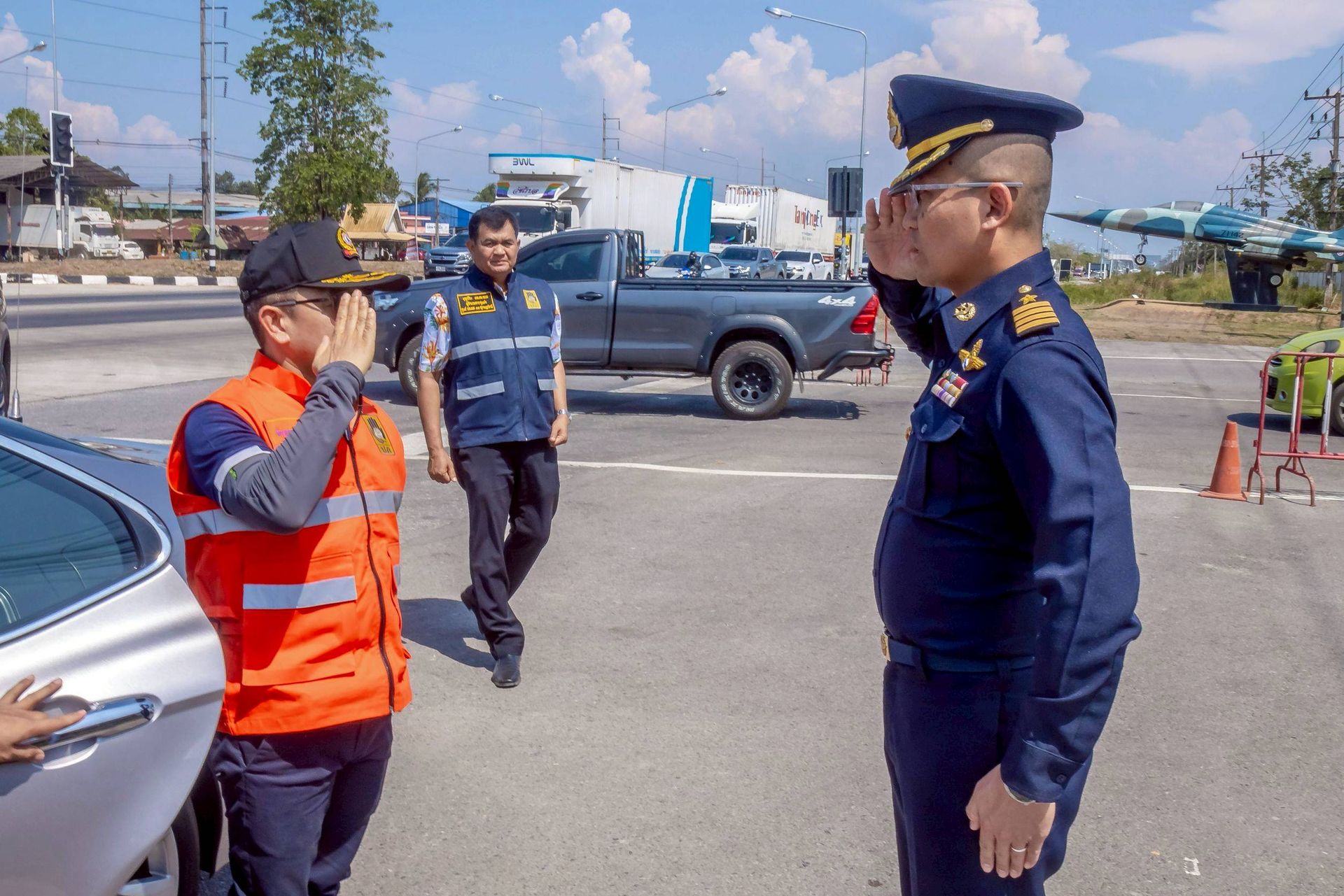 โอกาสนี้ นาวาอากาศเอก ศุภวัจน์ จิตรมนตรี ผู้บังคับการกองบิน ๗ มอบหมายให้ นาวาอากาศเอก เฉลิมชัย ชำนาญยนต์ รองผู้บังคับการกองบิน ๗ จิตอาสา 904 จิตอาสาพระราชทานสังกัดกองบิน ๗ และเจ้าหน้าที่ประจำจุดให้บริการฯ ณ บริเวณด้านหน้าช่องทางหลัก กองบิน ๗ ตำบลมะลวน อำเภอพุนพิน จังหวัดสุราษฎร์ธานี ตลอดจนเข้าร่วมรับการตรวจจุดบริการประชาชน ของวิทยาลัยสารพัดช่างสุราษฎร์ธานี ณ บริเวณสถานีบริการเชื้อเพลิงสวัสดิการ กองบิน ๗ ตำบลมะลวน อำเภอพุนพิน จังหวัดสุราษฎร์ธานี เมื่อวันที่ ๑๐ เมษายน พ.ศ. ๒๕๖๙