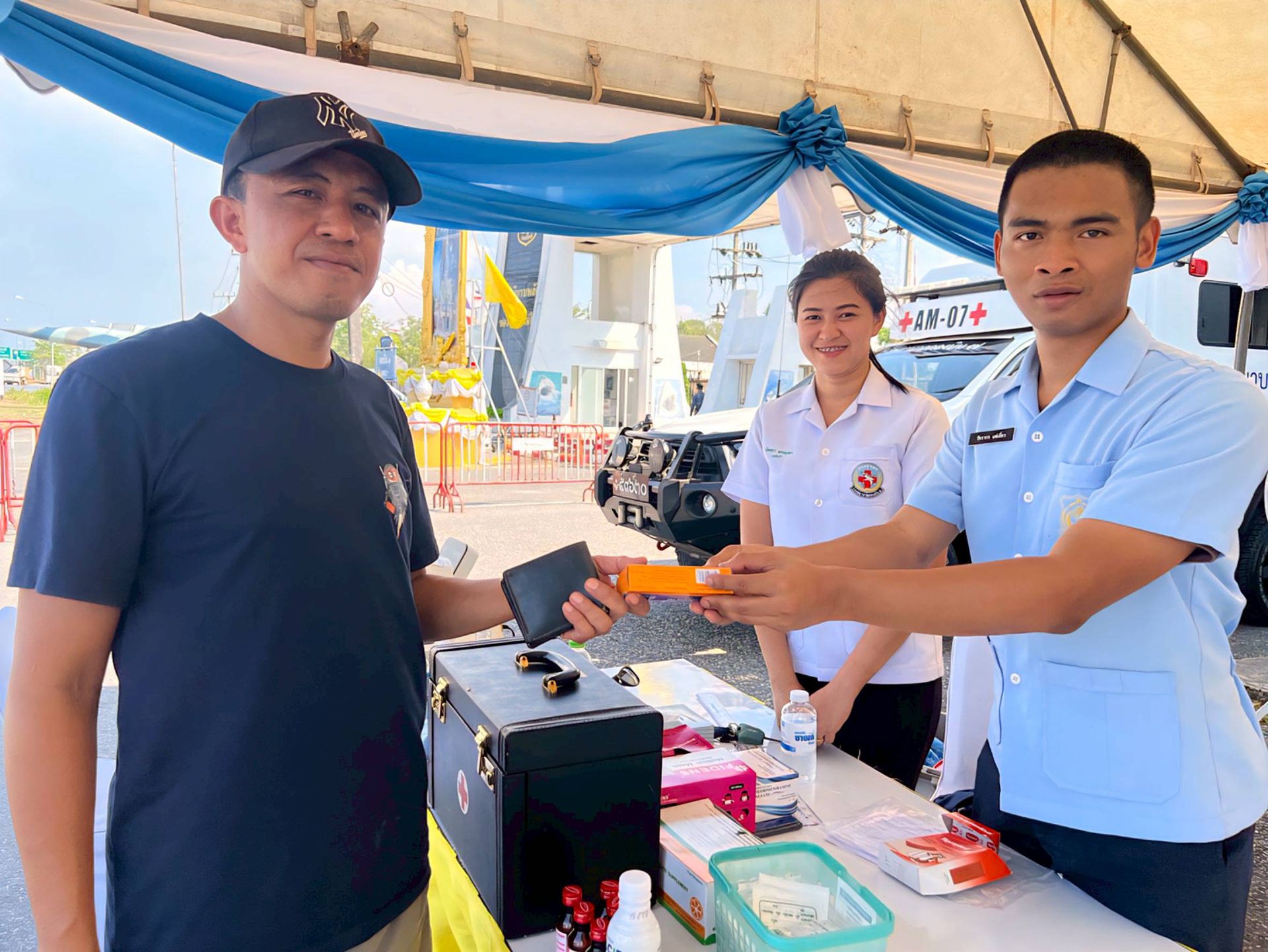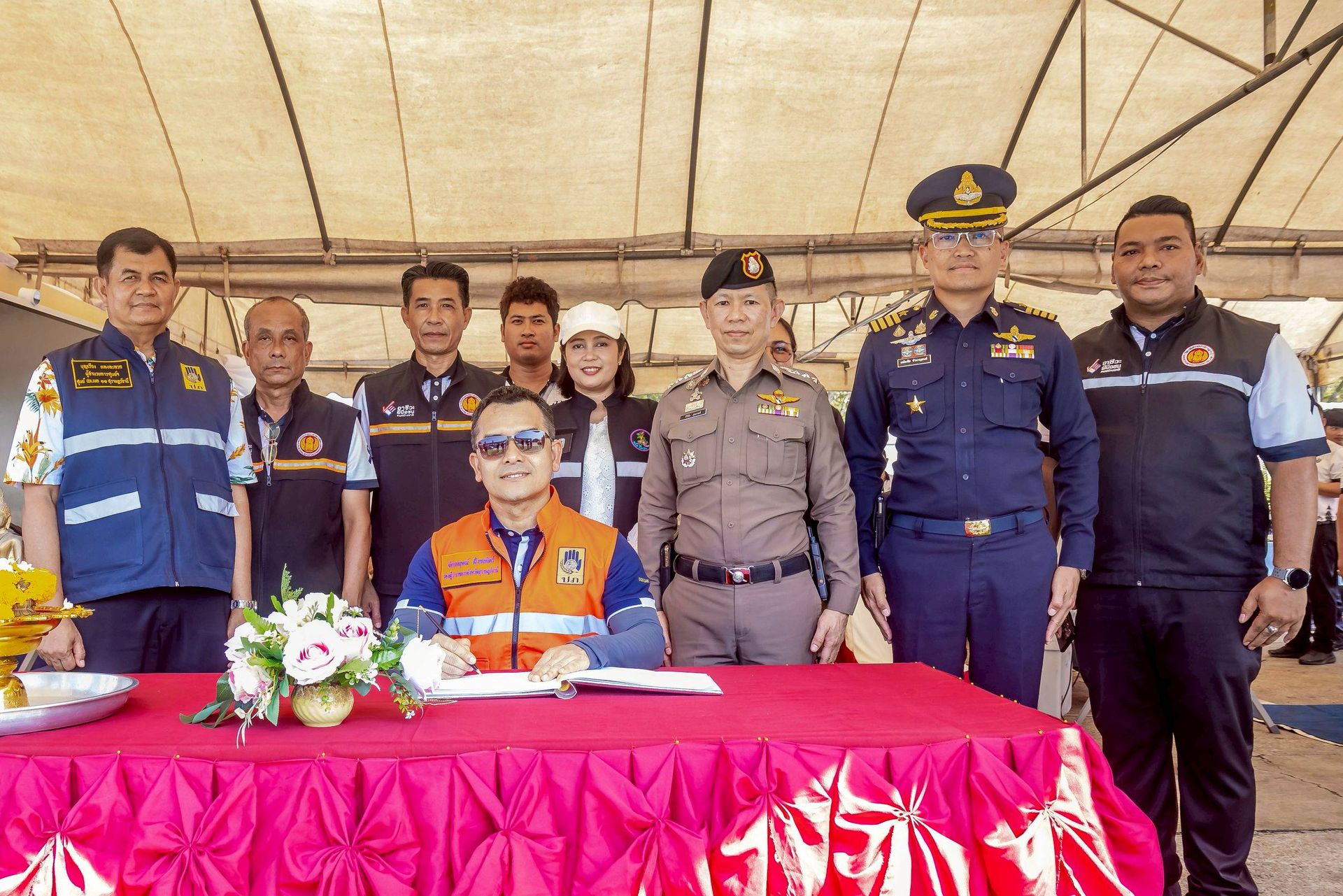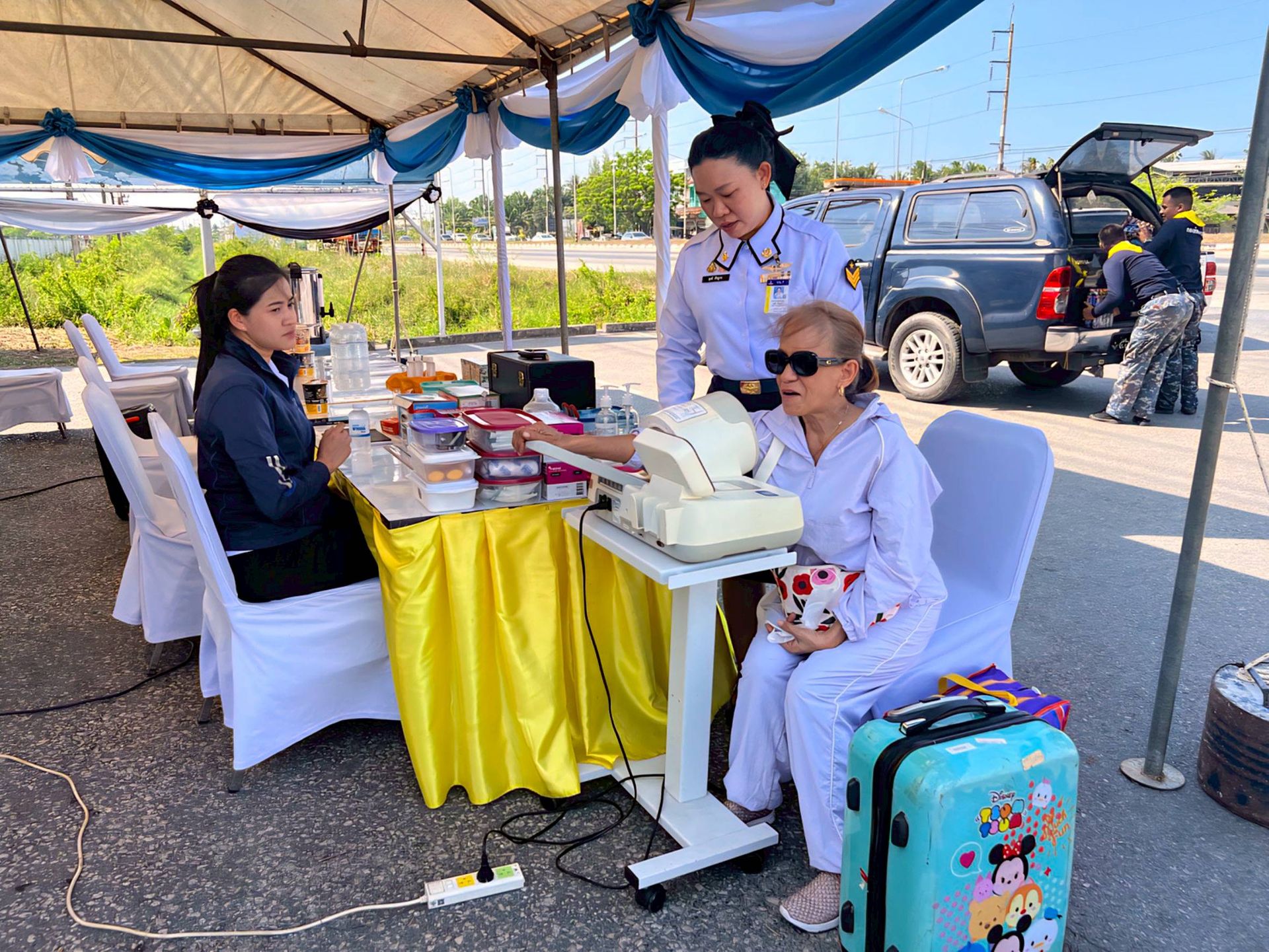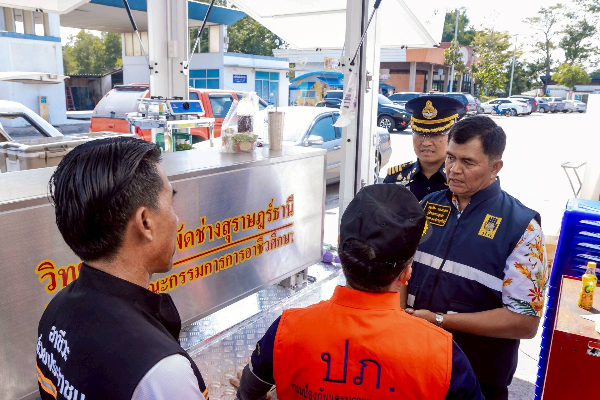 นายจักรกฤษณ์ ฝั่งชลจิตร์ รองผู้ว่าราชการจังหวัดสุราษฎร์ธานี และคณะ เดินทางมาตรวจเยี่ยมและให้กำลังใจเจ้าหน้าที่ซึ่งปฏิบัติงานประจำจุดให้บริการพี่น้องประชาชน ช่วงเทศกาลสงกรานต์ ประจำปี ๒๕๖๙ พร้อมทั้งมอบเครื่องดื่มสำหรับแจกจ่ายให้พี่น้องประชาชนที่เดินทางกลับภูมิลำเนา ตลอดจนเน้นย้ำในเรื่องการป้องกันและลดอุบัติเหตุทางถนน