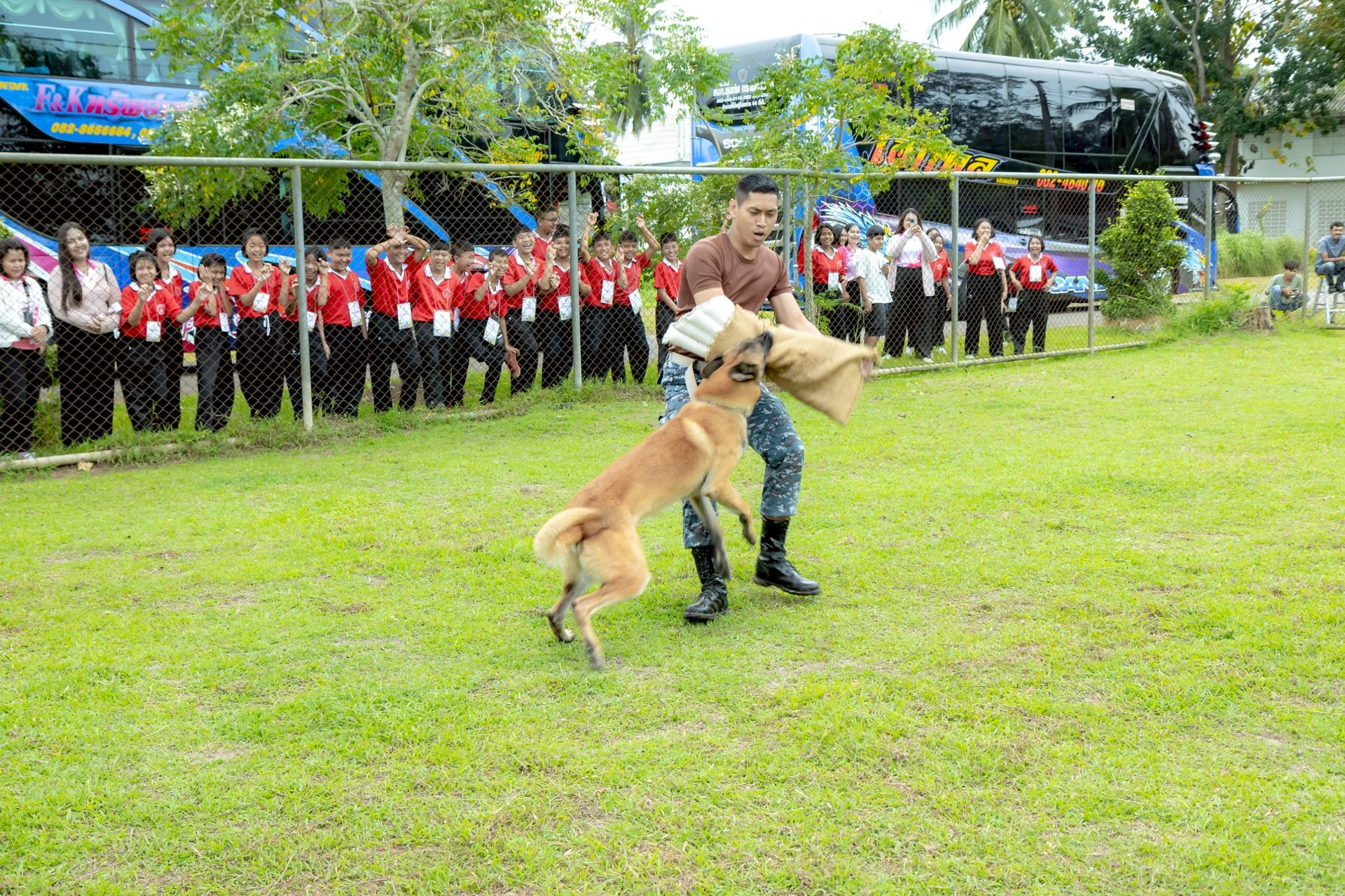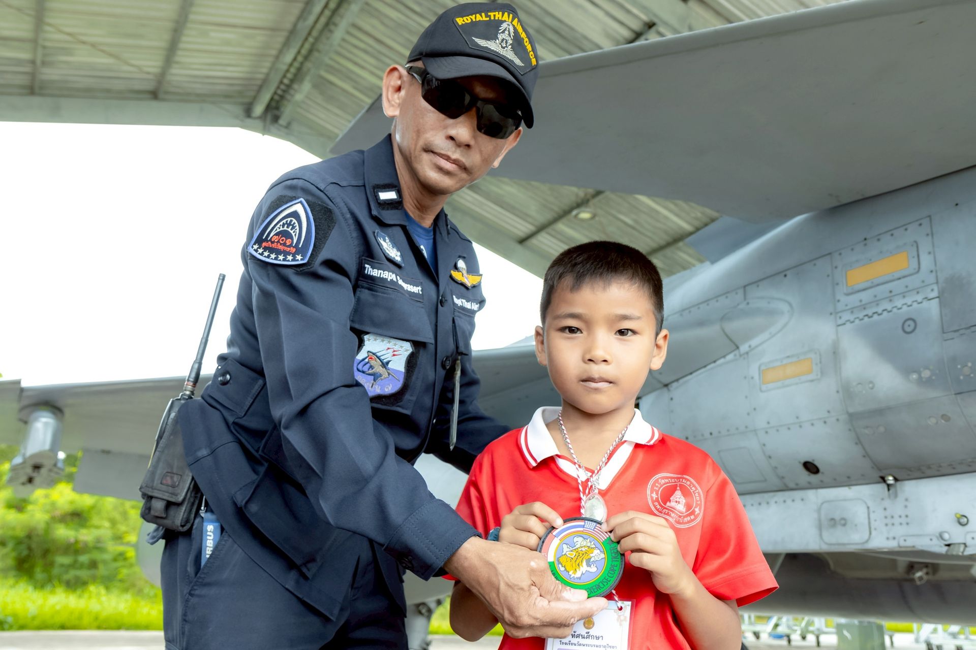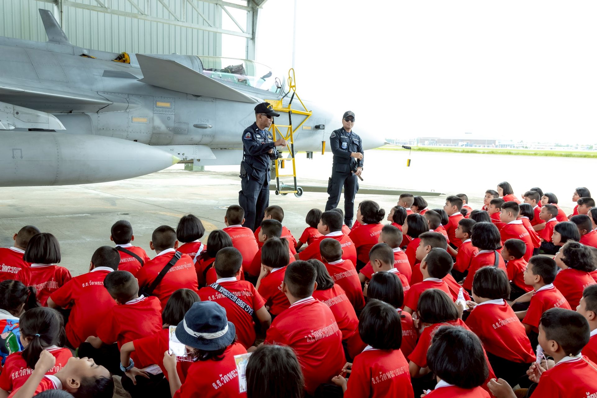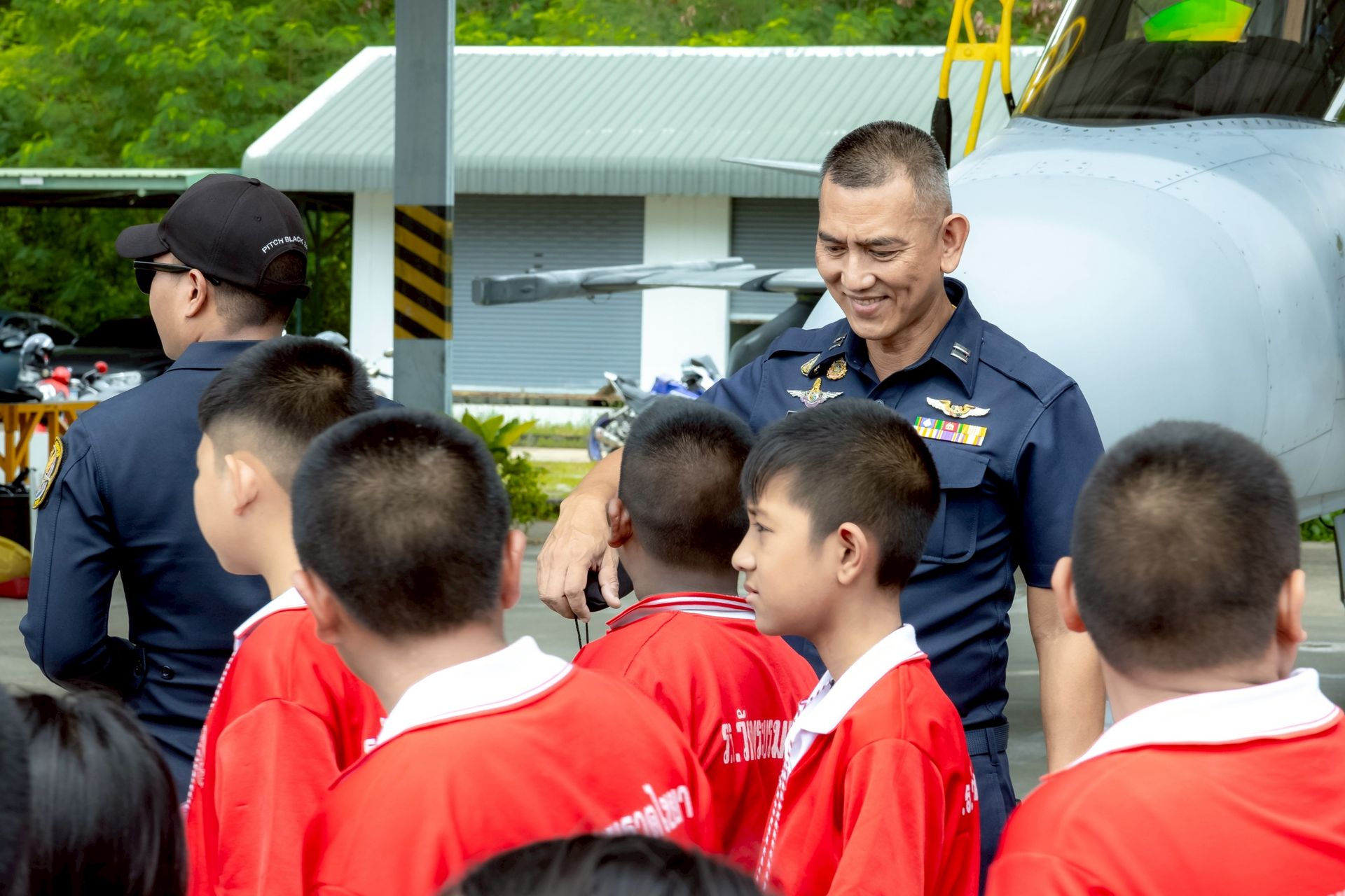 นาวาอากาศเอก ศุภวัจน์ จิตรมนตรี ผู้บังคับการกองบิน ๗ มอบหมายให้ แผนกกิจการพลเรือน กองบังคับการ กองบิน ๗ จัดกิจกรรมจิตอาสาพาน้องศึกษาแหล่งเรียนรู้ภายในกองบิน ๗ โดยได้นำคณะครู และนักเรียน จากโรงเรียนวัดพระบรมธาตุไชยา ตำบลเวียง อำเภอไชยา จังหวัดสุราษฎร์ธานี เข้าศึกษาแหล่งเรียนรู้นอกห้องเรียน เพื่อให้เด็กนักเรียนได้เห็นของจริง เกิดการเรียนรู้ เพิ่มพูนทักษะและประสบการณ์ตรง และสร้างแรงบันดาลใจในการเป็นทหารและเป็นอนาคตที่ดีของชาติต่อไป โดยชมการแสดงของสนุัขทหารและจัดตั้งแสดงอากาศยาน เมื่อวันที่ ๘ ตุลาคม พ.ศ.๒๕๖๘ ณ หน่วยที่ตั้ง กองบิน ๗ ตำบลมะลวน อำเภอพุนพิน จังหวัดสุราษฎร์ธานี