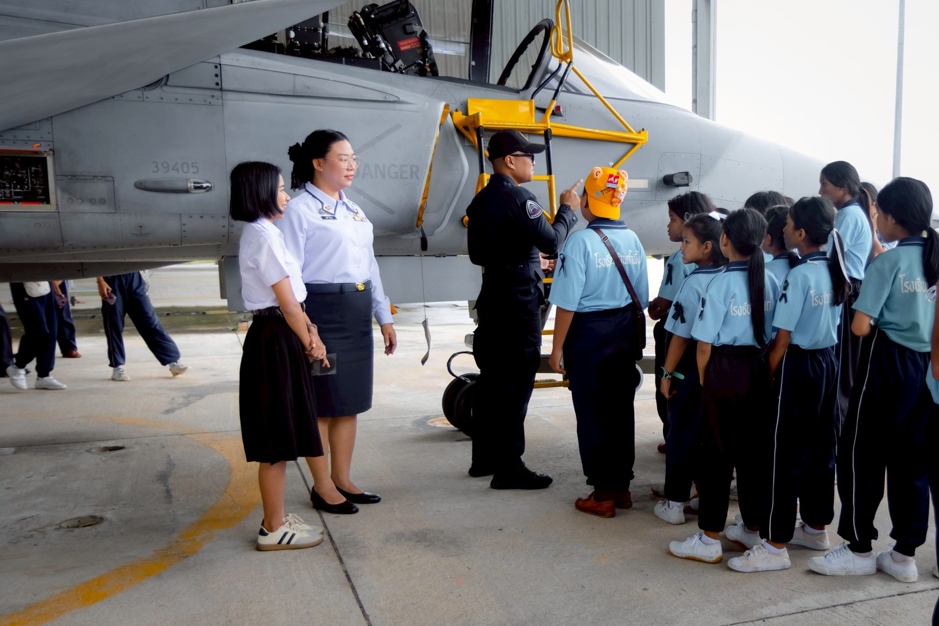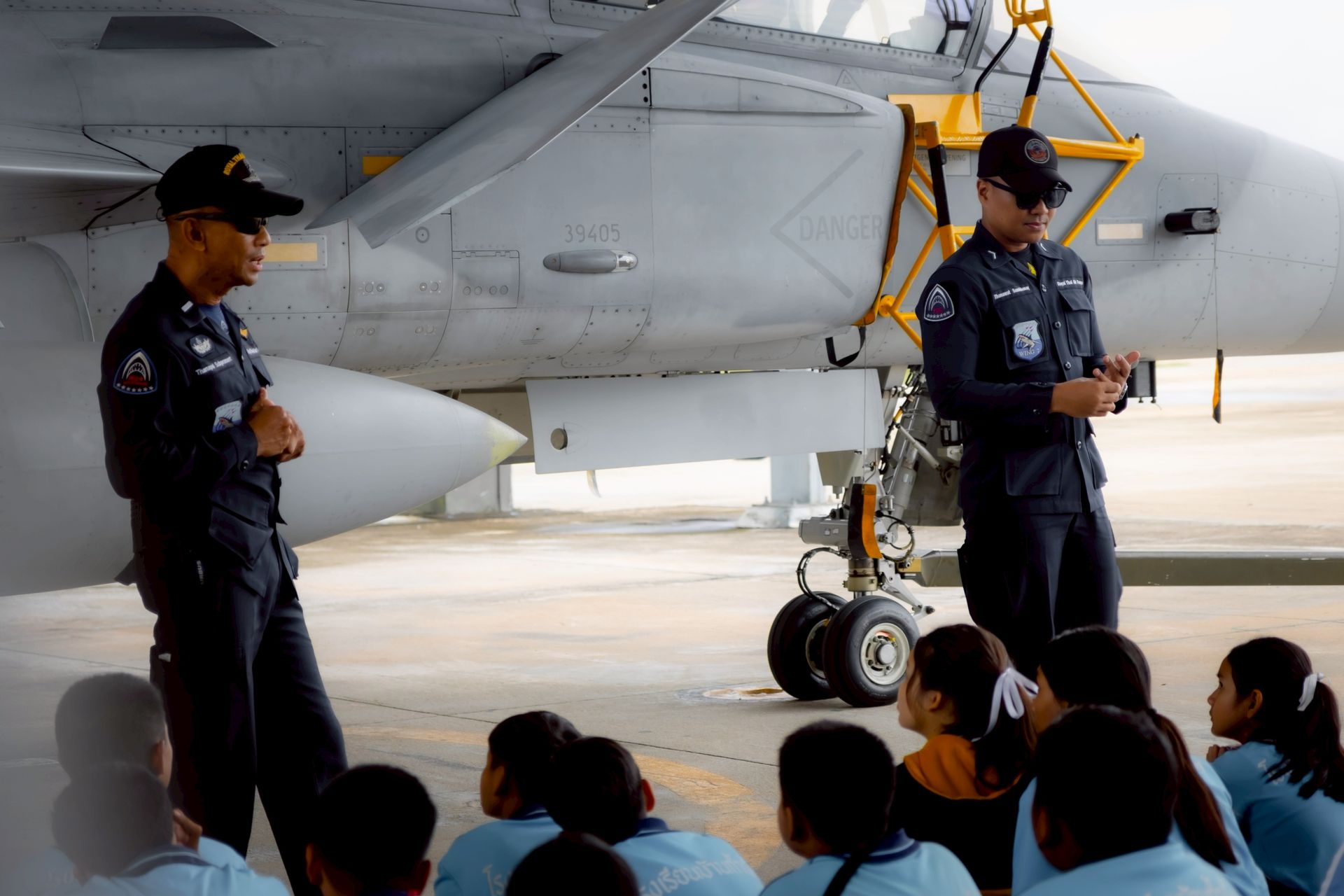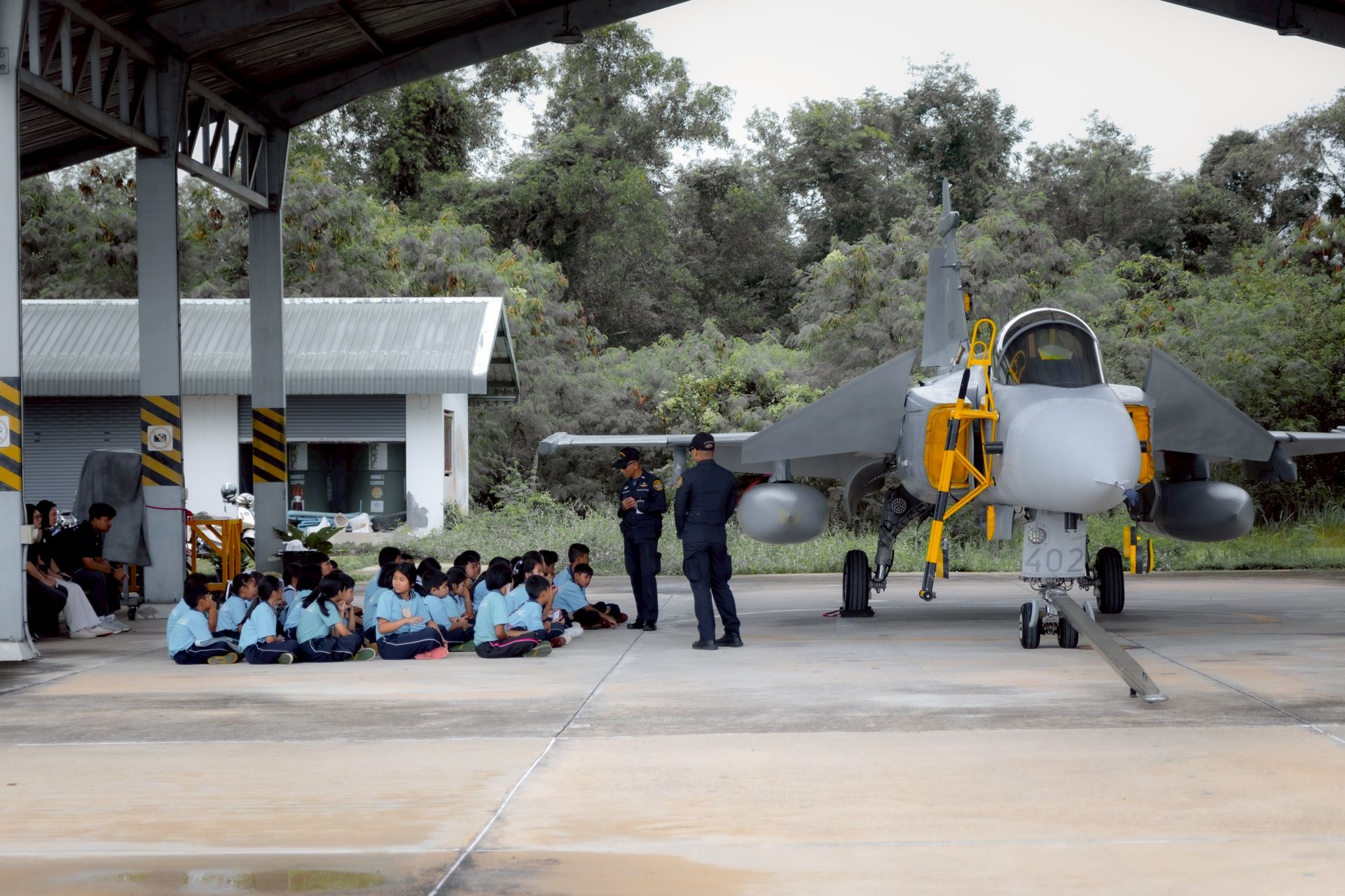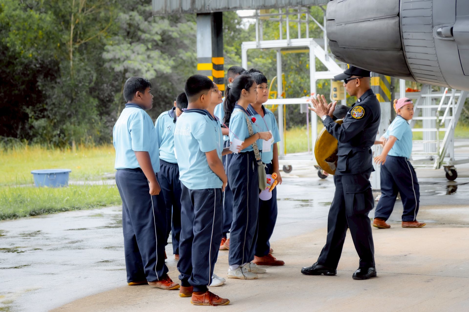นาวาอากาศเอก ศุภวัจน์ จิตรมนตรี ผู้บังคับการกองบิน ๗ มอบหมายให้ แผนกกิจการพลเรือน กองบังคับการ กองบิน ๗ จัดกิจกรรมจิตอาสาพาน้องศึกษาแหล่งเรียนรู้ภายในกองบิน ๗ โดยได้นำคณะครู และนักเรียน โรงเรียนบ้านถ้ำผึ้ง หมู่ที่ ๕ ตำบลต้นยวน อำเภอพนม จังหวัดสุราษฎร์ธานี เข้าศึกษาแหล่งเรียนรู้นอกห้องเรียน เพื่อให้เด็กนักเรียนได้เห็นของจริง เกิดการเรียนรู้ เพิ่มพูนทักษะและประสบการณ์ตรง และสร้างแรงบันดาลใจในการเป็นทหารและเป็นอนาคตที่ดีของชาติต่อไป โดยชมการแสดงของสุนัขทหาร และจัดตั้งแสดงอากาศยาน เมื่อวันที่ ๑๘ พฤศจิกายน พ.ศ.๒๕๖๘ ณ หน่วยที่ตั้ง กองบิน ๗ ตำบลมะลวน อำเภอพุนพิน จังหวัดสุราษฎร์ธานี