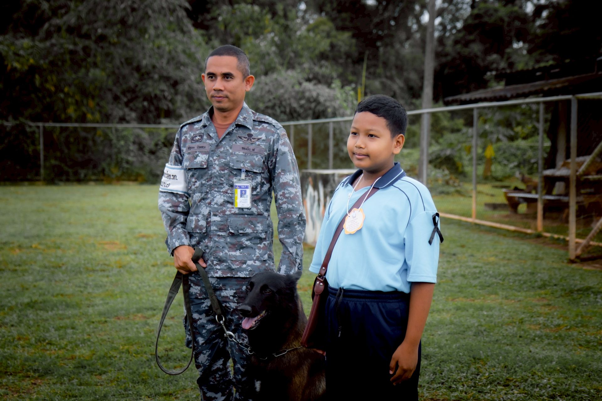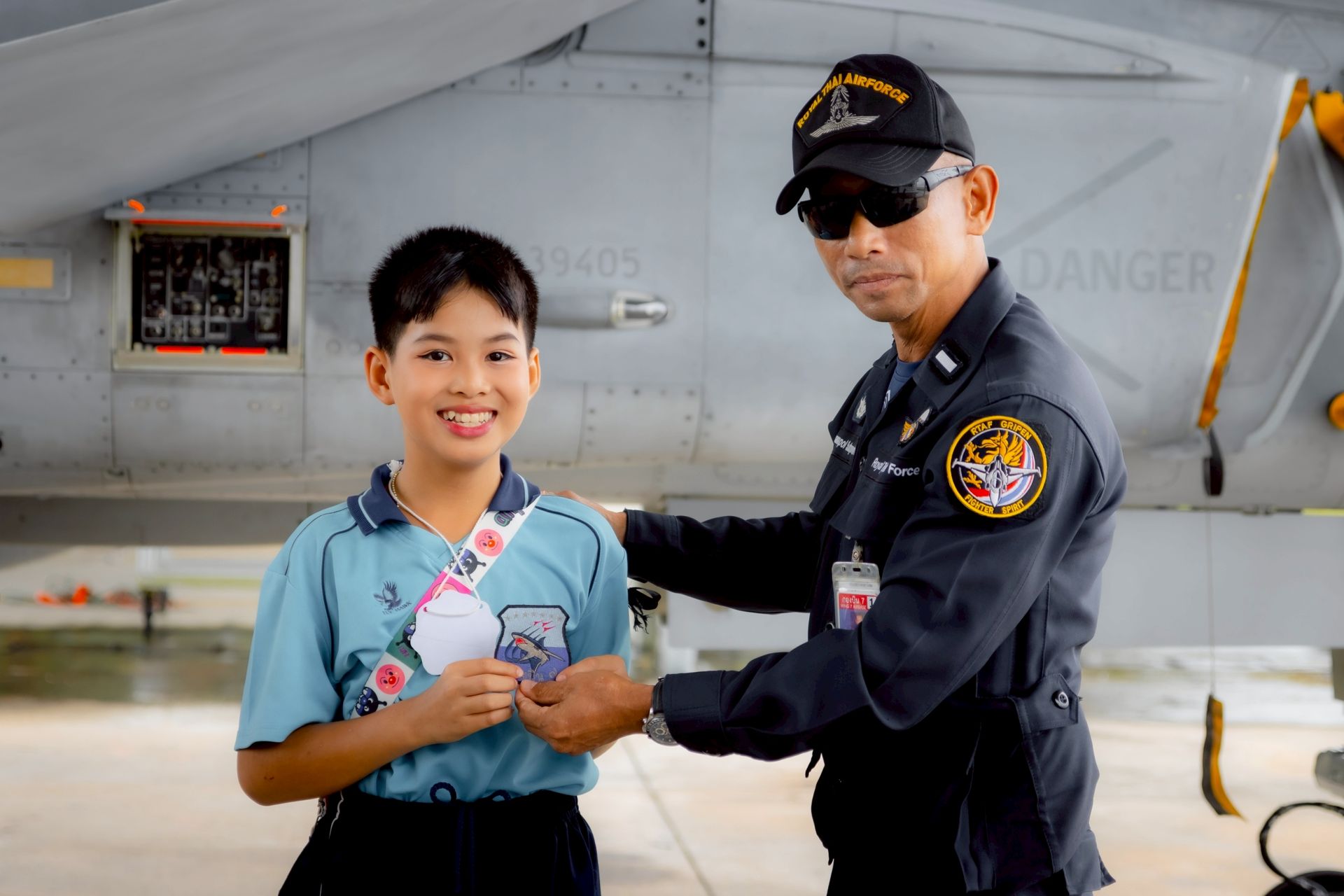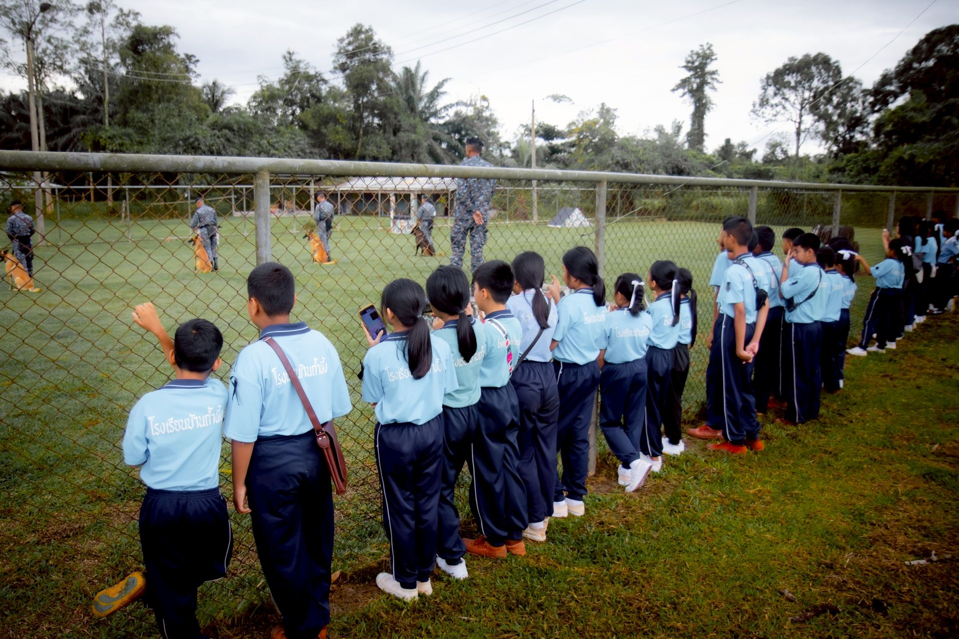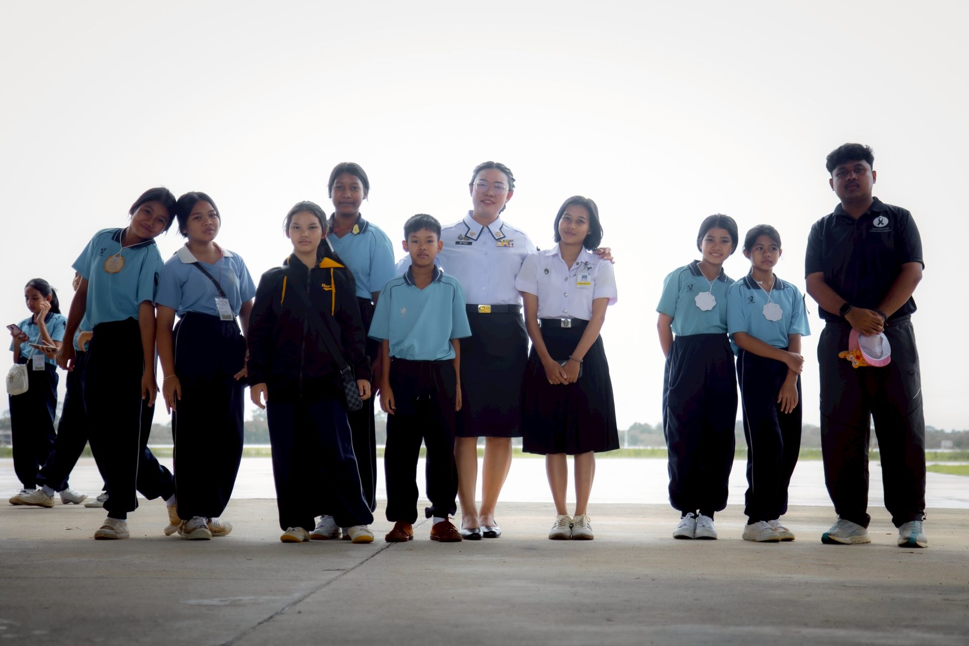 นาวาอากาศเอก ศุภวัจน์ จิตรมนตรี ผู้บังคับการกองบิน ๗ มอบหมายให้ แผนกกิจการพลเรือน กองบังคับการ กองบิน ๗ จัดกิจกรรมจิตอาสาพาน้องศึกษาแหล่งเรียนรู้ภายในกองบิน ๗ โดยได้นำคณะครู และนักเรียน โรงเรียนบ้านถ้ำผึ้ง หมู่ที่ ๕ ตำบลต้นยวน อำเภอพนม จังหวัดสุราษฎร์ธานี เข้าศึกษาแหล่งเรียนรู้นอกห้องเรียน เพื่อให้เด็กนักเรียนได้เห็นของจริง เกิดการเรียนรู้ เพิ่มพูนทักษะและประสบการณ์ตรง และสร้างแรงบันดาลใจในการเป็นทหารและเป็นอนาคตที่ดีของชาติต่อไป โดยชมการแสดงของสุนัขทหาร และจัดตั้งแสดงอากาศยาน เมื่อวันที่ ๑๘ พฤศจิกายน พ.ศ.๒๕๖๘ ณ หน่วยที่ตั้ง กองบิน ๗ ตำบลมะลวน อำเภอพุนพิน จังหวัดสุราษฎร์ธานี