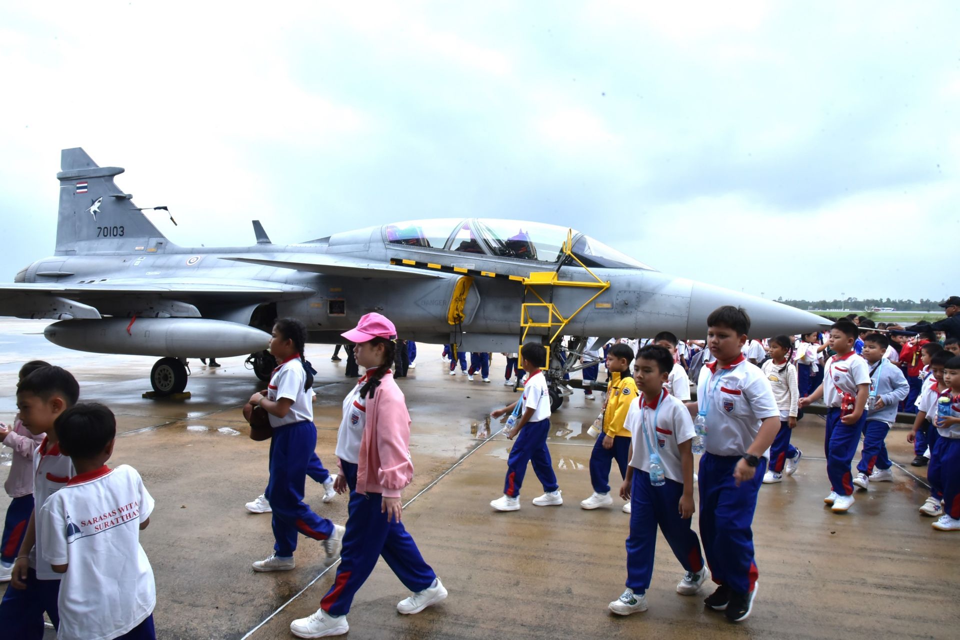 นาวาอากาศเอก ศุภวัจน์ จิตรมนตรี ผู้บังคับการกองบิน ๗ มอบหมายให้ แผนกกิจการพลเรือน กองบังคับการ กองบิน ๗ จัดกิจกรรมจิตอาสาพาน้องศึกษาแหล่งเรียนรู้ภายในกองบิน ๗ โดยได้นำคณะครู และนักเรียนจากโรงเรียนวัดนิลาราม ตำบลบ้านยาง อำเภอคีรีรัฐนิคม และโรงเรียนสารสาสน์วิเทศสุราษฎร์ธานี ตำบลช้างขวา อำเภอกาญจนดิษฐ์ จังหวัดสุราษฎร์ธานี เข้าศึกษาแหล่งเรียนรู้นอกห้องเรียน เพื่อให้เด็กนักเรียนได้เห็นของจริง เกิดการเรียนรู้ เพิ่มพูนทักษะและประสบการณ์ตรง และสร้างแรงบันดาลใจในการเป็นทหารและเป็นอนาคตที่ดีของชาติต่อไป โดยชมการจัดตั้งแสดงอากาศยาน เมื่อวันที่ ๒๕ พฤศจิกายน พ.ศ.๒๕๖๘ ณ หน่วยที่ตั้ง กองบิน ๗ ตำบลมะลวน อำเภอพุนพิน จังหวัดสุราษฎร์ธานี