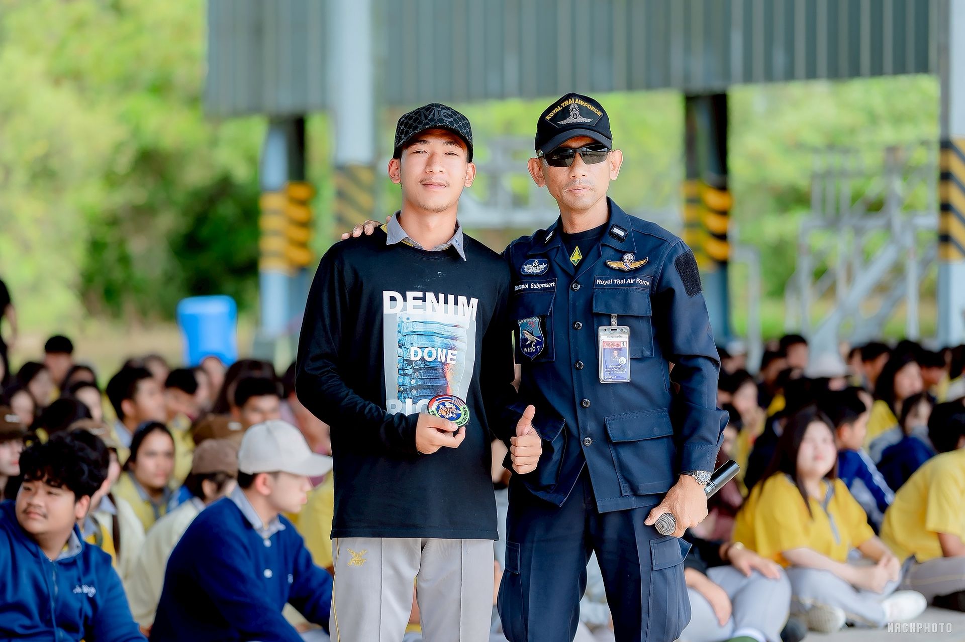 นาวาอากาศเอก ศุภวัจน์ จิตรมนตรี ผู้บังคับการกองบิน ๗ มอบหมายให้ แผนกกิจการพลเรือน กองบังคับการ กองบิน ๗ จัดกิจกรรมจิตอาสาพาน้องศึกษาแหล่งเรียนรู้ภายในกองบิน ๗ โดยได้นำคณะครู และนักเรียน โรงเรียนคลองท่อมราษฎร์รังสรรค์ อำเภอคลองท่อม จังหวัดกระบี่ เข้าศึกษาแหล่งเรียนรู้นอกห้องเรียน เพื่อให้เด็กนักเรียนได้เห็นของจริง เกิดการเรียนรู้ เพิ่มพูนทักษะ และประสบการณ์ตรง สร้างแรงบันดาลใจในการเป็นทหารและเป็นอนาคตที่ดีของชาติต่อไป เมื่อวันที่ ๒๐ มกราคม พ.ศ.๒๕๖๙ ณ กองบิน ๗ ตำบลมะลวน อำเภอพุนพิน จังหวัดสุราษฎร์ธานี