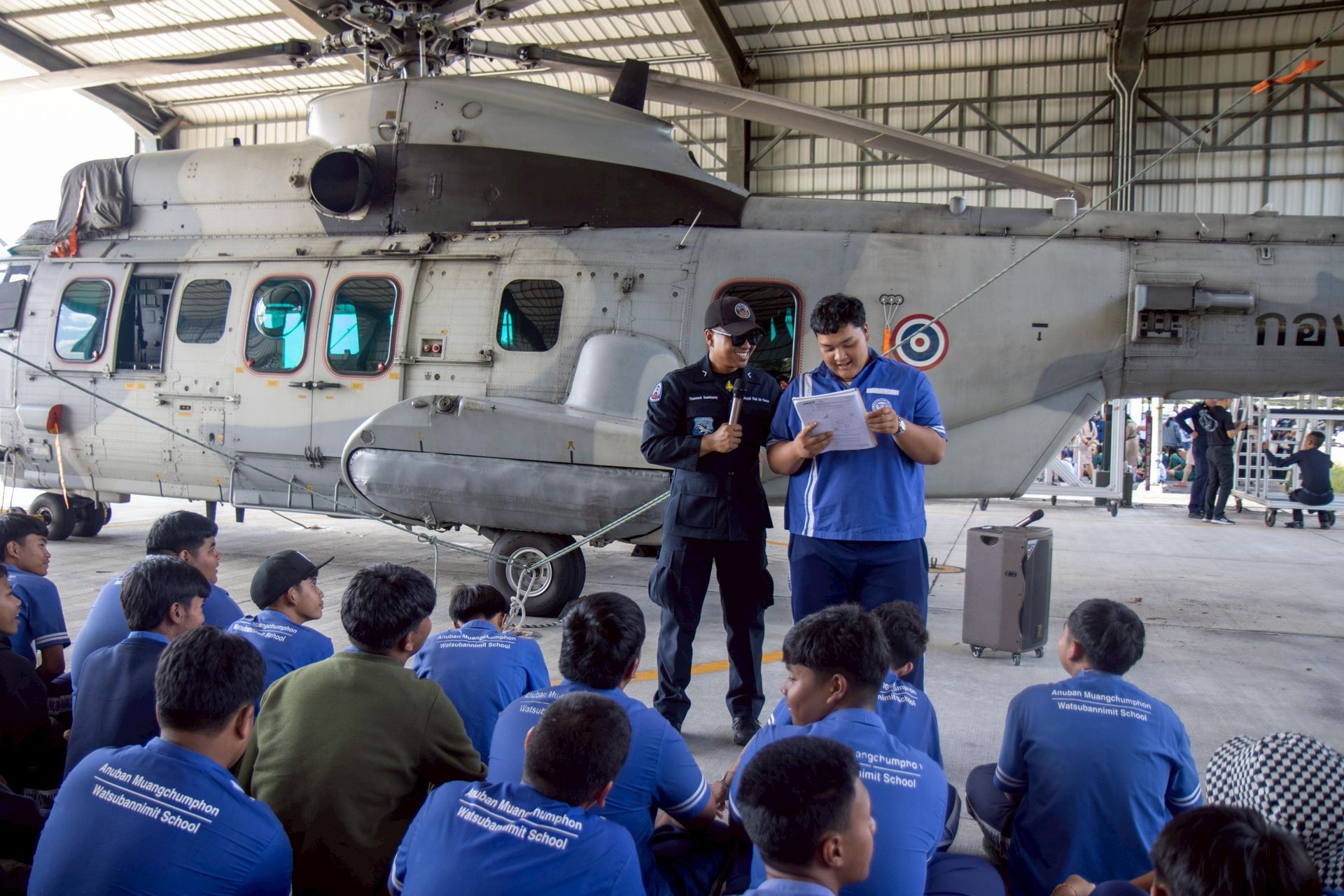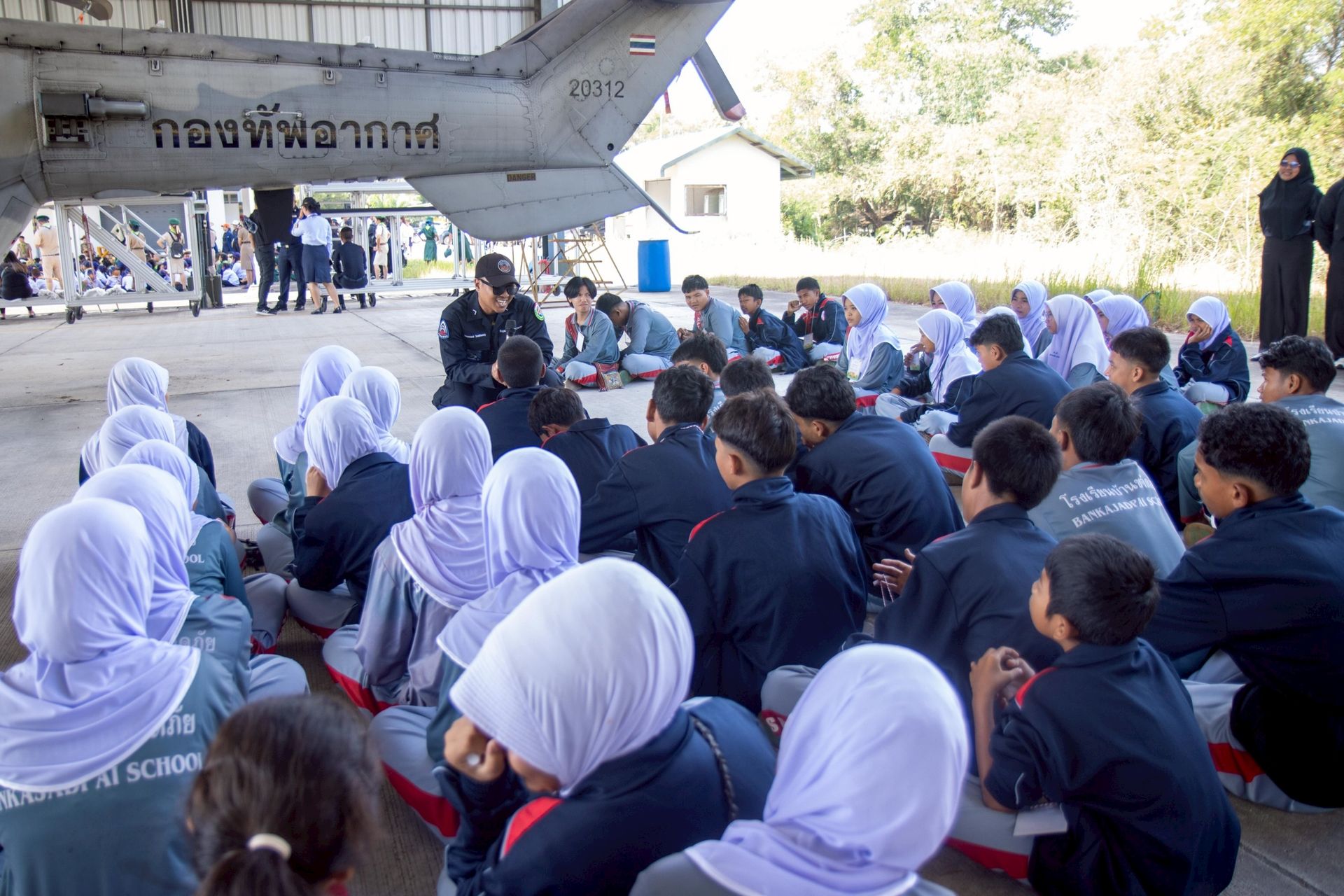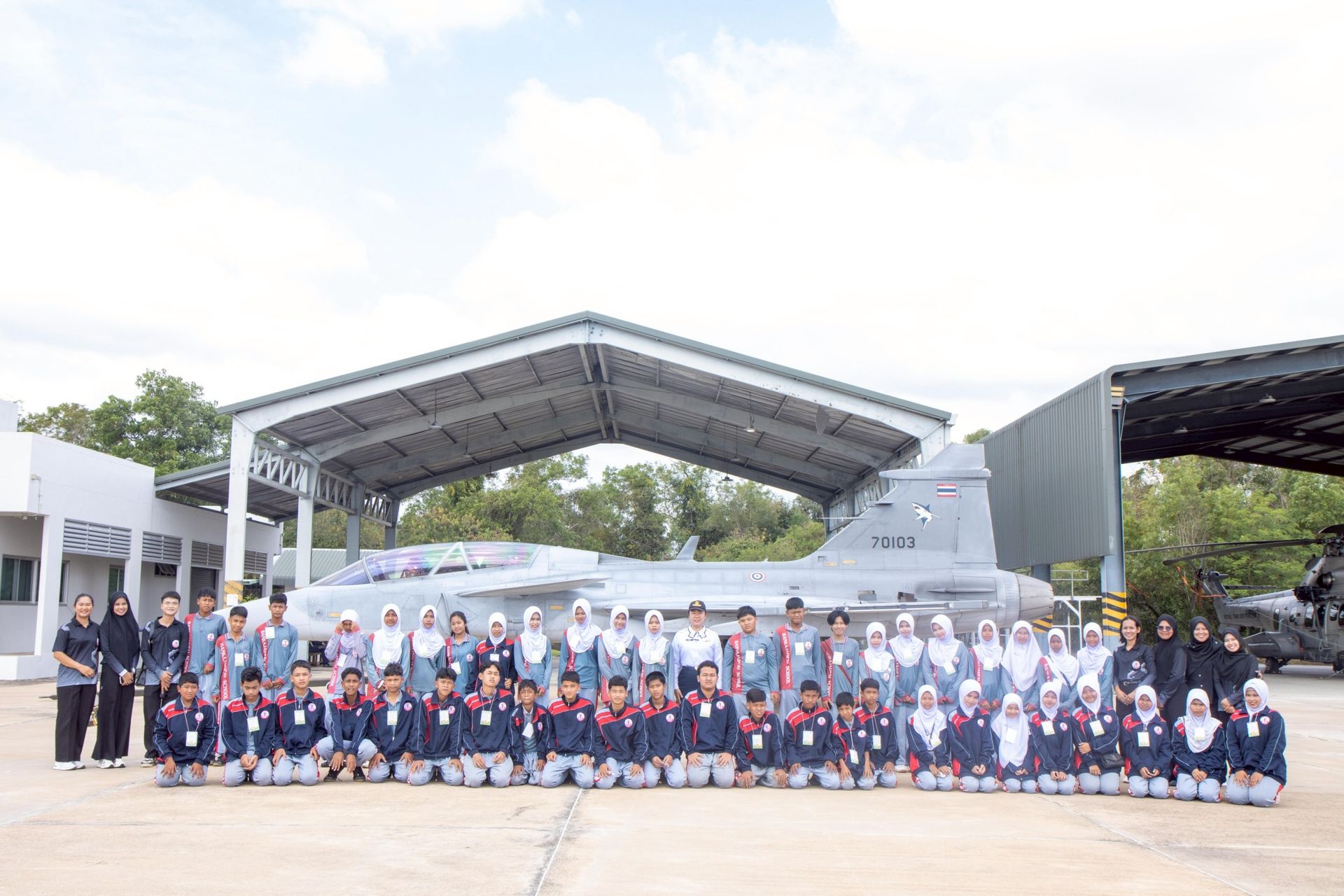 นาวาอากาศเอก ศุภวัจน์ จิตรมนตรี ผู้บังคับการกองบิน ๗ มอบหมายให้ แผนกกิจการพลเรือน กองบังคับการ กองบิน ๗ จัดกิจกรรมเปิดบ้านพาน้องศึกษาแหล่งเรียนรู้ภายในกองบิน ๗ โดยได้นำคณะครู และนักเรียนจาก โรงเรียนอนุบาลเมืองชุมพรวัดสุบรรณนิมิตร ตำบลตากแดด อำเภอเมือง จังหวัดชุมพร โรงเรียนวัดบางคราม ตำบลปากฉลุย อำเภอท่าฉาง จังหวัดสุราษฎร์ธานี โรงเรียนวัดประตูใหญ่ ตำบลเสวียด อำเภอท่าฉาง จังหวัดสุราษฎร์ธานี โรงเรียนชุมชนวัดจันทาราม อำเภอท่าฉาง จังหวัดสุราษฎร์ธานี โรงเรียนขจัดภัย ตำบลราชกรูด อำเภอเมือง จังหวัดระนอง และศูนย์พัฒนาเด็กเล็กเทศบาลเมืองเวียงสระ สังกัดเทศบาลเมืองเวียงสระ ตำบลเวียงสระ อำเภอเวียงสระ จังหวัดสุราษฎร์ธานี เข้าศึกษาแหล่งเรียนรู้นอกห้องเรียน เพื่อให้เด็กนักเรียนได้เห็นของจริง เกิดการเรียนรู้ เพิ่มพูนทักษะ และประสบการณ์ตรง สร้างแรงบันดาลใจในการเป็นทหารและเป็นอนาคตที่ดีของชาติต่อไป เมื่อวันที่ ๑๒ กุมภาพันธ์ พ.ศ.๒๕๖๙ ณ กองบิน ๗ ตำบลมะลวน อำเภอพุนพิน จังหวัดสุราษฎร์ธานี