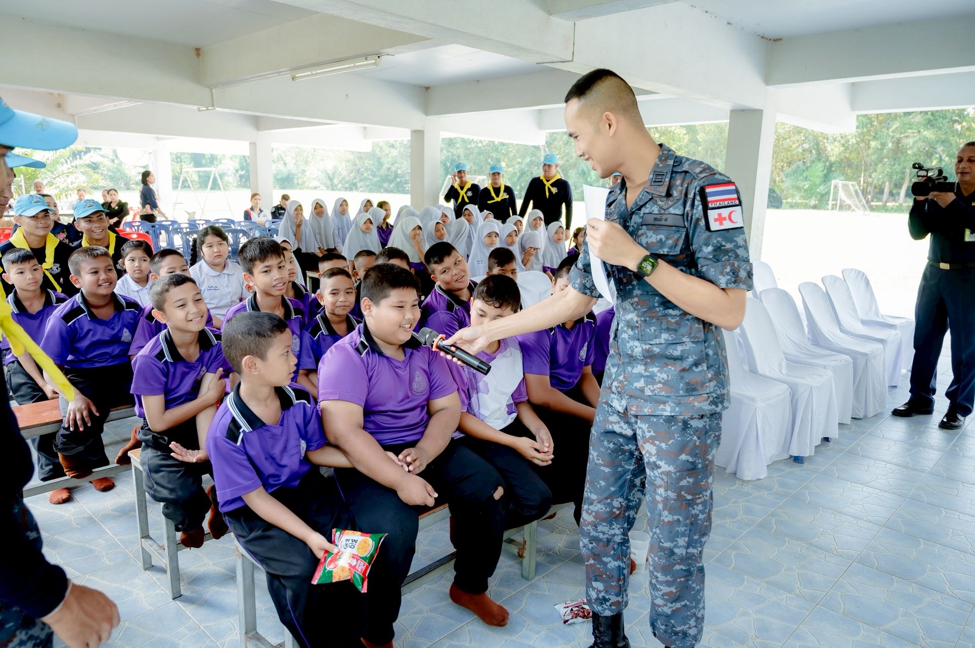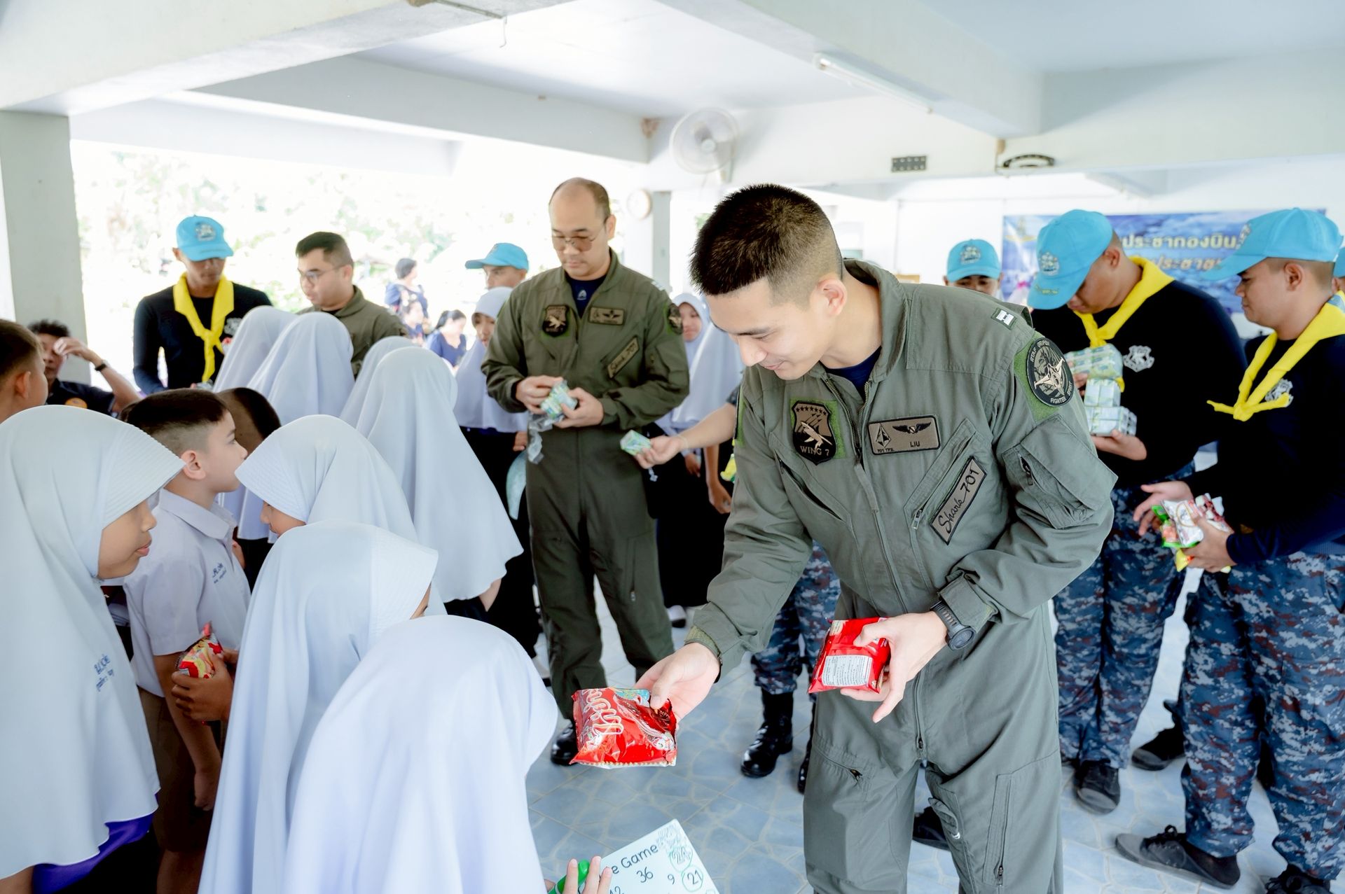 นาวาอากาศเอก ศุภวัจน์ จิตรมนตรี ผู้บังคับการกองบิน ๗ นำหน่วยมิตรประชา กองบิน ๗ ร่วมจัดกิจกรรมเสริมสร้างความร่วมมือของชุมชนเพื่อความมั่นคง ณ โรงเรียนบ้านหนองจอก ตำบลท่าสะท้อน อำเภอพุนพิน จังหวัดสุราษฎร์ธานี