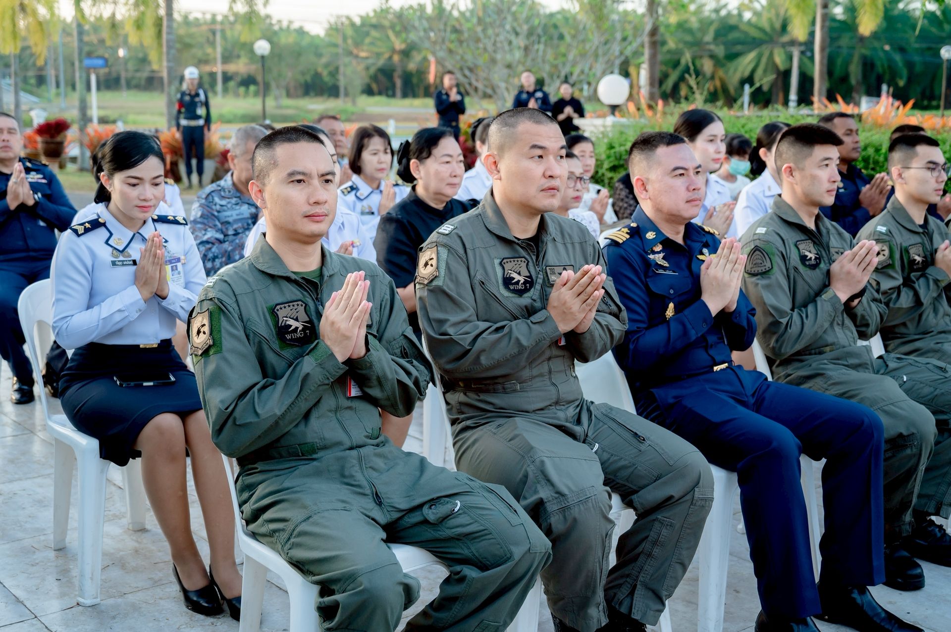 นาวาอากาศเอก ศุภวัจน์ จิตรมนตรี ผู้บังคับการกองบิน ๗ เป็นประธานในกิจกรรมทำบุญตักบาตรพระสงฆ์ ประจำเดือน กุมภาพันธ์ พ.ศ.๒๕๖๙ ซึ่งจะจัดกิจกรรมทุกวันพุธแรกของเดือน เพื่อสร้างขวัญและกำลังใจในการปฏิบัติราชการแก่กำลังพลกองบิน ๗ โดยมี รองผู้บังคับการกองบิน ๗ เสนาธิการกองบิน ๗ และหัวหน้าหน่วยขึ้นตรงกองบิน ๗ ข้าราชการ ลูกจ้าง พนักงานราชการ และครอบครัวกองบิน ๗ เข้าร่วมกิจกรรมฯ เมื่อวันที่ ๔ กุมภาพันธ์ พ.ศ.๒๕๖๙ ณ พุทธสถาน กองบิน ๗ ตำบลมะลวน อำเภอพุนพิน จังหวัดสุราษฎร์ธานี