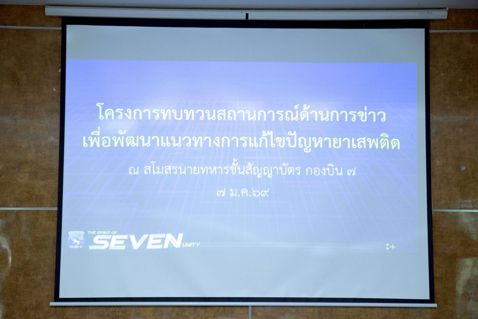 นาวาอากาศเอก ศุภวัจน์ จิตรมนตรี ผู้บังคับการกองบิน ๗ เป็นประธานในพิธีเปิดโครงการทบทวนสถานการณ์ด้านการข่าวเพื่อพัฒนาแนวทางการแก้ไขปัญหายาเสพติด วัตถุประสงค์ของการจัดอบรมในครั้งนี้ เป็นการทบทวนสถานการณ์ด้านการข่าวยาเสพติดในปัจจุบัน และพัฒนากลไกการประสานงานด้านการข่าวระหว่างกองบิน ๗ กับผู้นำชุมชนพื้นที่โดยรอบ และเครือข่ายข่าวภาคประชาชนกองบิน ๗ เพื่อให้บุคลากรที่เกี่ยวข้อง มีข้อมูลสถานการณ์ยาเสพติด มีความถูกต้อง ครอบคลุม และเชื่อมโยงกัน และเพิ่มความเข้มแข็งของเครือข่ายความร่วมมือทุกระดับให้กับบุคลากรที่เกี่ยวข้องกับการดำเนินงานป้องกันและแก้ไขปัญหายาเสพติด
