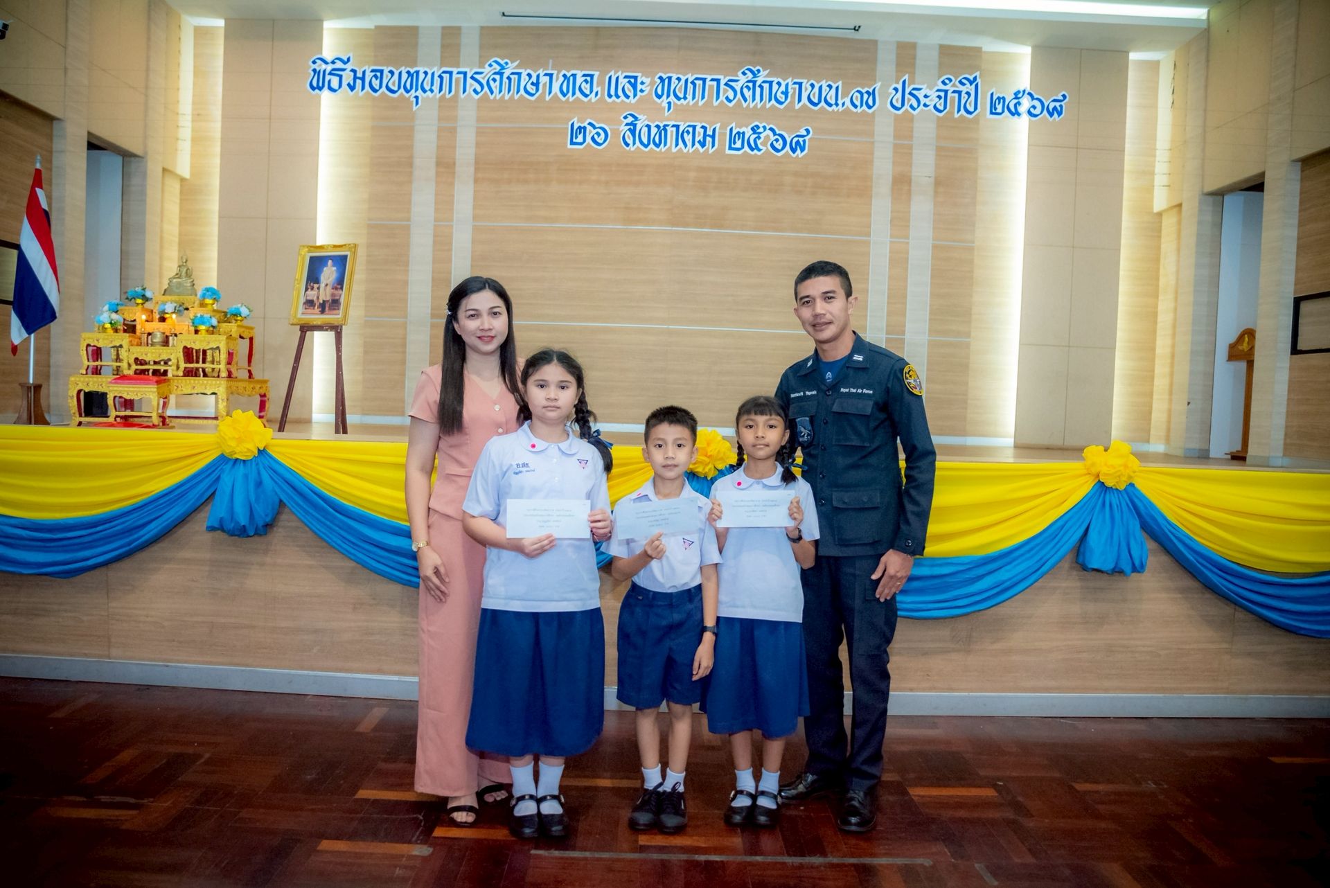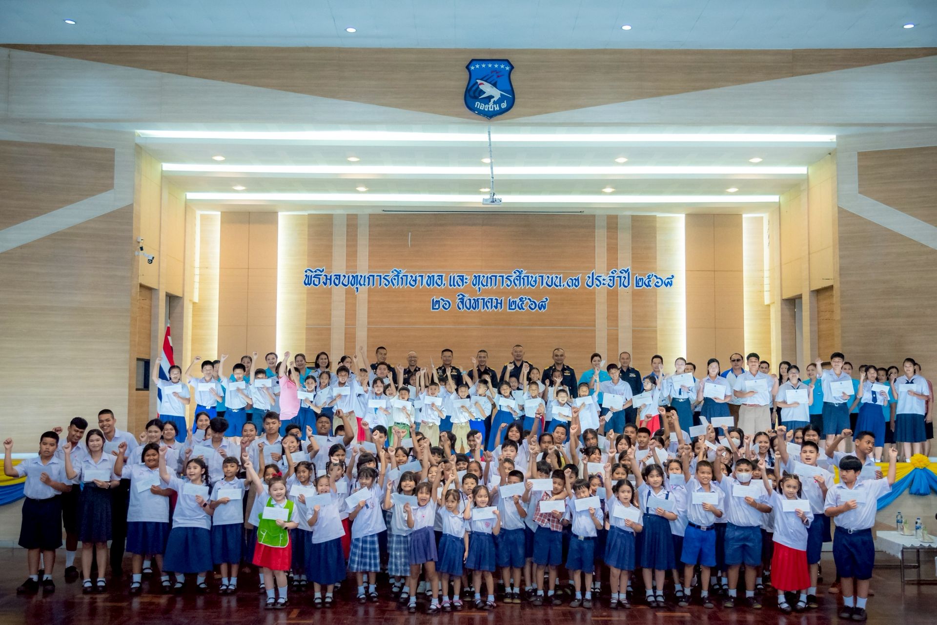 นาวาอากาศเอก ศุภวัจน์ จิตรมนตรี ผู้บังคับการกองบิน ๗ เป็นประธานในพิธีมอบทุนการศึกษากองทัพอากาศ และทุนการศึกษากองบิน ๗ ประจําปี ๒๕๖๘ ให้แก่บุตรข้าราชการ ลูกจ้าง และพนักงานราชการ สังกัดกองบิน ๗ โดยแบ่งเป็นทุนการศึกษากองทัพอากาศ จำนวน ๒๑๑ ทุน และทุนการศึกษากองบิน ๗ จำนวน ๙๘ ทุน ตัวแทนชมรมลูกหลานตระกูลลิ่มจังหวัดสุราษฎร์ธานี พร้อมทั้งบริษัท AIA ประกันชีวิต สุราษฎร์ธานี ร่วมสมทบทุนการศึกษาทั้งนี้ เพื่อเป็นขวัญ กำลังใจ และสามารถนำไปใช้ให้เป็นประโยชน์ทางการศึกษาต่อไปในอนาคต