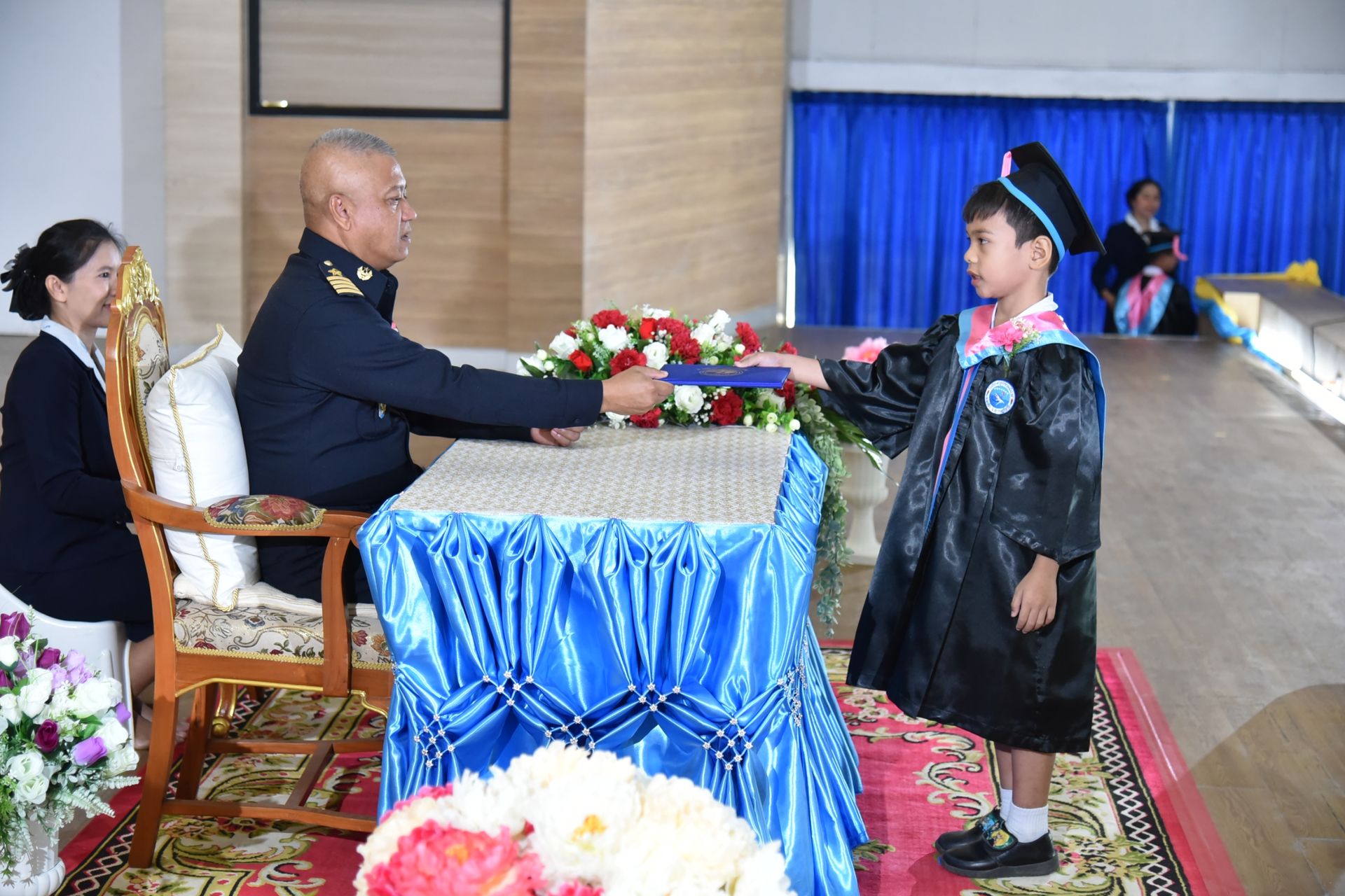 นาวาอากาศเอก ศุภวัจน์ จิตรมนตรี ผู้บังคับการกองบิน ๗ (ผู้ลงนามแทนผู้รับใบอนุญาตโรงเรียนอนุบาลกองบิน ๗) มอบหมายให้ นาวาอากาศเอก ณรงค์ฤทธิ์ สงทับ ผู้ช่วยผู้จัดการโรงเรียนอนุบาลกองบิน ๗ เป็นประธานในพิธีมอบวุฒิบัตรบัณฑิตน้อยสำหรับนักเรียนชั้นอนุบาล ๓ ที่จบการศึกษาประจำปีการศึกษา ๒๕๖๘ รุ่นที่ ๓๐ ของโรงเรียนอนุบาลกองบิน ๗ โดยมี นางสาวโสภิดา บุญเลิศลพ ผู้อำนวยการโรงเรียนอนุบาลกองบิน ๗ ให้การต้อนรับฯ เมื่อวันที่ ๑๗ มีนาคม พ.ศ.๒๕๖๙ ณ หอประชุมธูปะเตมีย์ กองบิน ๗ ตำบลมะลวน อำเภอพุนพิน จังหวัดสุราษฎร์ธานี