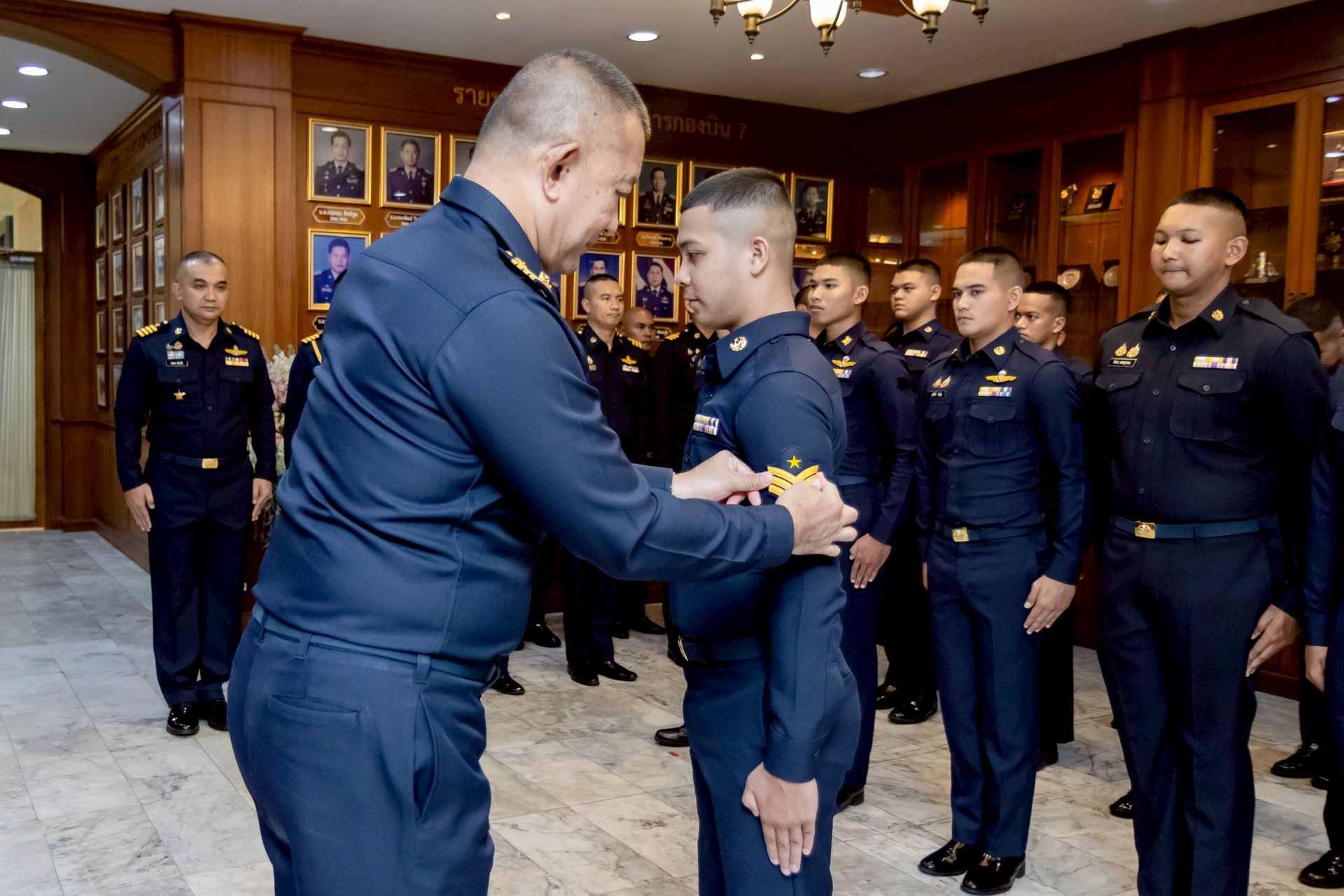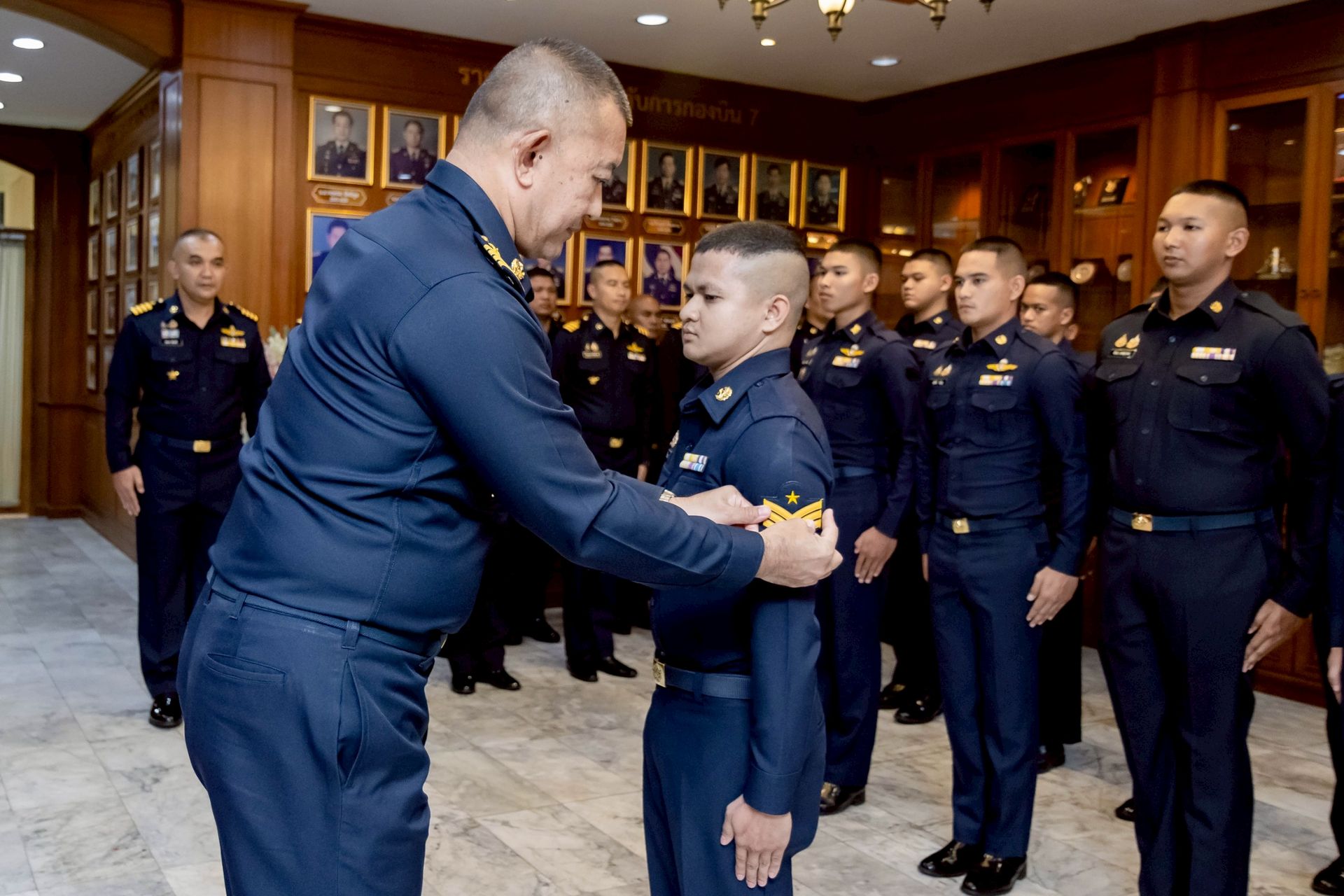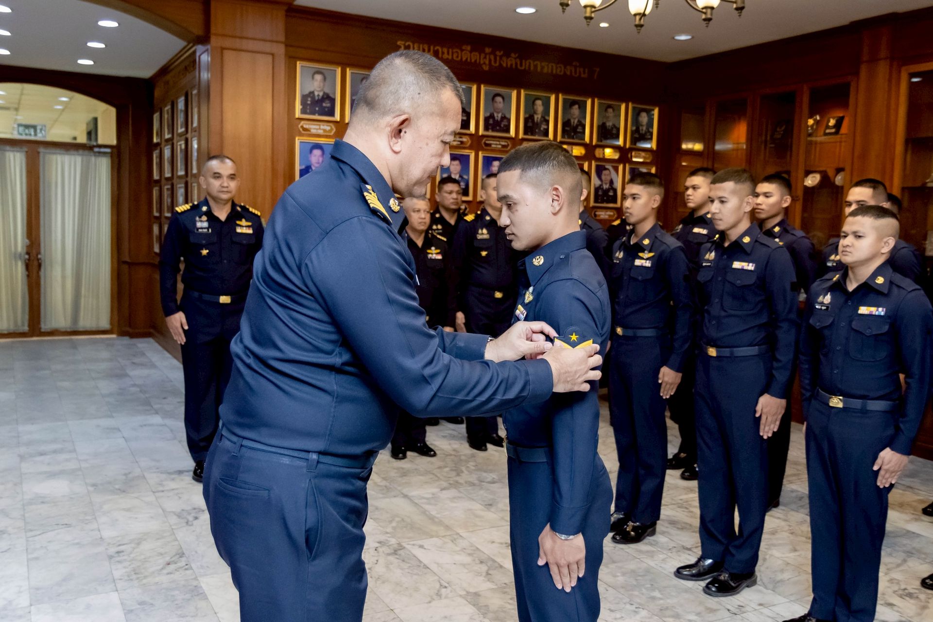 นาวาอากาศเอก ศุภวัจน์ จิตรมนตรี ผู้บังคับการกองบิน ๗ เป็นประธานในพิธีประดับเครื่องหมายยศให้แก่นายทหารชั้นประทวน สังกัดกองบิน ๗ ที่ได้รับการเลื่อนยศสูงขึ้น โดยมี รองผู้บังคับการกองบิน ๗ เสนาธิการกองบิน ๗ และหัวหน้าหน่วยขึ้นตรงกองบิน ๗ ร่วมเป็นเกียรติในพิธีฯ และร่วมแสดงความยินดี เมื่อวันที่ ๒๔ ธันวาคม พ.ศ.๒๕๖๘ ณ ห้องโถง กองบังคับการ กองบิน ๗ ตำบลมะลวน อำเภอพุนพิน จังหวัดสุราษฎร์ธานี