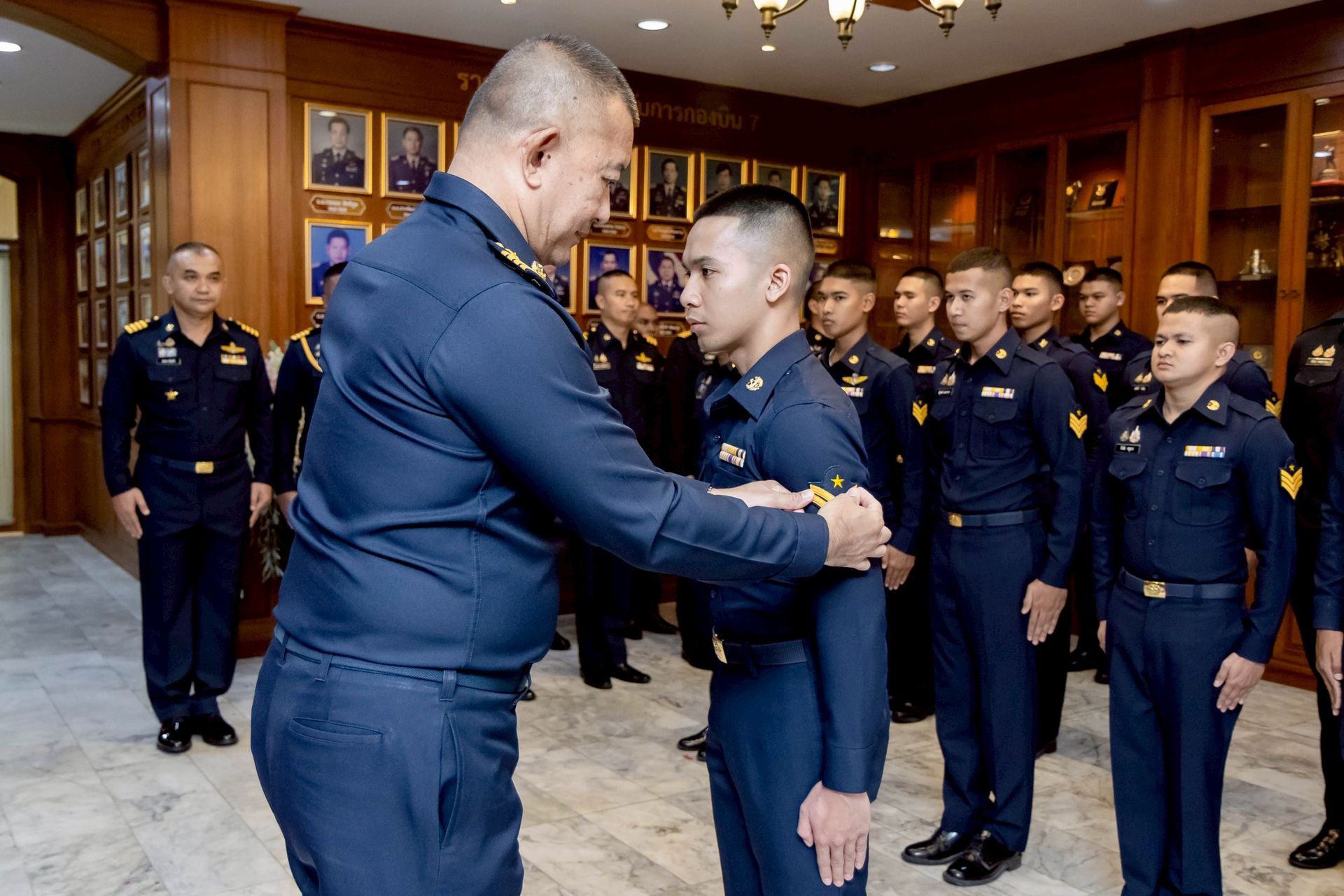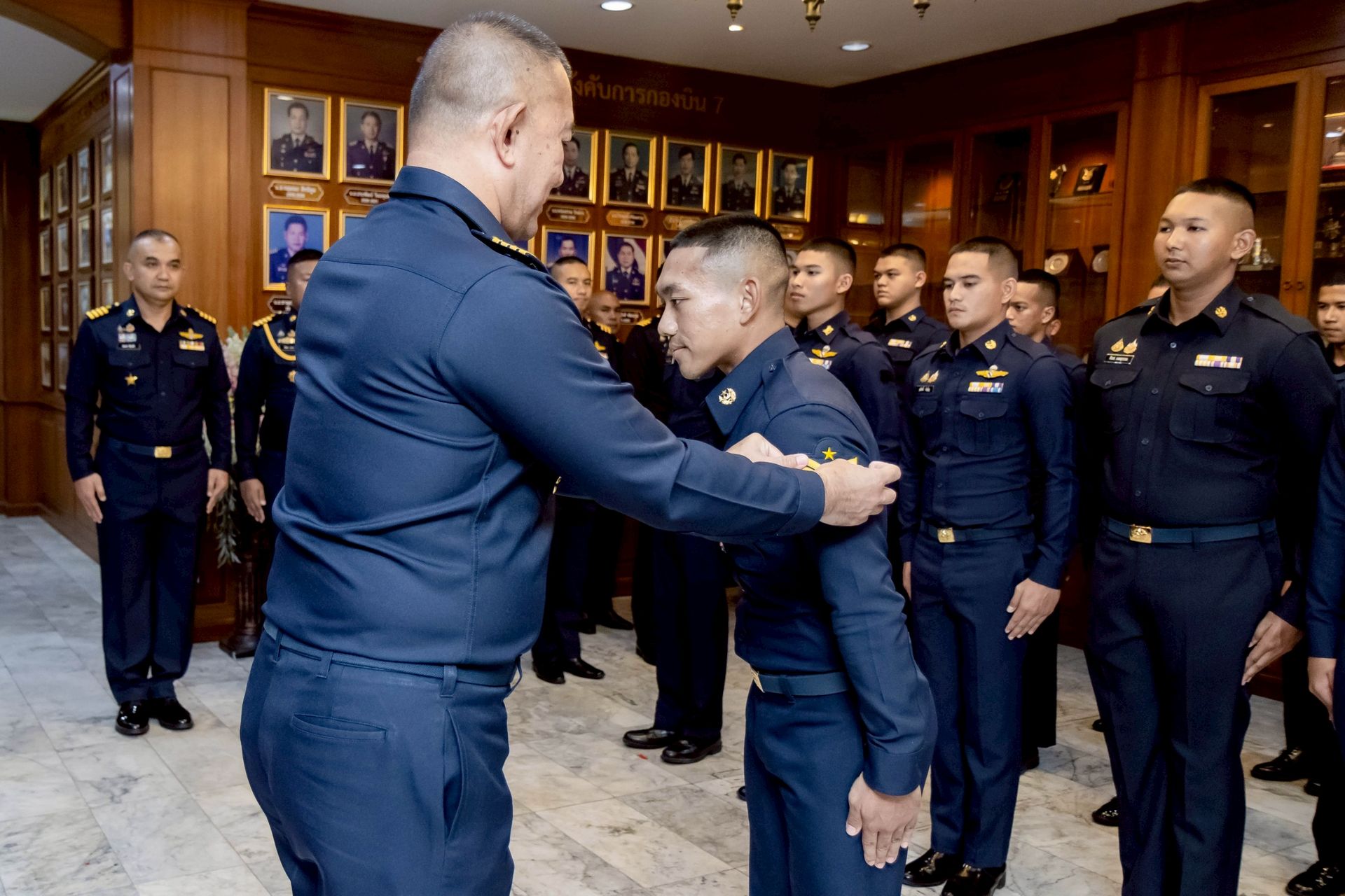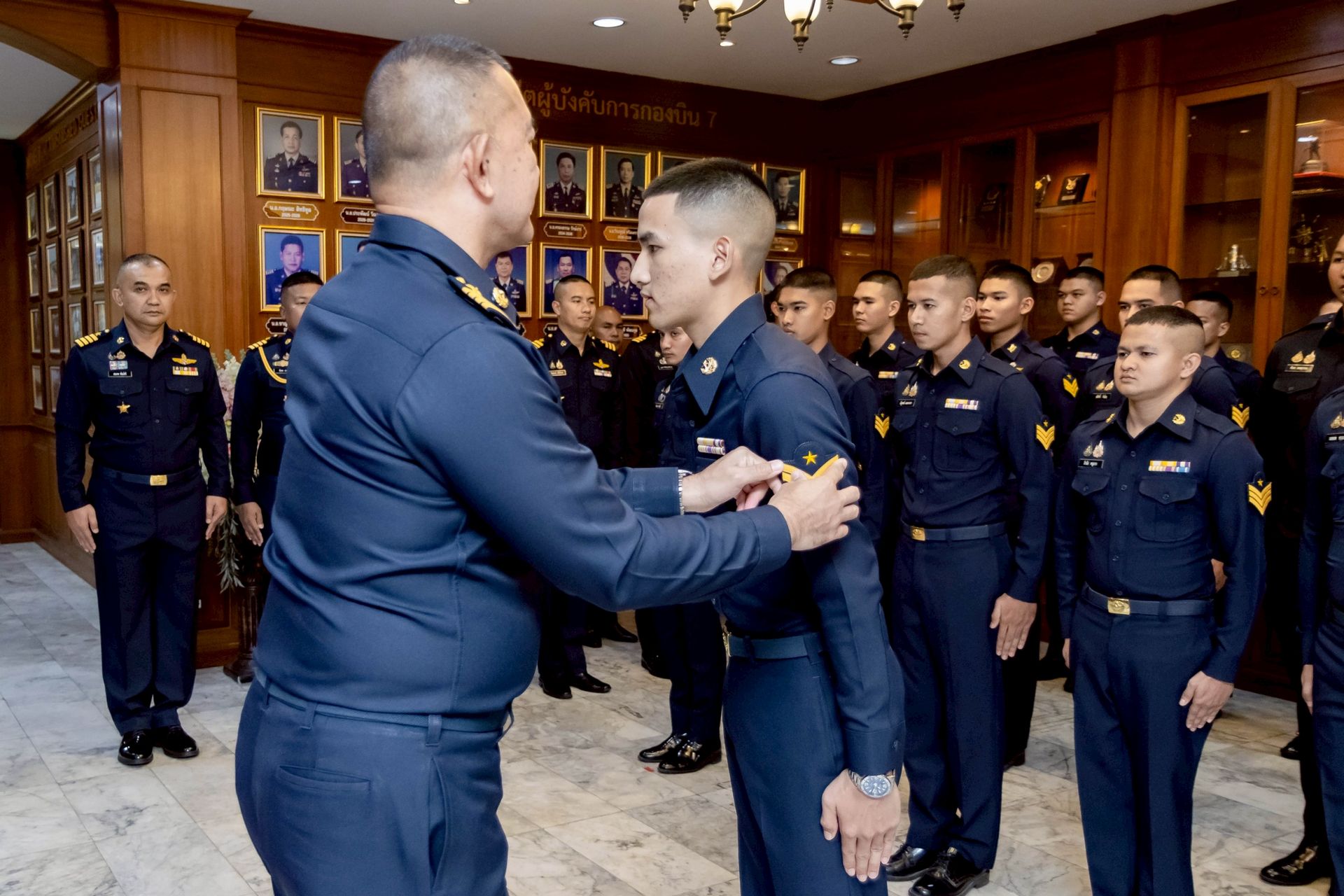 นาวาอากาศเอก ศุภวัจน์ จิตรมนตรี ผู้บังคับการกองบิน ๗ เป็นประธานในพิธีประดับเครื่องหมายยศให้แก่นายทหารชั้นประทวน สังกัดกองบิน ๗ ที่ได้รับการเลื่อนยศสูงขึ้น โดยมี รองผู้บังคับการกองบิน ๗ เสนาธิการกองบิน ๗ และหัวหน้าหน่วยขึ้นตรงกองบิน ๗ ร่วมเป็นเกียรติในพิธีฯ และร่วมแสดงความยินดี เมื่อวันที่ ๒๔ ธันวาคม พ.ศ.๒๕๖๘ ณ ห้องโถง กองบังคับการ กองบิน ๗ ตำบลมะลวน อำเภอพุนพิน จังหวัดสุราษฎร์ธานี