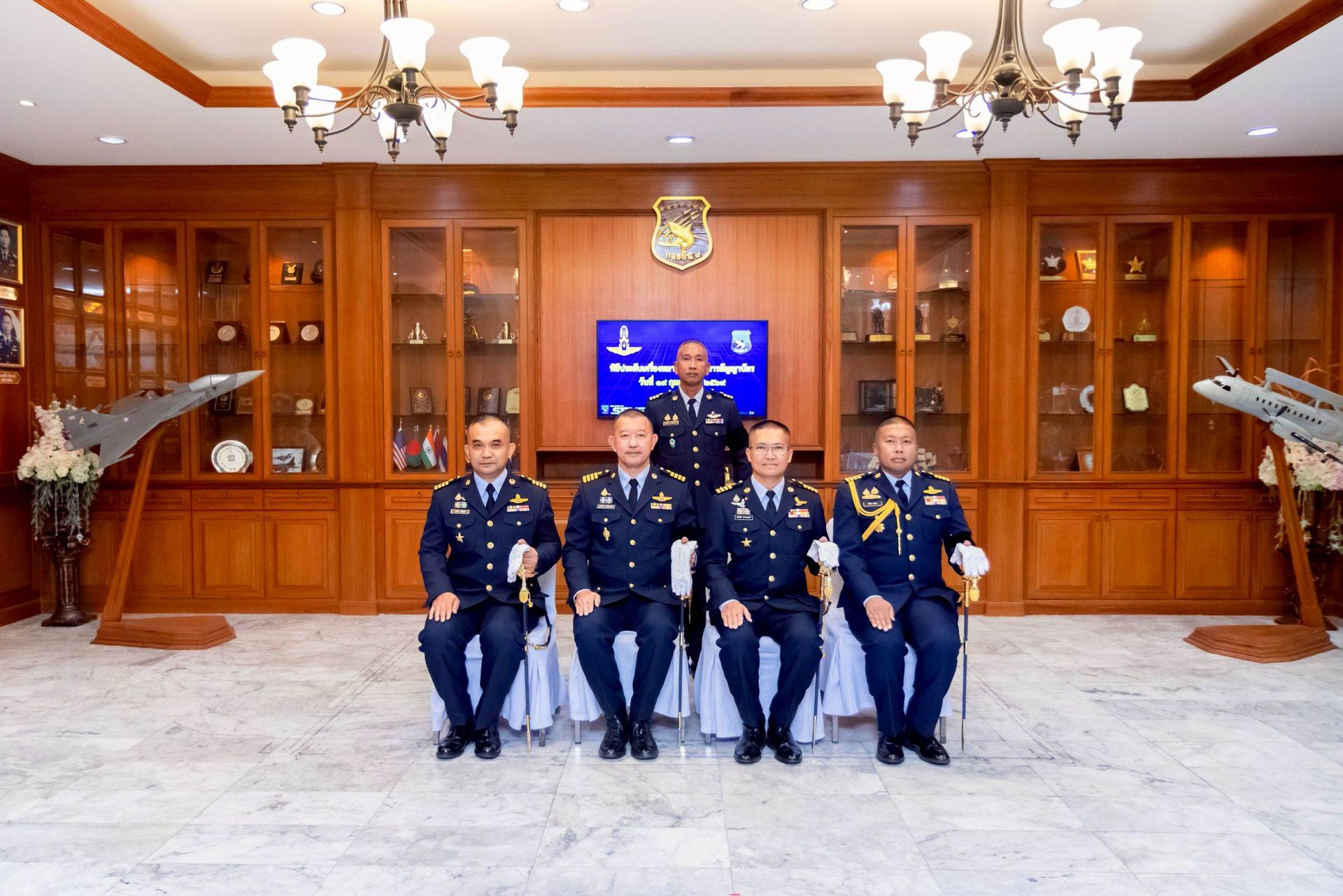 นาวาอากาศเอก ศุภวัจน์ จิตรมนตรี ผู้บังคับการกองบิน ๗ เป็นประธานในพิธีประดับเครื่องหมายยศ ให้แก่นายทหารชั้นสัญญาบัตร สังกัดกองบิน ๗ ที่ได้รับการเลื่อนยศสูงขึ้น โดยมี รองผู้บังคับการกองบิน ๗ เสนาธิการกองบิน ๗ และหัวหน้าหน่วยขึ้นตรงกองบิน ๗ ร่วมเป็นเกียรติในพิธีฯ และร่วมแสดงความยินดี เมื่อวันที่ ๑๙ กุมภาพันธ์ พ.ศ.๒๕๖๙ ณ ห้องโถงรับรอง กองบังคับการ กองบิน ๗ ตำบลมะลวน อำเภอพุนพิน จังหวัดสุราษฎร์ธานี