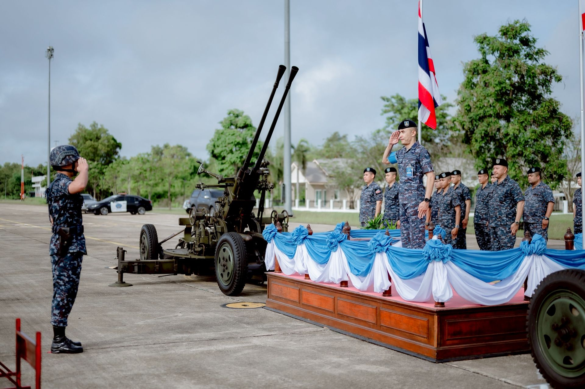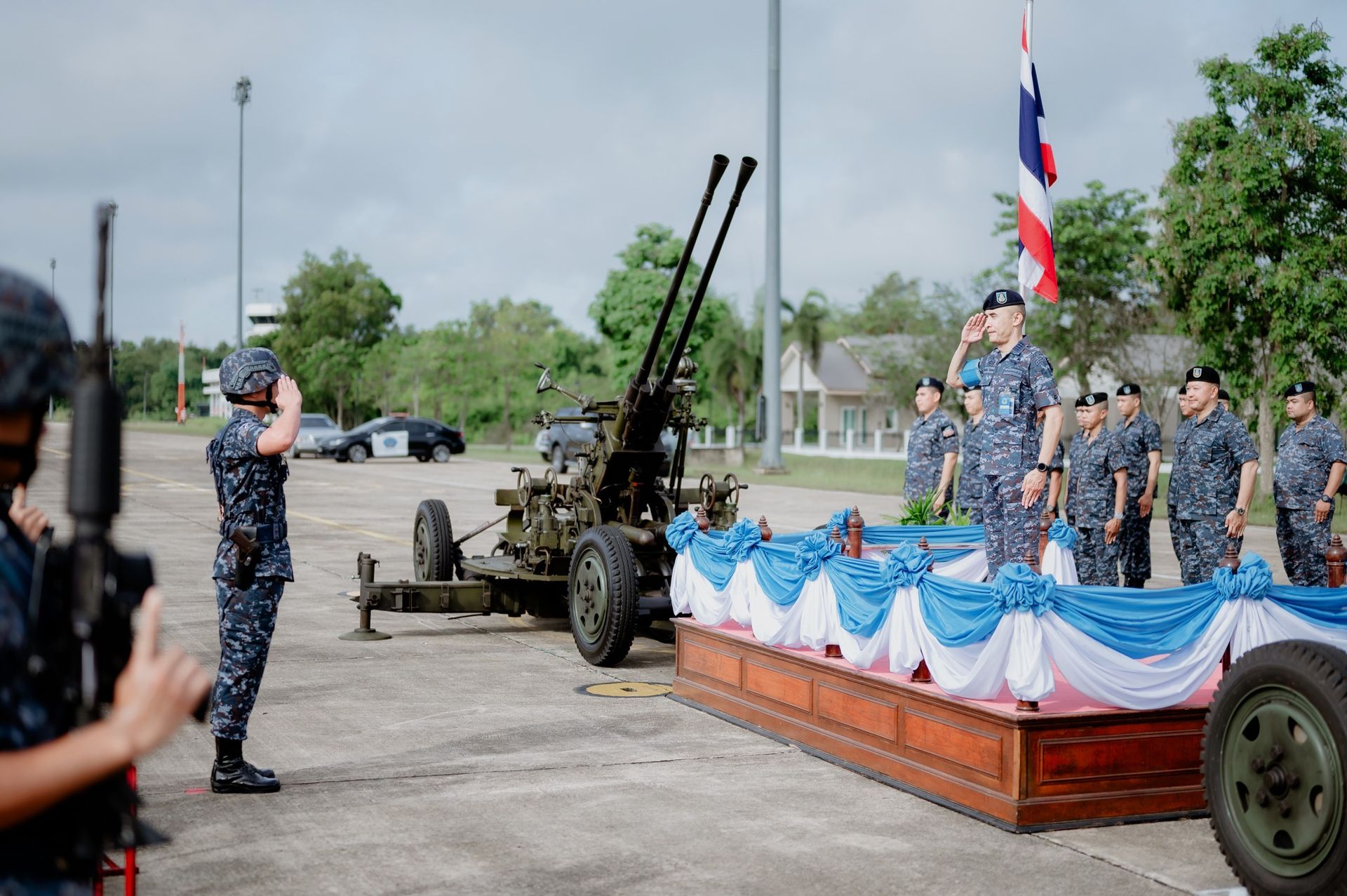 โอกาสนี้ นาวาอากาศเอก ศุภวัจน์ จิตรมนตรี ผู้บังคับการกองบิน ๗ พร้อมด้วย นาวาอากาศโท สิทธิชัย ยศอินทร์ ผู้บังคับกองพันทหารอากาศโยธิน กองบิน ๗ ร่วมให้การต้อนรับฯ เมื่อวันที่ ๑๔ ตุลาคม พ.ศ.๒๕๖๘ ณ ลานจอดท่าอากาศยานทหาร กองบิน ๗ ตำบลมะลวน อำเภอพุนพิน จังหวัดสุราษฎร์ธานี