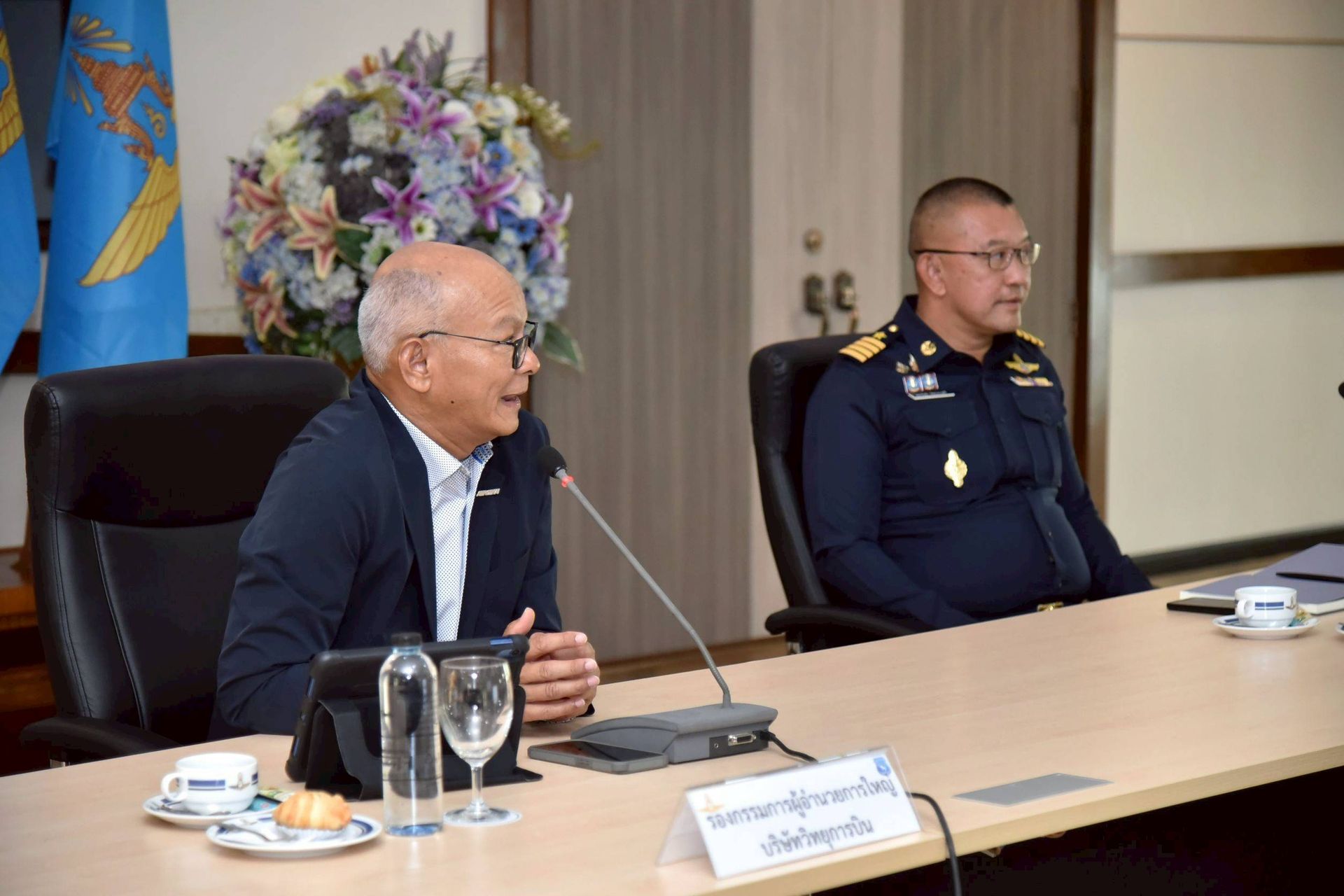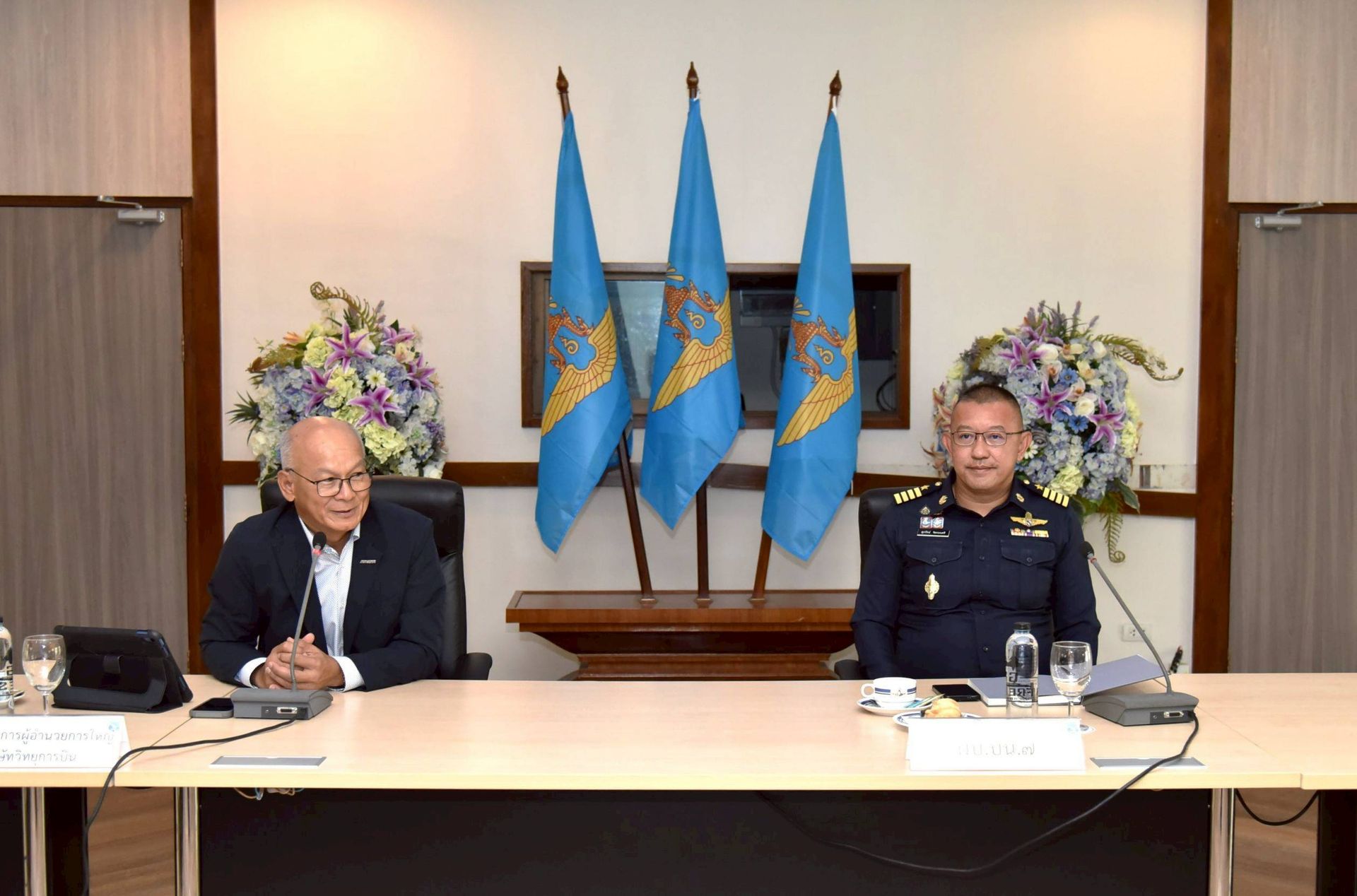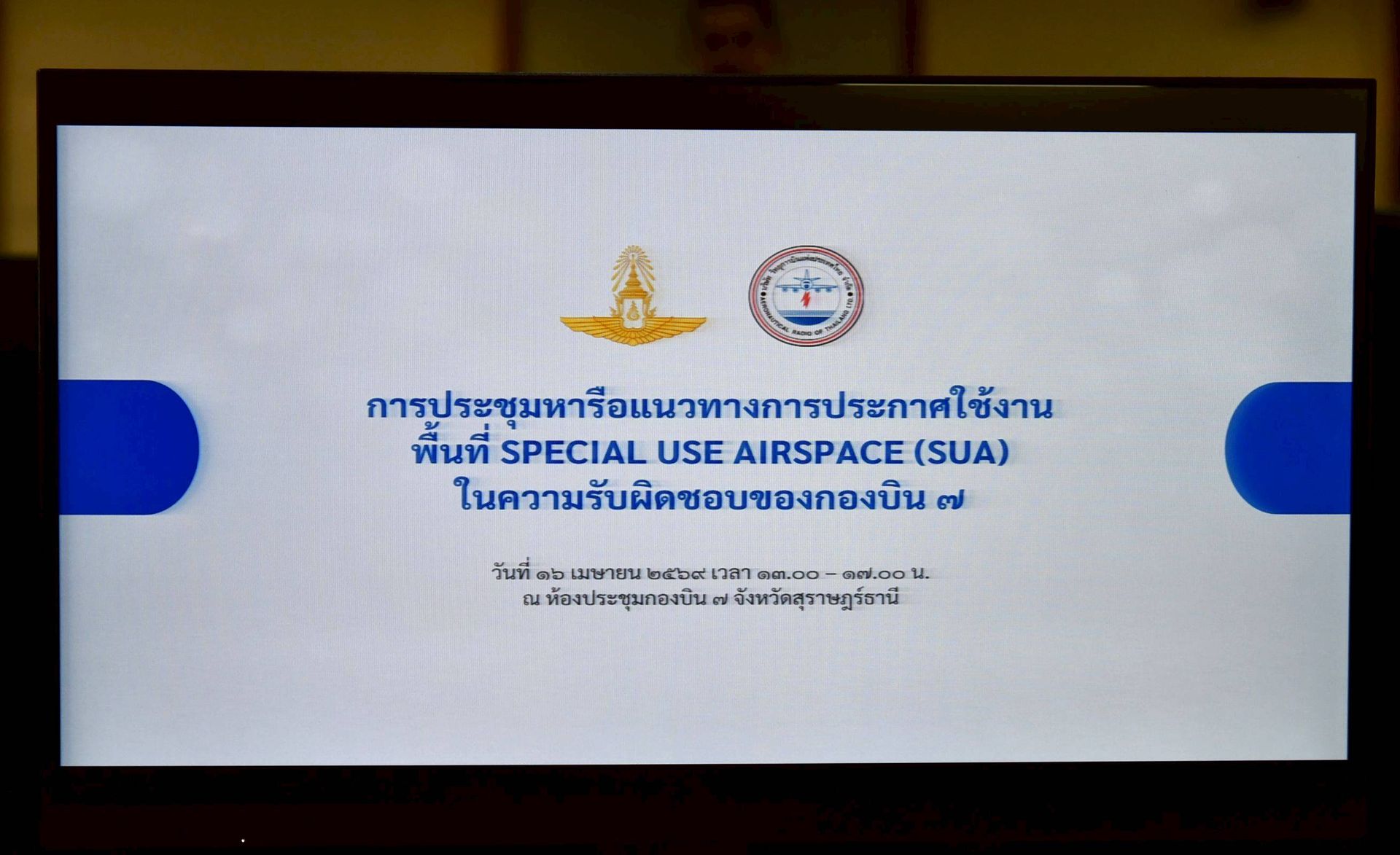 นาวาอากาศเอก ศุภวัจน์ จิตรมนตรี ผู้บังคับการกองบิน ๗ เป็นประธานจัดประชุมหารือแนวทางการประกาศใช้งานพื้นที่ SPECIAL USE AIRSPACE (SUA) ในความรับผิดชอบของกองบิน ๗ โดยมี นายสุนันท์ นิ่มฟัก รองกรรมการผู้อำนวยการใหญ่ บริษัทวิทยุการบินแห่งประเทศไทย จำกัด และคณะฯ พร้อมด้วยหัวหน้าหน่วยขึ้นตรงกองบิน ๗ ร่วมประชุมหารือ เสนอแนะ แก้ไขปัญหา และข้อขัดข้องร่วมกัน เพื่อให้การปฏิบัติหน้าที่ด้านการบินเป็นไปด้วยความเรียบร้อย เมื่อวันที่ ๑๖ เมษายน พ.ศ. ๒๕๖๙ ณ ห้องประชุมกองบิน ๗ ตำบลมะลวน อำเภอพุนพิน จังหวัดสุราษฎร์ธานี
