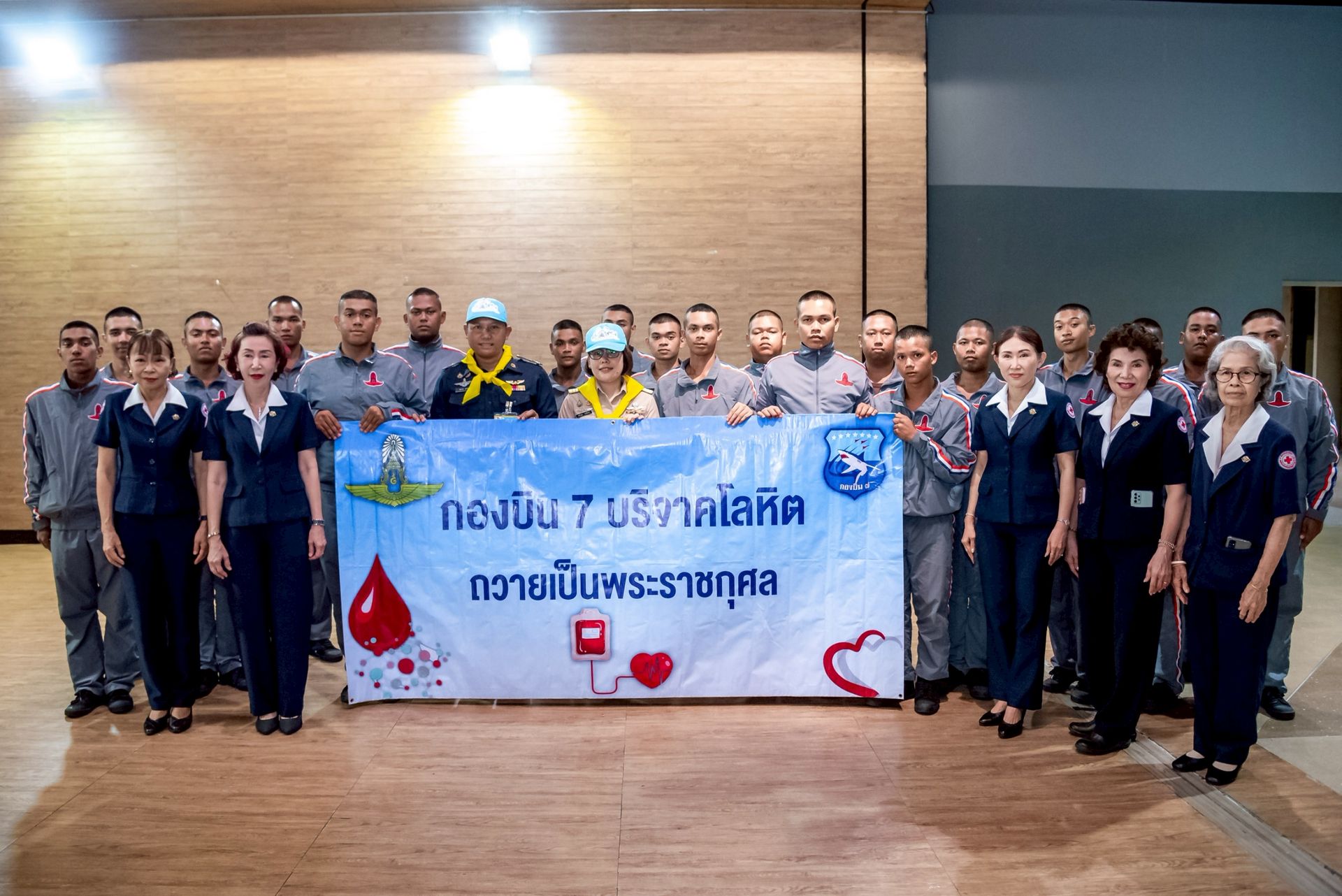 นาวาอากาศเอก ศุภวัจน์ จิตรมนตรี ผู้บังคับการกองบิน ๗ มอบหมายให้ จิตอาสา ๙๐๔ นำทหารกองประจำการ สังกัดกองบิน ๗ ร่วมกิจกรรมบริจาคโลหิตและบริจาคอวัยวะถวายเป็นพระราชกุศล เนื่องในวันเฉลิมพระชนมพรรษาสมเด็จพระนางเจ้าสุทิดา พัชรสุธาพิมลลักษณ พระบรมราชินี ๓ มิถุนายน พ.ศ.๒๕๖๘ ในครั้งนี้ มีผู้เข้าร่วมบริจาคโลหิตจำนวน ๒๐ คน รวมปริมาณโลหิตทั้งสิ้น ๖,๗๕๐ ซีซี พร้อมด้วยผู้บริจาคอวัยวะและดวงตาอีก ๕ คน เมื่อวันที่ ๒๐ พฤษภาคม พ.ศ.๒๕๖๘ ณ ณ บริเวณชั้น ๔ (โซนหน้าHaII ) ศูนย์การค้าเซ็นทรัลพลาซ่า ตำบลวัดประดู่ อำเภอเมืองสุราษฎร์ธานี จังหวัดสุราษฎร์ธานี กิจกรรมในครั้งนี้ถือเป็นการแสดงออกถึงความจงรักภักดีและสำนึกในพระมหากรุณาธิคุณของพระองค์ ที่ทรงเป็นแบบอย่างของความเมตตาและเสียสละแก่ประชาชนชาวไทย