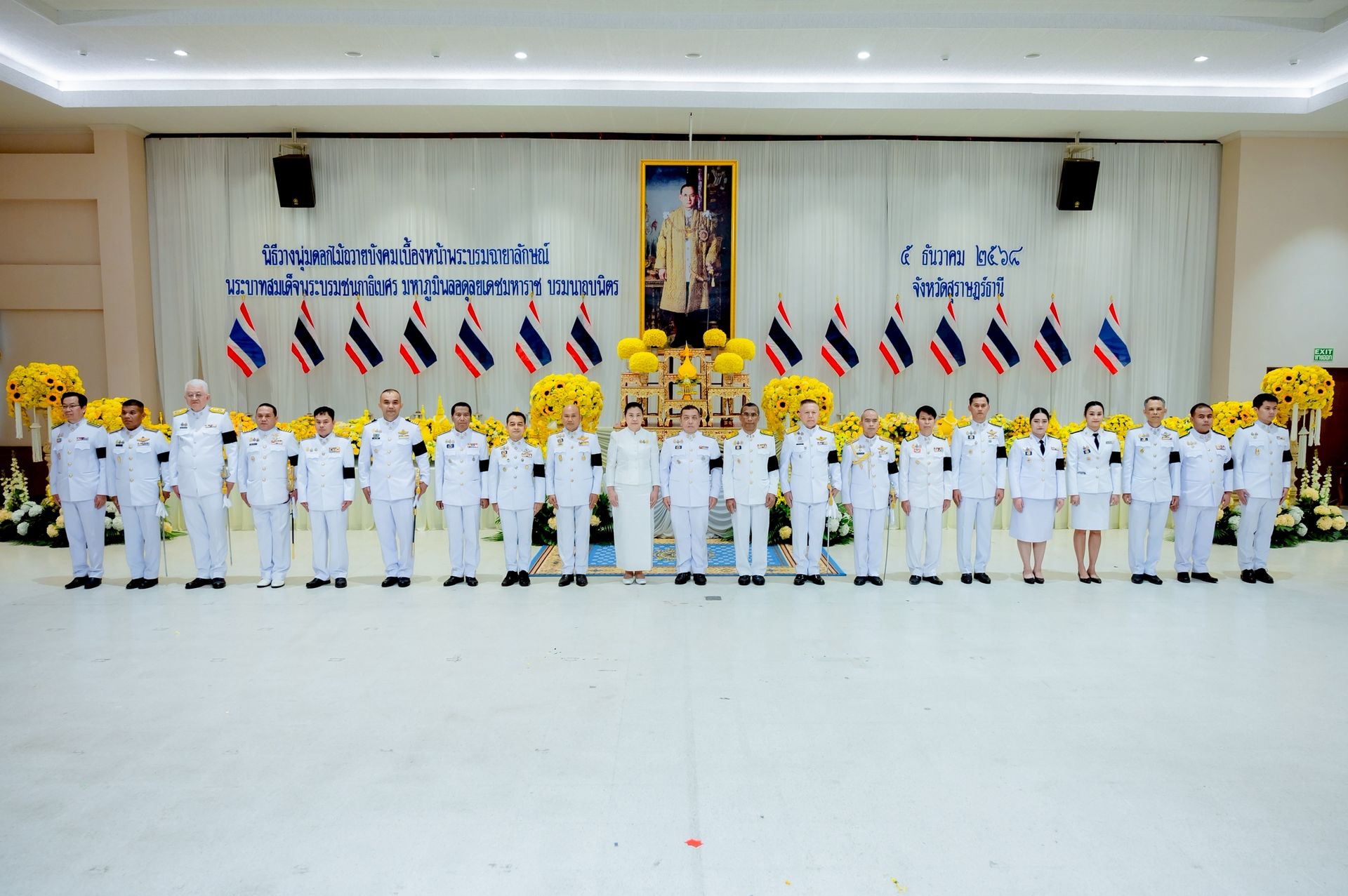 โอกาสนี้ นาวาอากาศเอก ศุภวัจน์ จิตรมนตรี ผู้บังคับการกองบิน ๗ มอบหมายให้ นาวาอากาศเอก สมภพ พันธ์ศรี รองผู้บังคับการกองบิน ๗ พร้อมด้วย ข้าราชการ กองบิน ๗ เข้าร่วมกิจกรรมฯ เมื่อวันที่ ๕ ธันวาคม พ.ศ.๒๕๖๘ ณ อาคารศูนย์กลางการประชุมภาคใต้ตอนบน ศาลากลางจังหวัดสุราษฎร์ธานี อำเภอเมืองสุราษฎร์ธานี จังหวัดสุราษฎร์ธานี