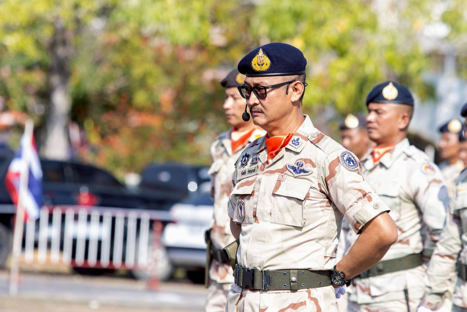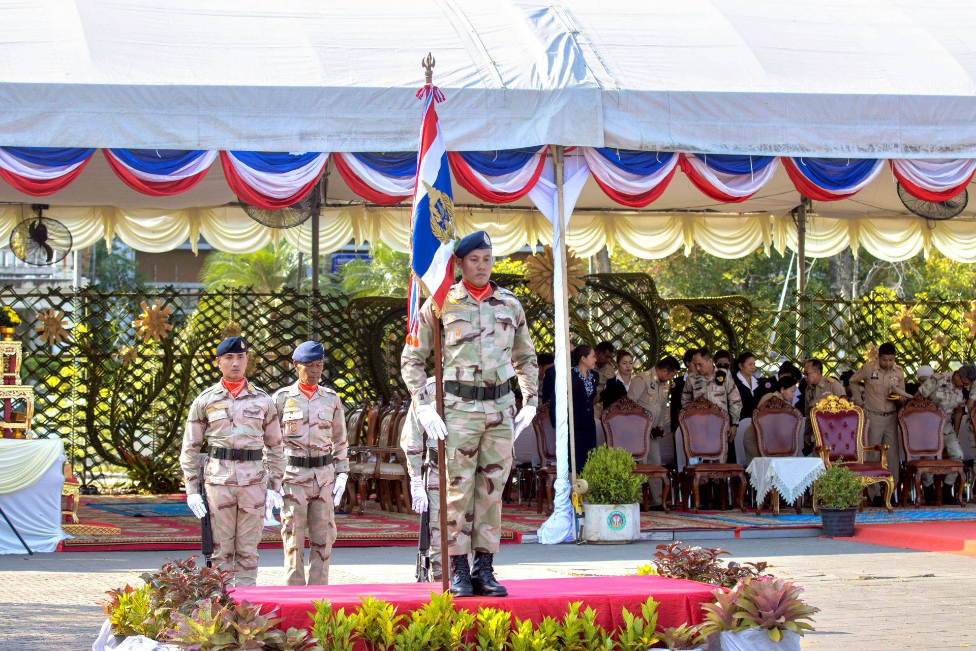 นายกองเอก จุมพฏ วรรณฉัตรสิริ ผู้ว่าราชการจังหวัดสุราษฎร์ธานี ในฐานะผู้บังคับการกองอาสารักษาดินแดน จังหวัดสุราษฎร์ธานี เป็นประธานในพิธีชุมนุมผู้บังคับบัญชา เจ้าหน้าที่ และสมาชิกกองอาสารักษาดินแดน เนื่องในวันคล้ายวันสถาปนากองอาสารักษาดินแดน ครบรอบ ๗๒ ปี