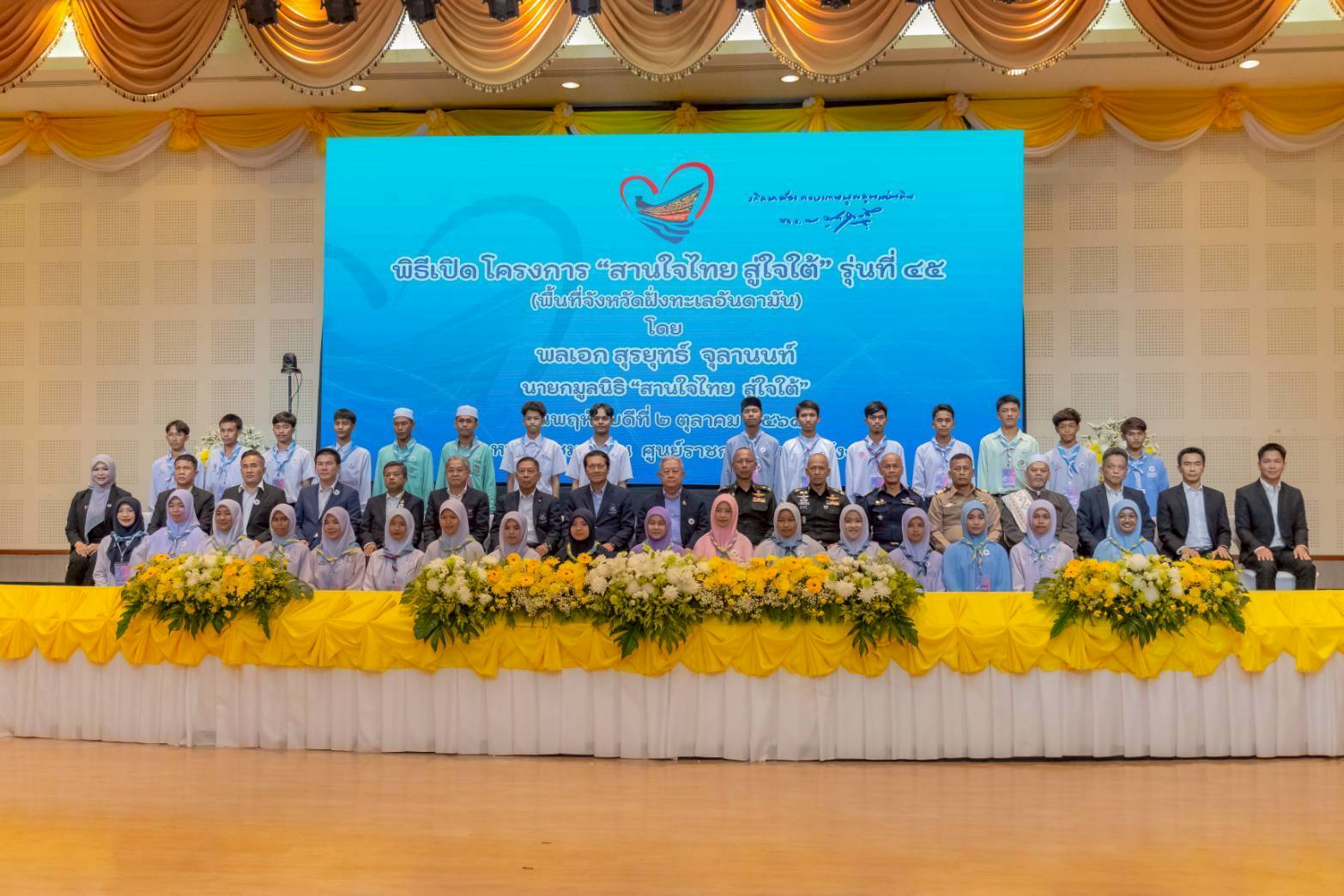 พลเอก สุรยุทธ์ จุลานนท์ ประธานองคมนตรีและนายกมูลนิธิ "สานใจไทย สู่ใจใต้" เป็นประธานในพิธีเปิดโครงการ "สานใจไทย สู่ใจใต้" รุ่นที่ ๔๕ ในพื้นที่จังหวัดฝั่งทะเลอันดามัน โดยมีวัตถุประสงค์เพื่อนำเยาวชนผู้ด้อยโอกาส และเยาวชนที่ได้รับผลกระทบจากเหตุการณ์ความไม่สงบในจังหวัดชายแดนภาคใต้ (จังหวัดปัตตานี จังหวัดยะลา จังหวัดนราธิวาส จังหวัดสตูล และจังหวัดสงขลา) จำนวน ๔๔๐ คน มาร่วมเรียนรู้วิถีชีวิตความเป็นอยู่ในสังคมพหุวัฒนธรรม ที่มีความหลากหลายทั้งด้านเชื้อชาติ ศาสนา ภาษา และวัฒนธรรม รวมทั้งการปรับตัวในการใช้ชีวิตอยู่ร่วมกับครอบครัวอุปถัมภ์ ในพื้นที่กรุงเทพมหานครและ ๙ จังหวัดภาคกลาง จำนวน ๓๒๐ คน และในพื้นที่จังหวัดฝั่งทะเลอันดามัน จำนวน ๑๒๐ คน