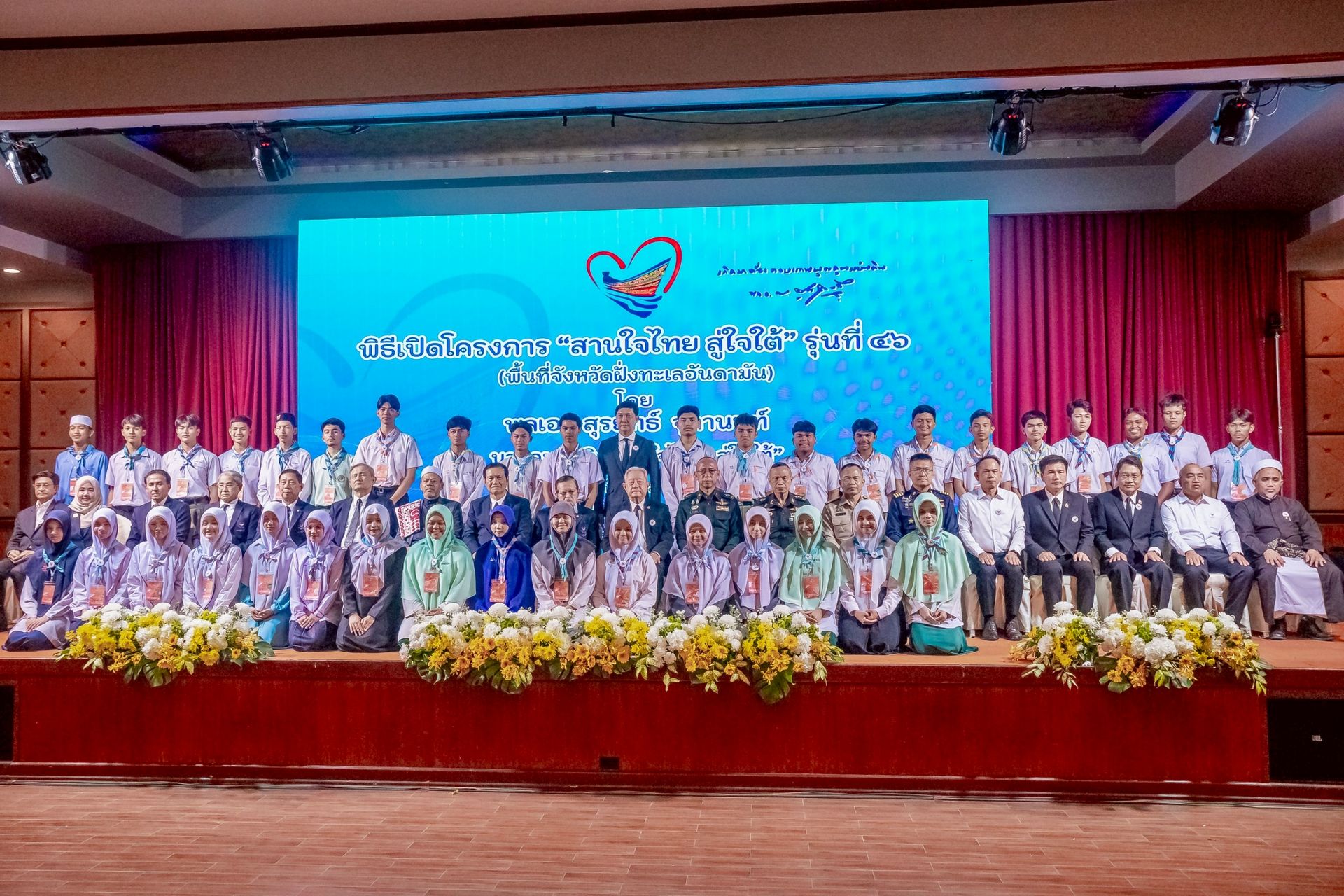 พลเอก สุรยุทธ์ จุลานนท์ ประธานองคมนตรีและนายกมูลนิธิ "สานใจไทย สู่ใจใต้" เป็นประธานในพิธีเปิดโครงการ "สานใจไทย สู่ใจใต้" รุ่นที่ ๔๖ ในพื้นที่จังหวัดฝั่งทะเลอันดามัน โดยมีวัตถุประสงค์เพื่อนำเยาวชนผู้ด้อยโอกาส และเยาวชนที่ได้รับผลกระทบจากเหตุการณ์ความไม่สงบในจังหวัดชายแดนภาคใต้ (จังหวัดปัตตานี จังหวัดยะลา จังหวัดนราธิวาส จังหวัดสตูล และจังหวัดสงขลา) จำนวน ๔๔๐ คน มาร่วมเรียนรู้วิถีชีวิตความเป็นอยู่ในสังคมพหุวัฒนธรรม ที่มีความหลากหลายทั้งด้านเชื้อชาติ ศาสนา ภาษา และวัฒนธรรม รวมทั้งการปรับตัวในการใช้ชีวิตอยู่ร่วมกับครอบครัวอุปถัมภ์ ในพื้นที่กรุงเทพมหานครและ ๙ จังหวัดภาคกลาง จำนวน ๓๒๐ คน และในพื้นที่จังหวัดฝั่งทะเลอันดามัน จำนวน ๑๒๐ คน