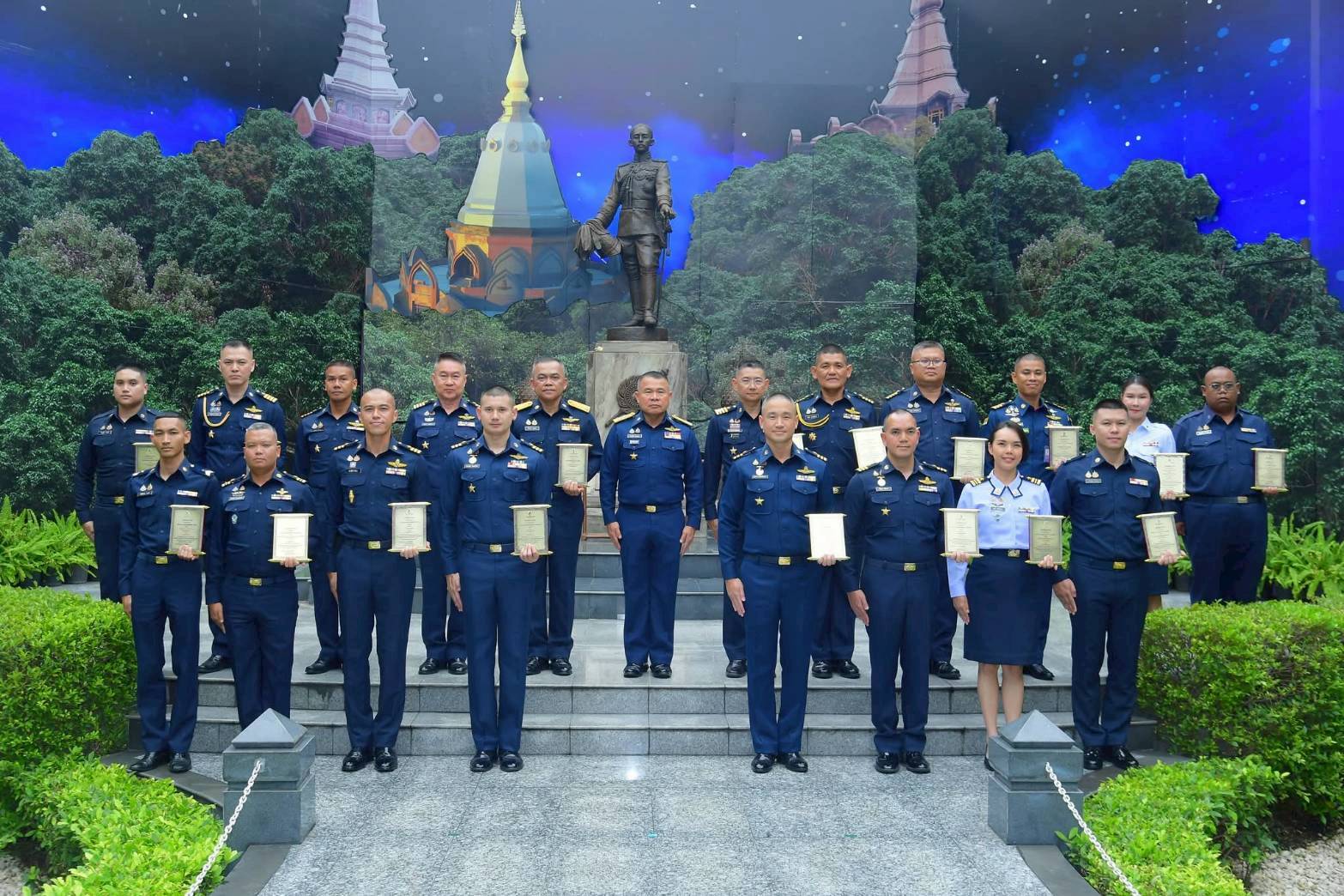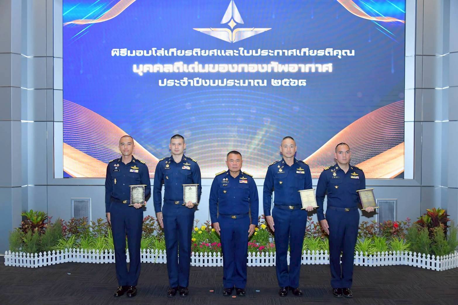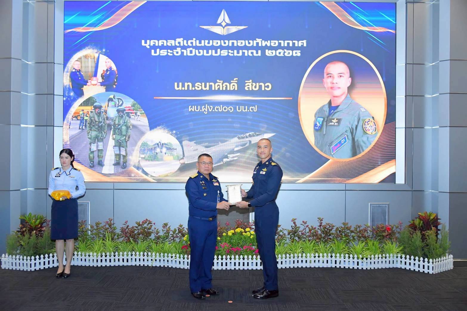 พลอากาศเอก พันธ์ภักดี พัฒนกุล ผู้บัญชาการทหารอากาศ เป็นประธานในพิธีมอบโล่เกียรติยศและใบประกาศเกียรติคุณแก่บุคคลดีเด่นของกองทัพอากาศ ประจำปีงบประมาณ ๒๕๖๘ เพื่อเชิดชูเกียรติผู้มีผลงานโดดเด่น เป็นการสร้างขวัญกำลังใจ และส่งเสริมให้กำลังพลทุกระดับยึดถือเป็นแบบอย่างที่ดี ณ ห้องบรรยาย กองบัญชาการกองทัพอากาศ