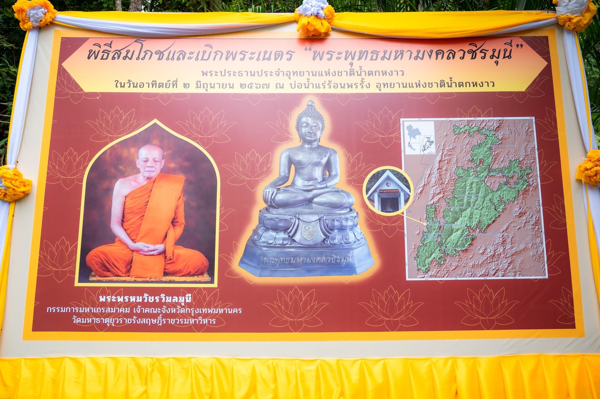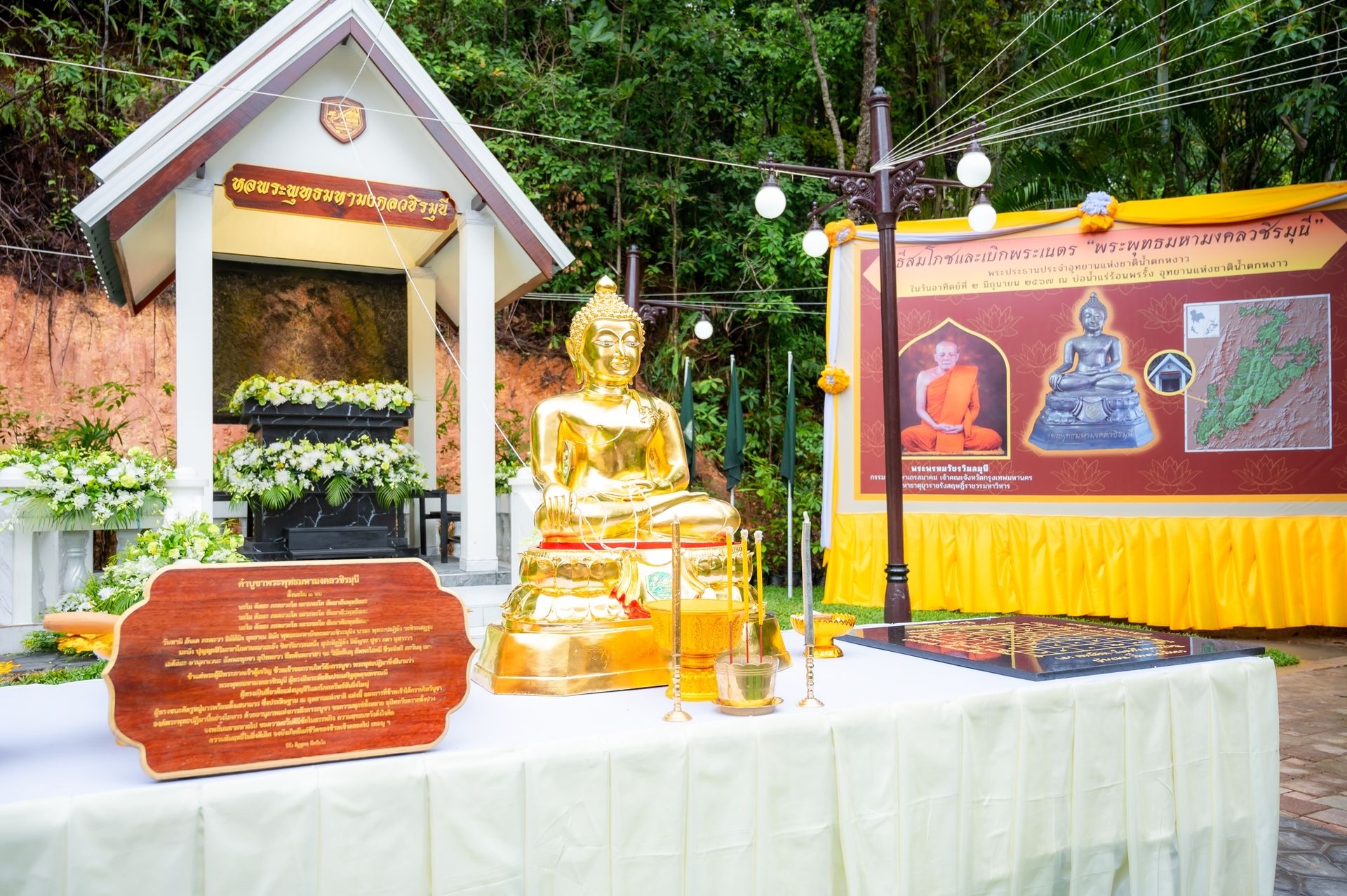 นายพลากร สุวรรณรัฐ องคมนตรี เป็นประธานในพิธีสมโภช และเบิกพระเนตร "พระพุทธมหามงคลวชิรมุนี" พระประธานประจำอุทยานแห่งชาติน้ำตกหงาว และวันคล้ายวันสถาปนาอุทยานแห่งชาติน้ำตกหงาว ครบรอบ ๒๕ ปี โดยมี พระพรหมวัชรวิมลมุนี กรรมการมหาเถรสมาคม เจ้าคณะกรุงเทพมหานคร และผู้ช่วยเจ้าอาวาสวัดมหาธาตุยุวราชรังสฤษฎิ์ราชวรมหาวิหาร เป็นประธานฝ่ายสงฆ์