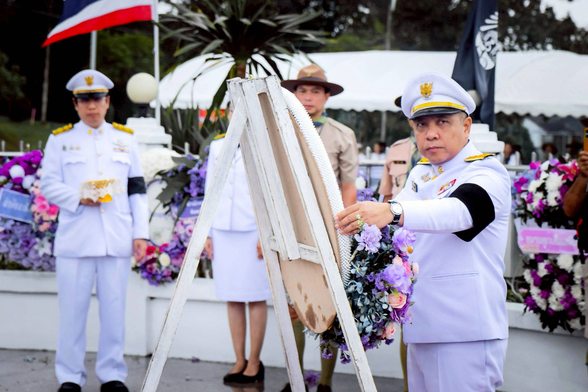 นายจุมพฏ วรรณฉัตรสิริ ผู้ว่าราชการจังหวัดสุราษฎร์ธานี เป็นประธานในพิธีวางพวงมาลา และถวายราชสดุดี เนื่องในโอกาสวันคล้ายวันสวรรคตพระบาทสมเด็จพระมงกุฎเกล้าเจ้าอยู่หัว ครบ ๑๐๐ ปี