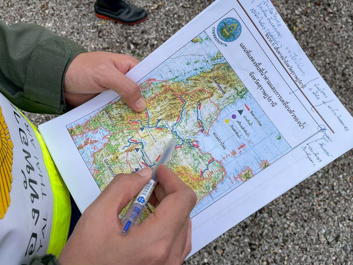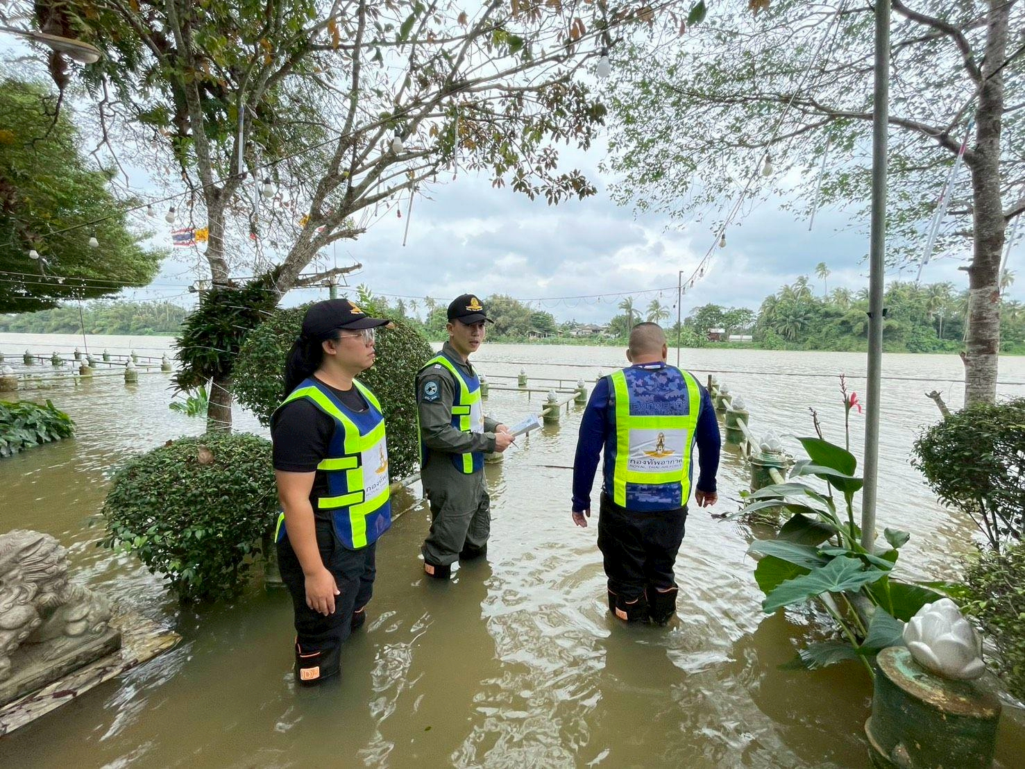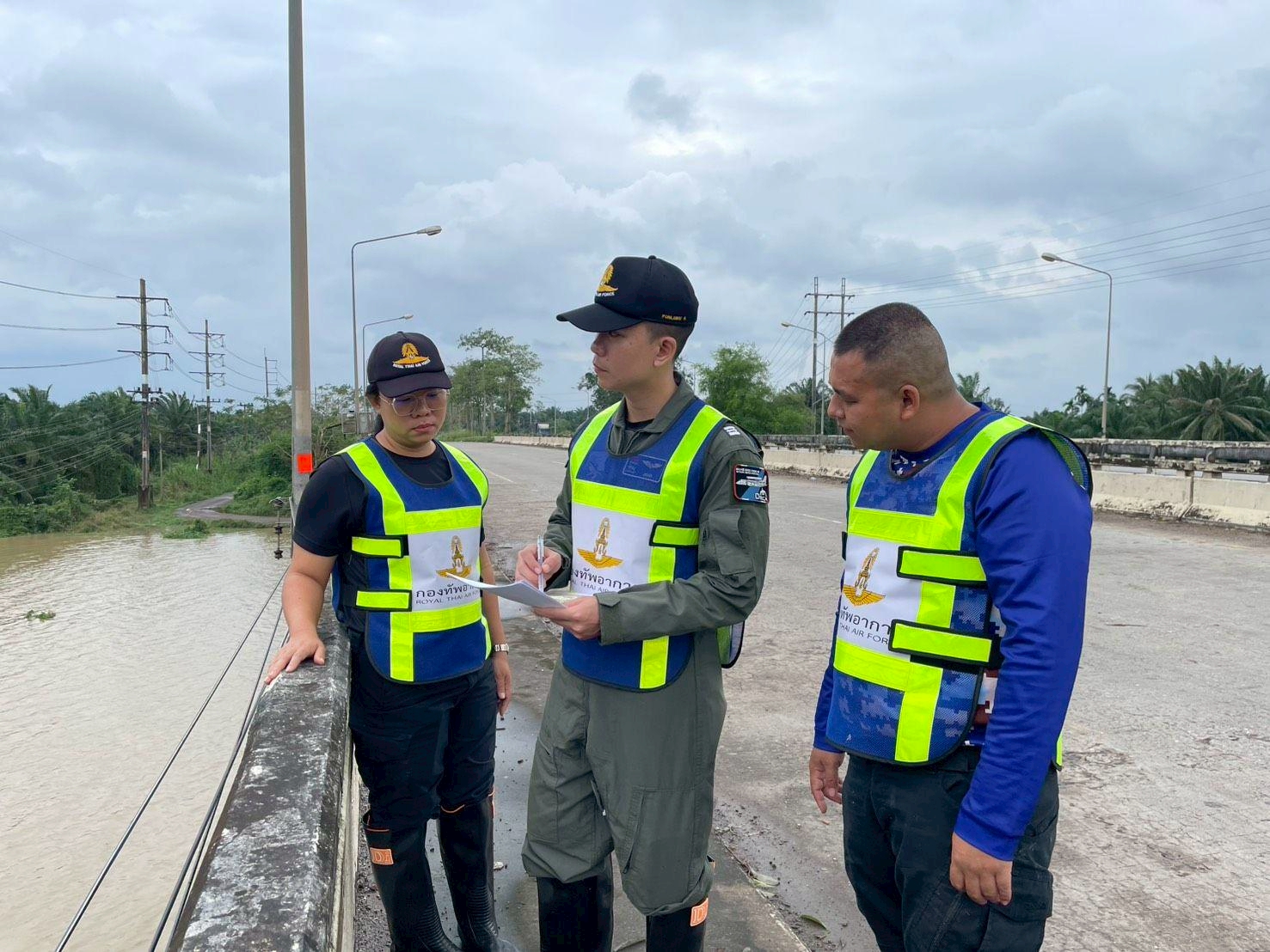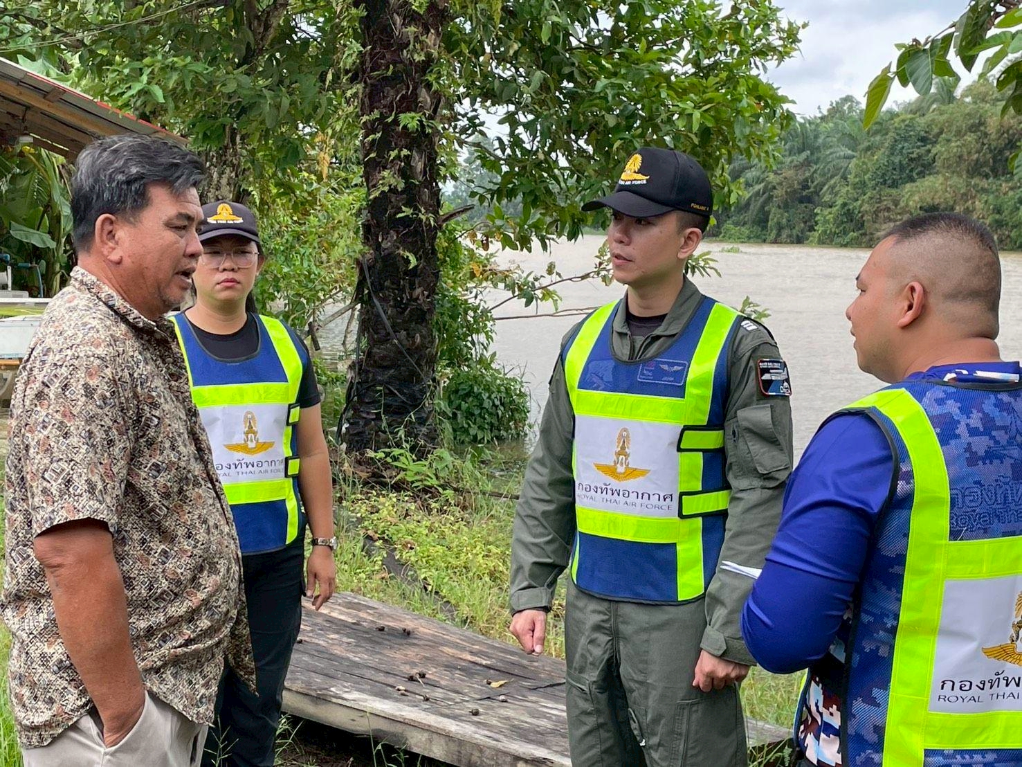 นาวาอากาศเอก ศุภวัจน์ จิตรมนตรี ผู้บังคับการกองบิน ๗ ในฐานะผู้อำนวยการศูนย์บรรเทาสาธารณภัยกองบิน ๗ มอบหมายให้ นาวาอากาศตรี พลวัต สายบุญศรี รองหัวหน้าแผนกกิจการพลเรือน กองบังคับการ กองบิน ๗ / เลขาศูนย์บรรเทาสาธารณภัยกองบิน ๗ พร้อมเจ้าหน้าที่ศูนย์บรรเทาสาธารณภัยกองบิน ๗ ลงพื้นที่สำรวจเส้นทางน้ำและตรวจวัดระดับน้ำในพื้นที่ตำบลท่าสะท้อน ตำบลหัวเตย และตำบลท่าโรงช้าง อำเภอพุนพิน จังหวัดสุราษฎร์ธานี ซึ่งเป็นพื้นที่รับผิดชอบของศูนย์บรรเทาสาธารณภัยกองบิน ๗