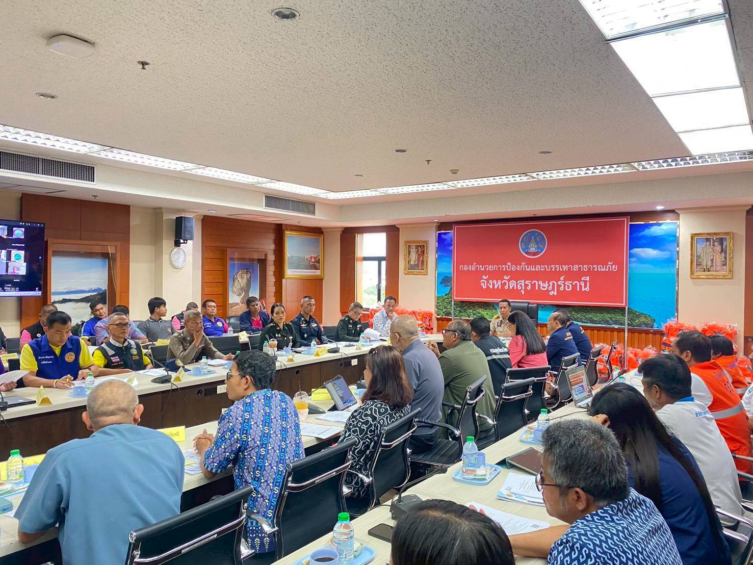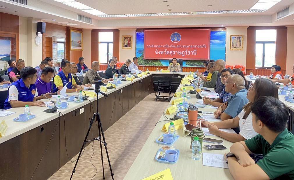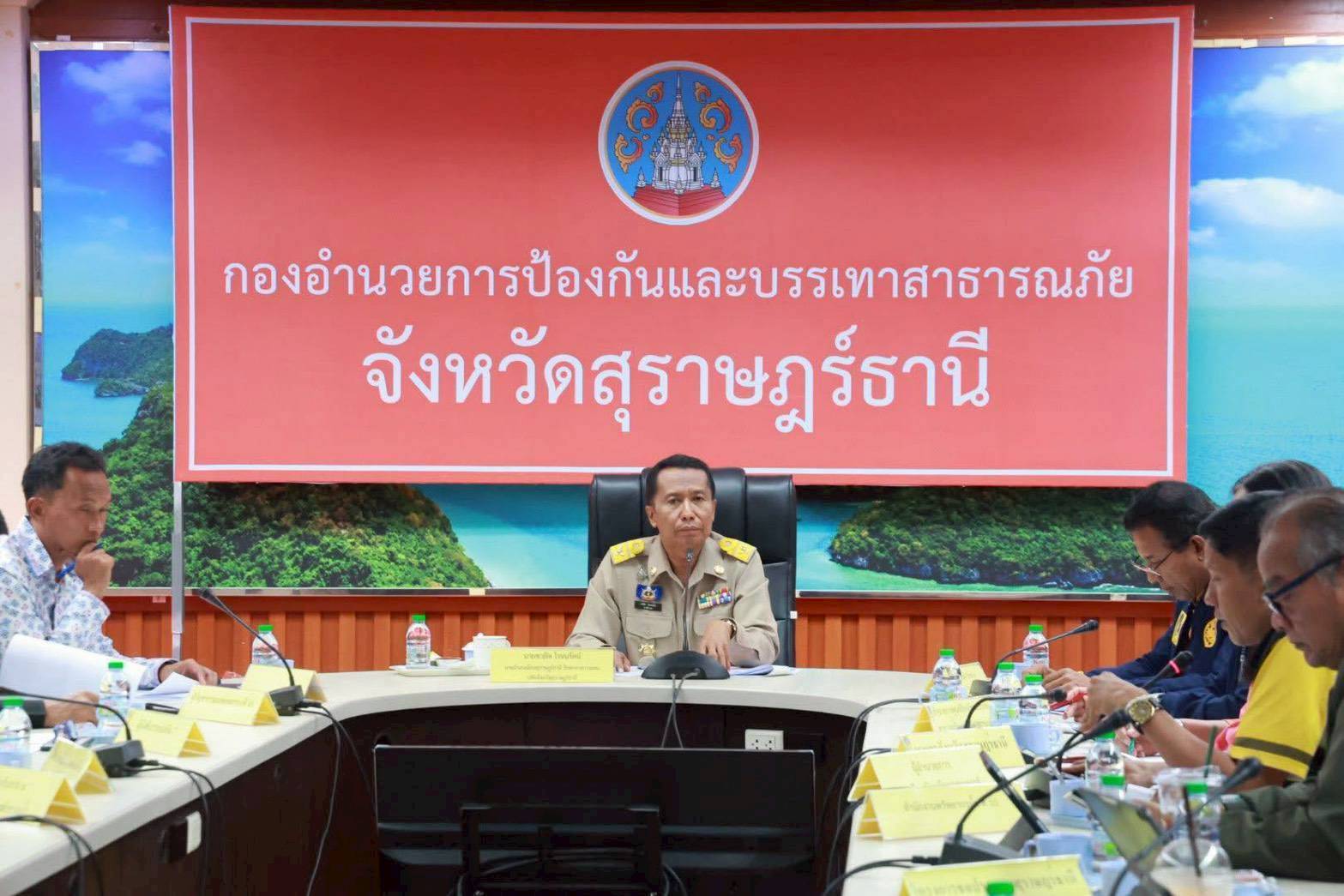 ศูนย์บรรเทาสาธารณภัยกองบิน ๗ เข้าร่วมประชุมเตรียมความพร้อมรับมือสถานการณ์อุทกภัย วาตภัย และดินถล่ม จังหวัดสุราษฎร์ธานี