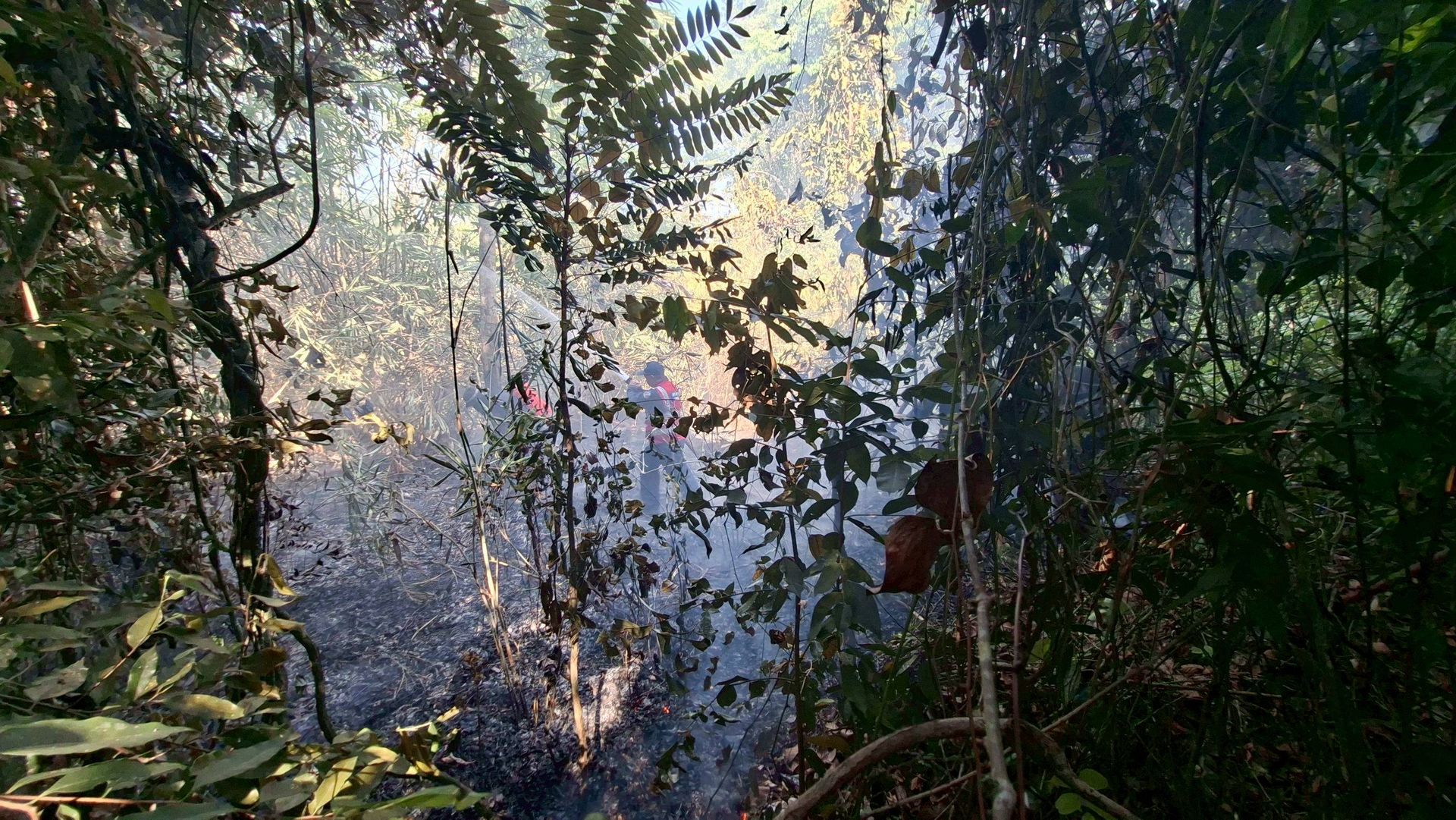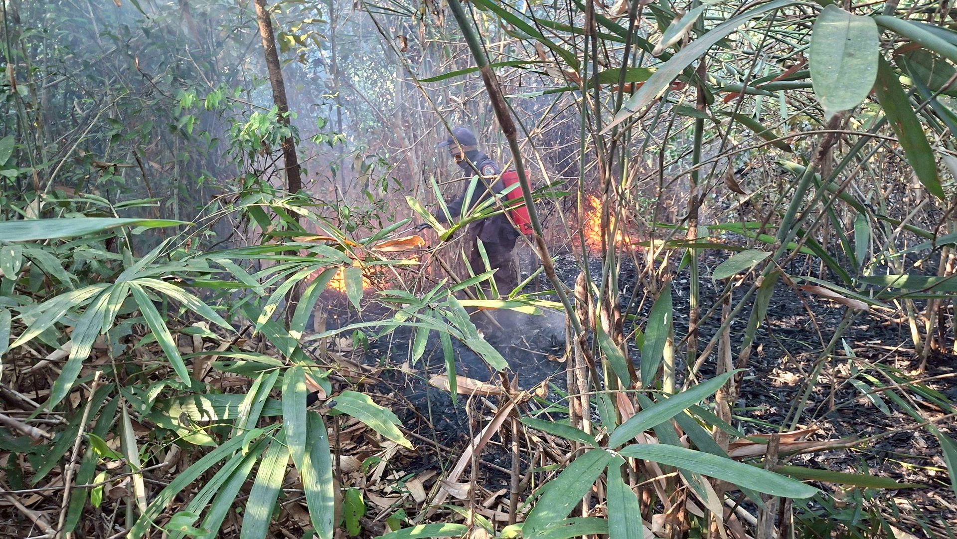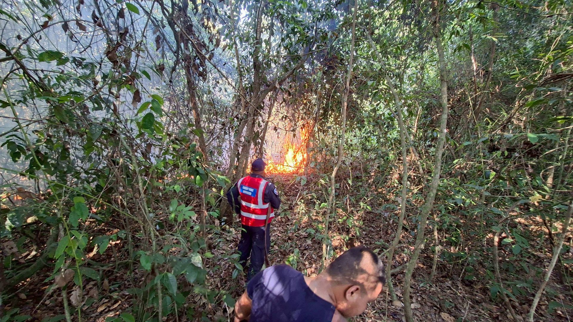ศูนย์บรรเทาสาธารณภัยกองบิน ๗ ระดมกำลังเจ้าหน้าที่พร้อมยุทโธปกรณ์ เข้าควบคุมสถานการณ์เพลิงไหม้ที่เกิดขึ้นซ้ำในพื้นที่บ้านห้วยต้นตอ ตำบลมะลวน อำเภอพุนพิน จังหวัดสุราษฎร์ธานี ภายหลังพบการปะทุในจุดเดิม ท่ามกลางสภาพอากาศร้อนจัดที่เอื้อต่อการลุกลามของเพลิง