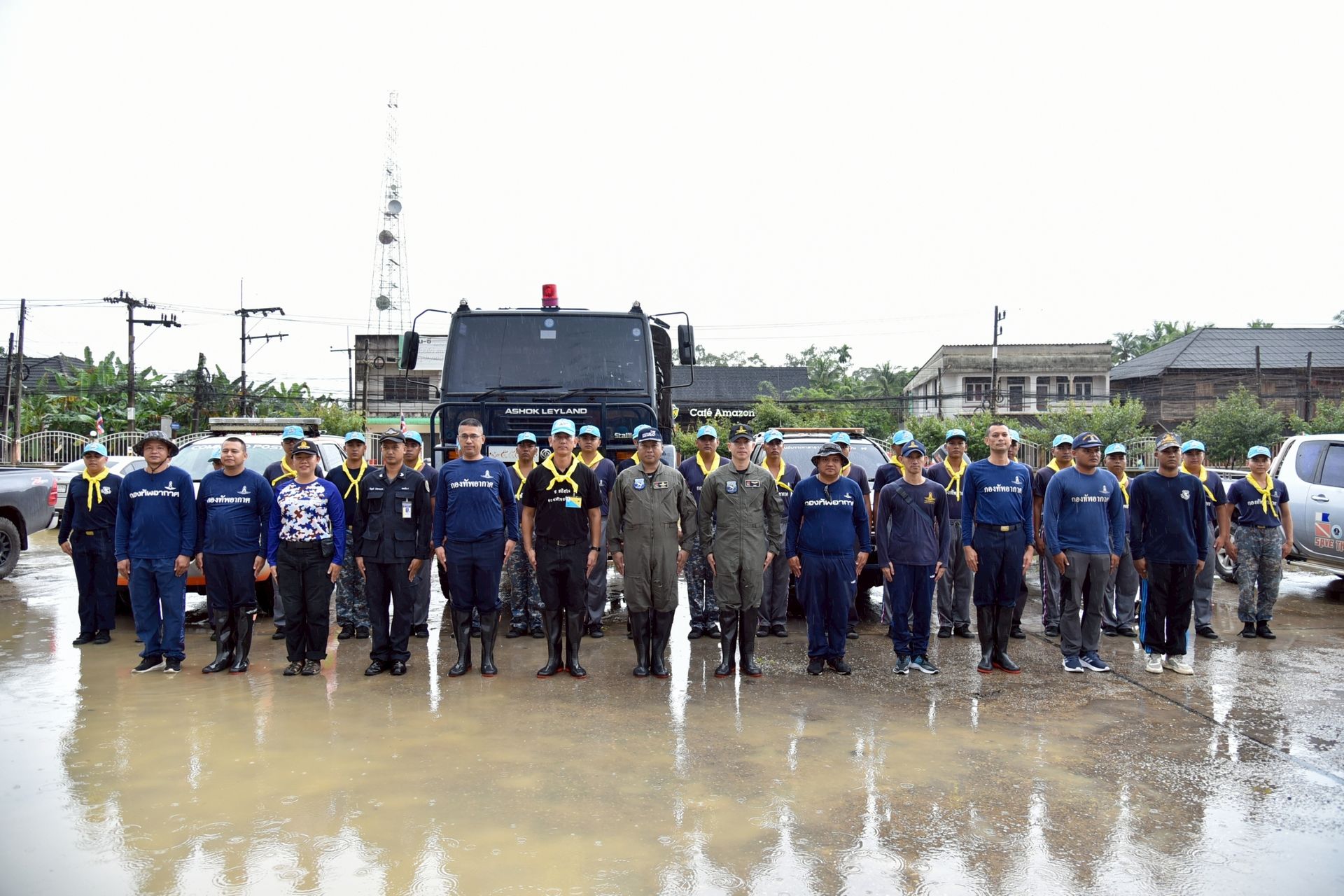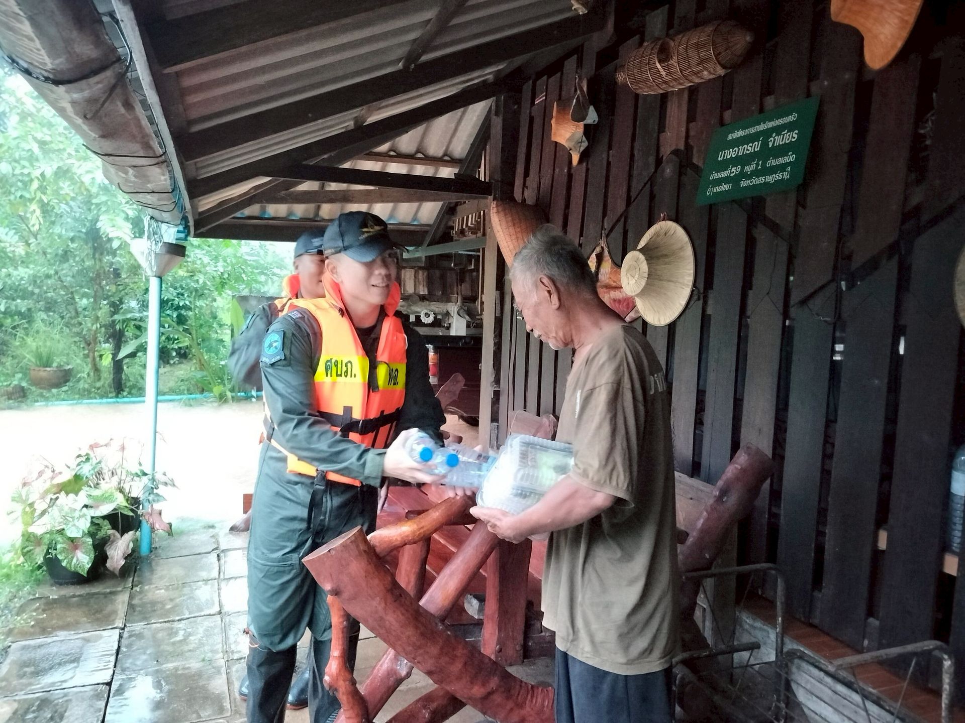นาวาอากาศเอก ศุภวัจน์ จิตรมนตรี ผู้บังคับการกองบิน ๗ ในฐานะผู้อำนวยการศูนย์บรรเทาสาธารณภัย กองบิน ๗ มอบหมายให้ นาวาอากาศเอก ชัยพร จรรยา เสนาธิการกองบิน ๗ /รองผู้อำนวยการศูนย์บรรเทาสาธารณภัย กองบิน ๗ พร้อมด้วยเจ้าหน้าที่ศูนย์บรรเทาสาธารณภัยกองบิน ๗ จิตอาสา 904 กำลังพลจิตอาสาพระราชทานในสังกัด กองบิน ๗ ทหารกองประจำการ กองบิน ๗ รถยนต์บรรทุกขนาดใหญ่ เรือท้องแบนพร้อมเครื่องยนต์ รถสั่งการและควบคุม และรถยนต์ศูนย์บรรเทาสาธารณภัยกองบิน ๗ ออกให้ความช่วยเหลือพี่น้องประชาชนที่ประสบอุทกภัย โดยบูรณาการร่วมกับ อำเภอไชยา ผู้นำชุมชน และผู้นำท้องถิ่น โดยทำการแจกจ่ายอาหารปรุงสำเร็จ จำนวน ๒๕๐ กล่อง และน้ำดื่มสะอาดจำนวน ๑๕๐ แพ็ค ในพื้นที่หมู่ที่ ๑ ตำบลเลม็ด และ ขนย้ายสิ่งของมีค่าขึ้นที่สูงเพื่อความปลอดภัย ในพื้นที่ หมู่ที่ ๖ ตำบลเลม็ด อำเภอไชยา จังหวัดสุราษฎร์ธานี เพื่อเป็นการบรรเทาความเดือดร้อนเบื้องต้น